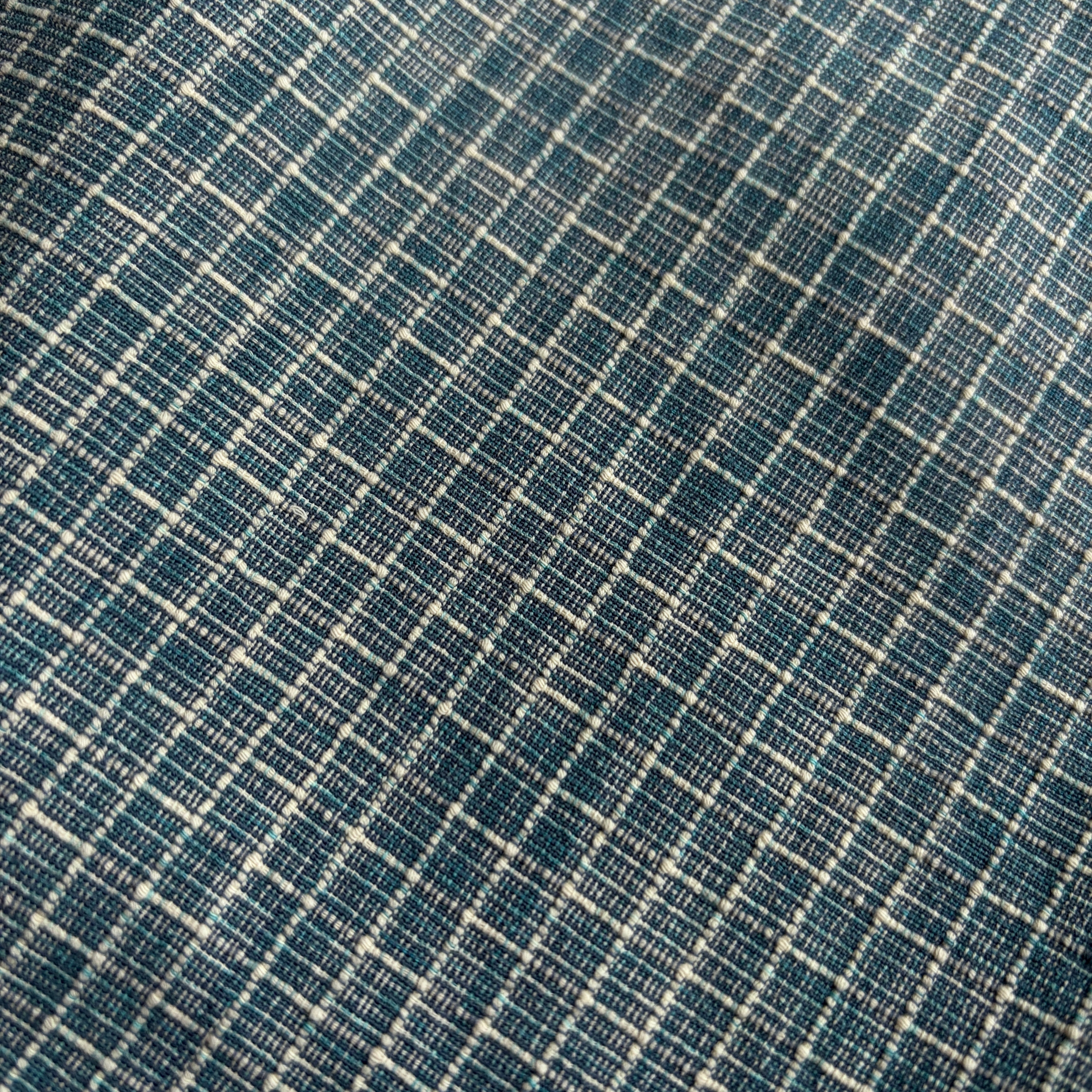 レンガのような幾何学模様、リネンのような糸の太さが異なる質感で立体感のある生地。