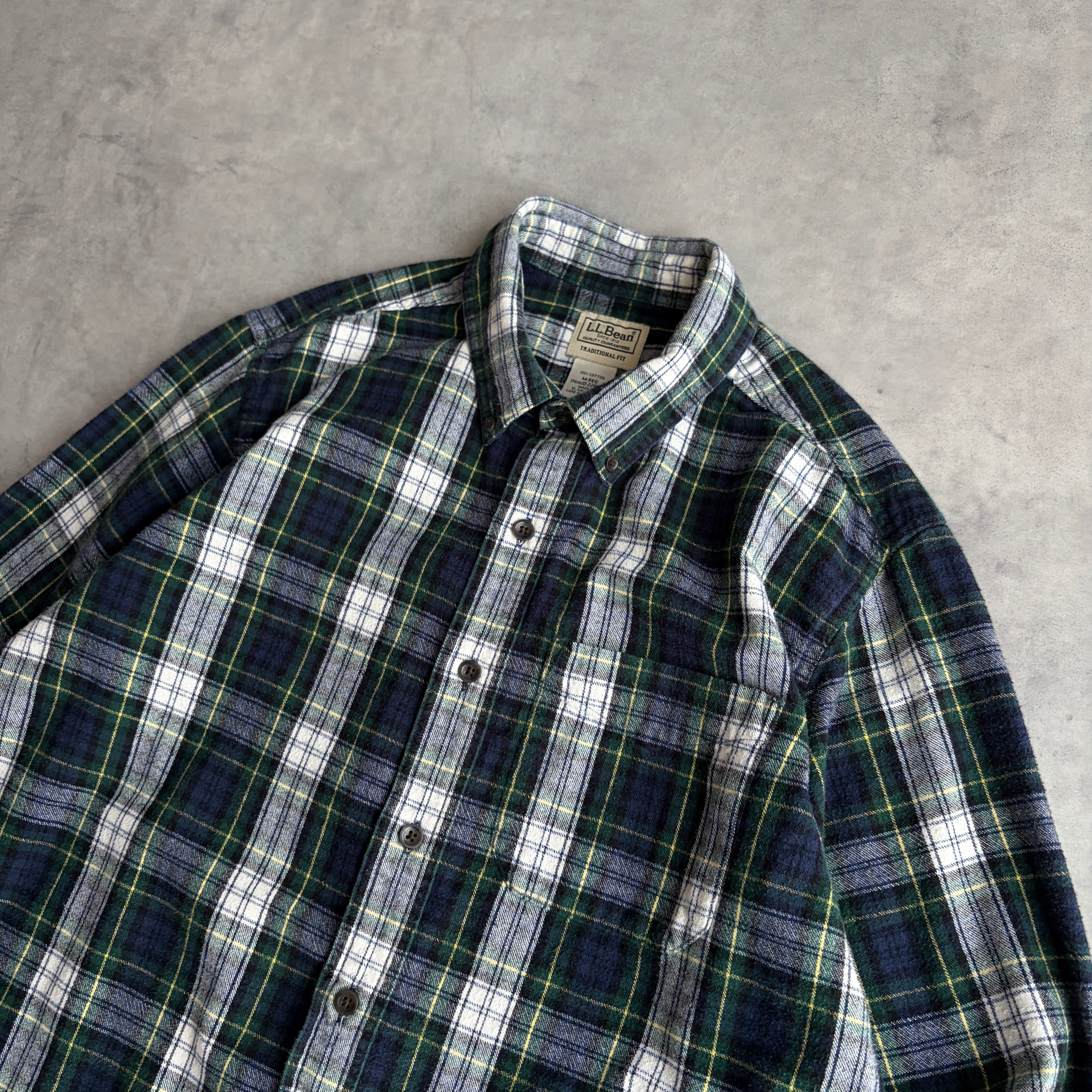 L.L.Bean/エルエルビーン/長袖シャツ/BD/ボタンダウン/フランネル生地/タータンチェック/格子柄/ネイビー×グリーン/jmaple