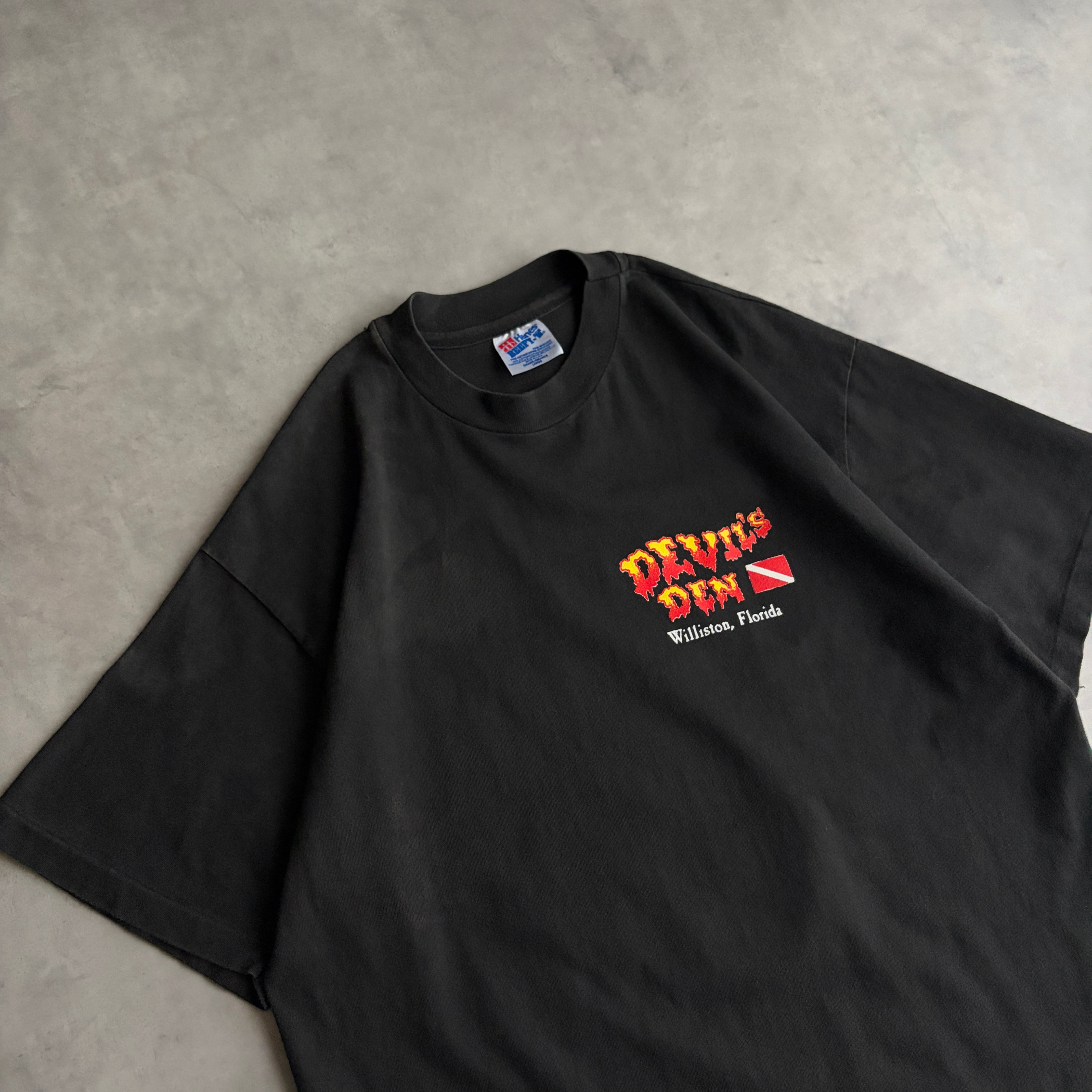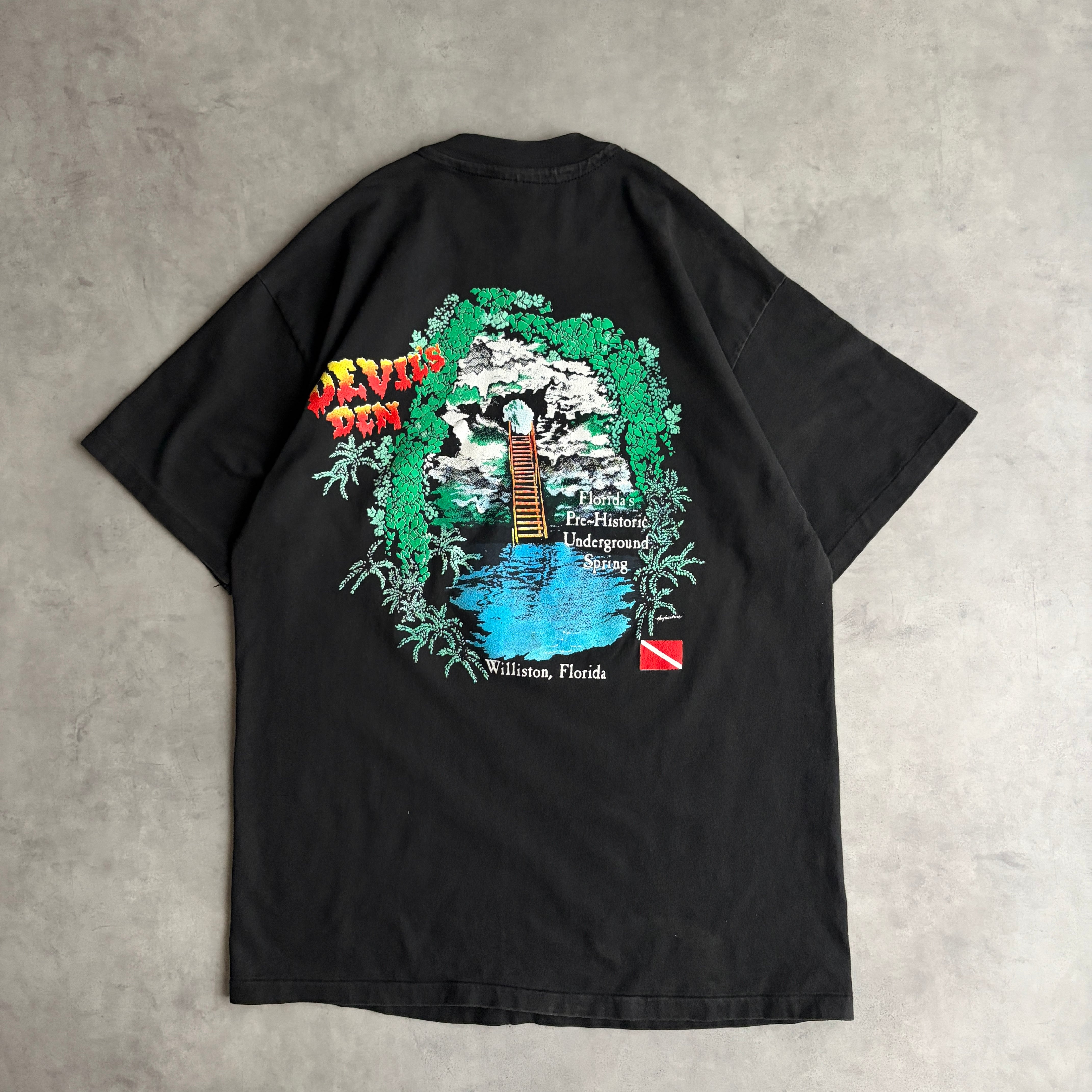 90s/Hanes/ヘインズ/BEEFY-T/半袖Tシャツ/USA製/アメリカ製/シングルステッチ/スーベニアプリント/風景/観光名所/スキューバーダイビング/シュノーケル/自然/天然洞窟/アウトドア/ブラック/黒/jmaple
