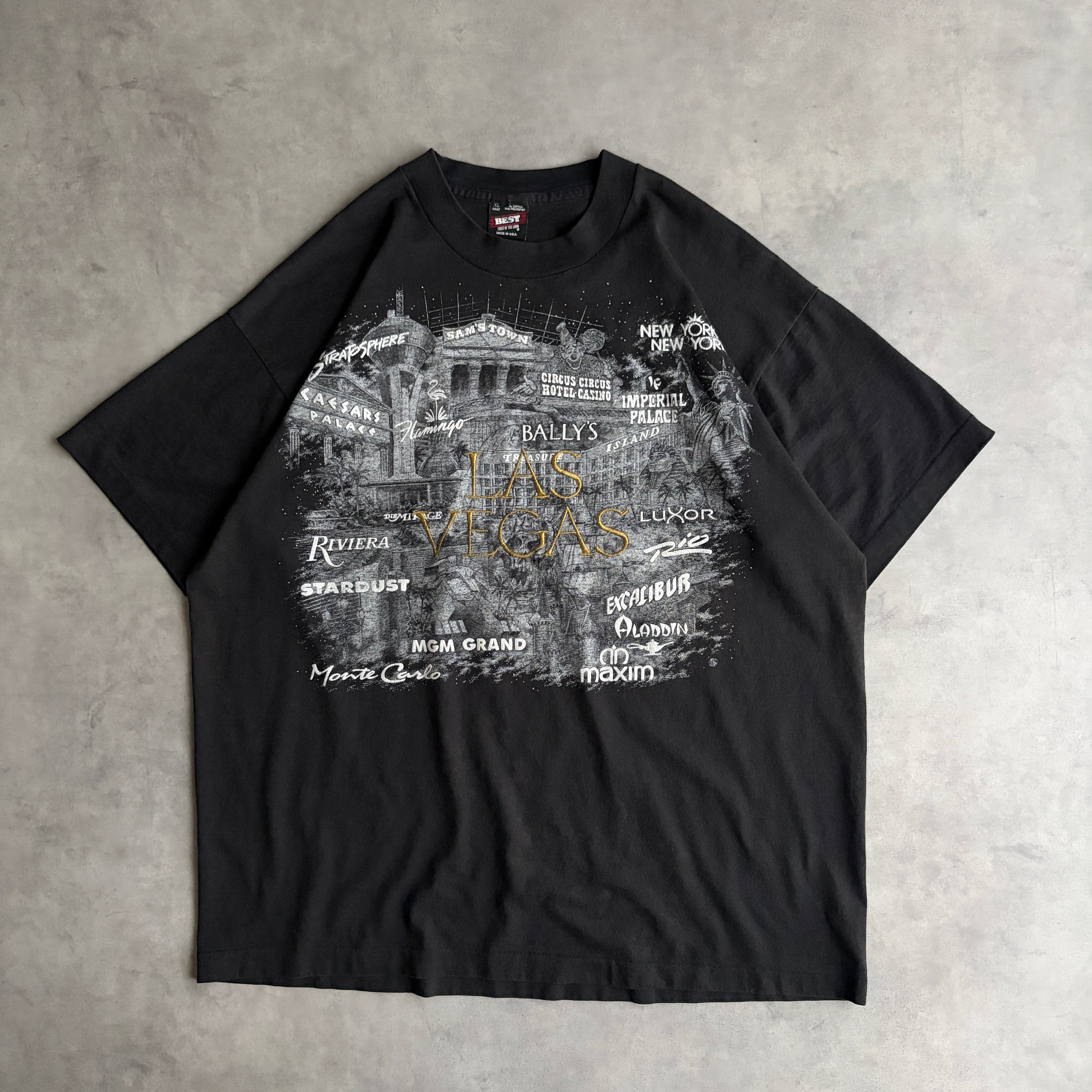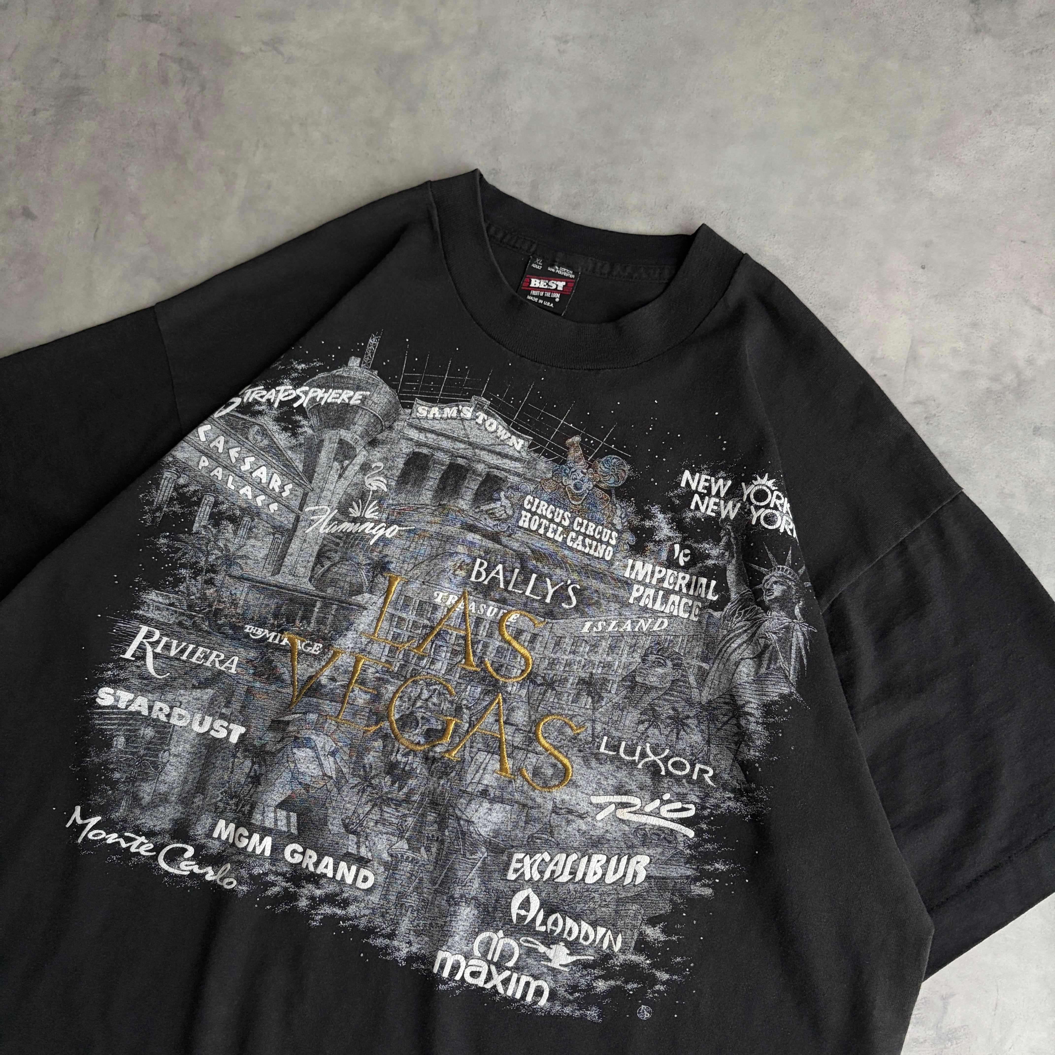 90s/FRUIT OF THE LOOM/フルーツオブザルーム/SCREEN STARS BEST/スクリーンスターズベスト/半袖Tシャツ/USA製/アメリカ製/ラスベガス/ホテル/名所/スーベニアプリント/ブラック/黒/jmaple