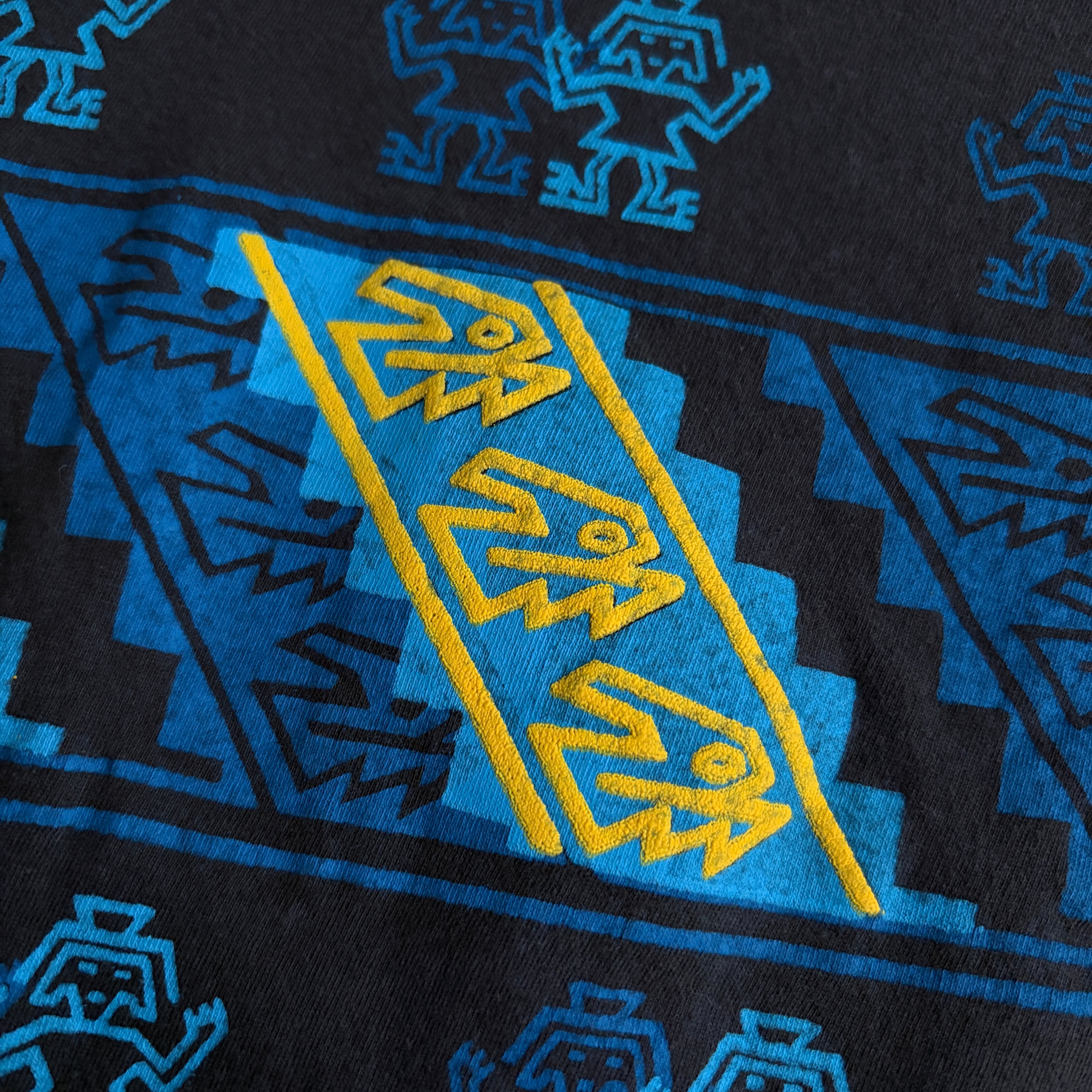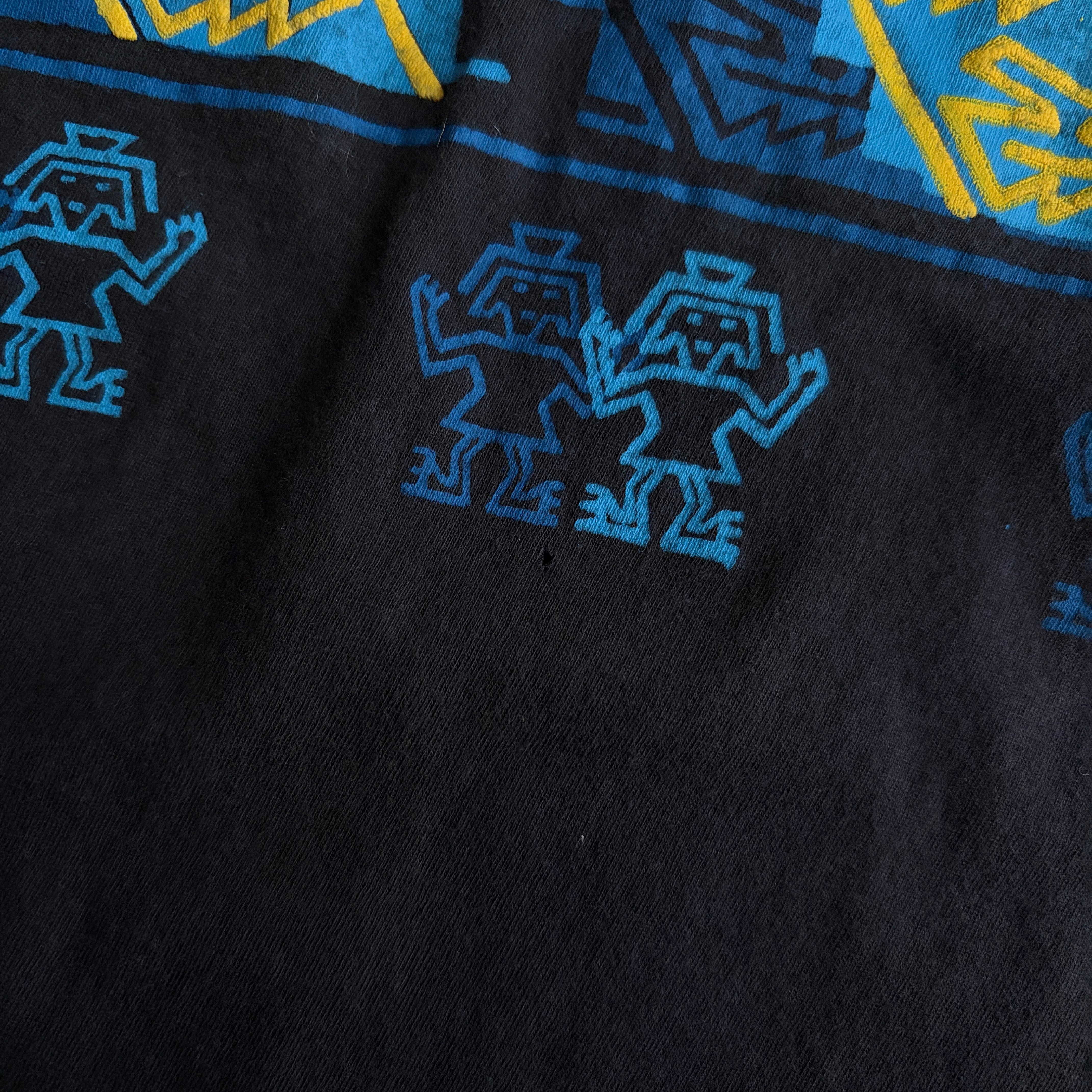 ペルーの古代文明をモチーフとした幾何学模様や人形、模様がプリントされています。