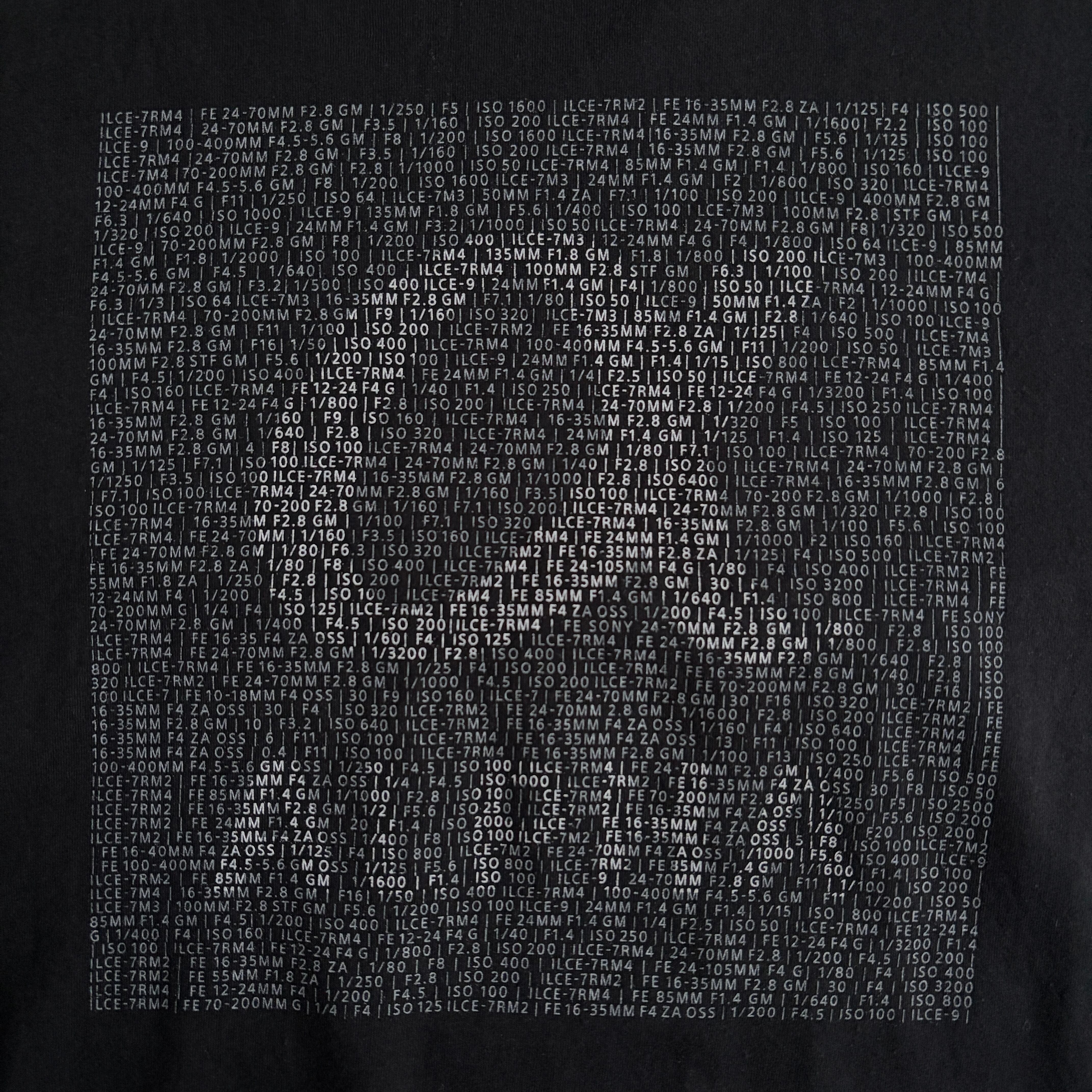 遠目からだとブランド名の「a ALPHA」ですが、よーく見るとモデル名やF値、ISOなどのカメラの設定データで構成されているデザイン。