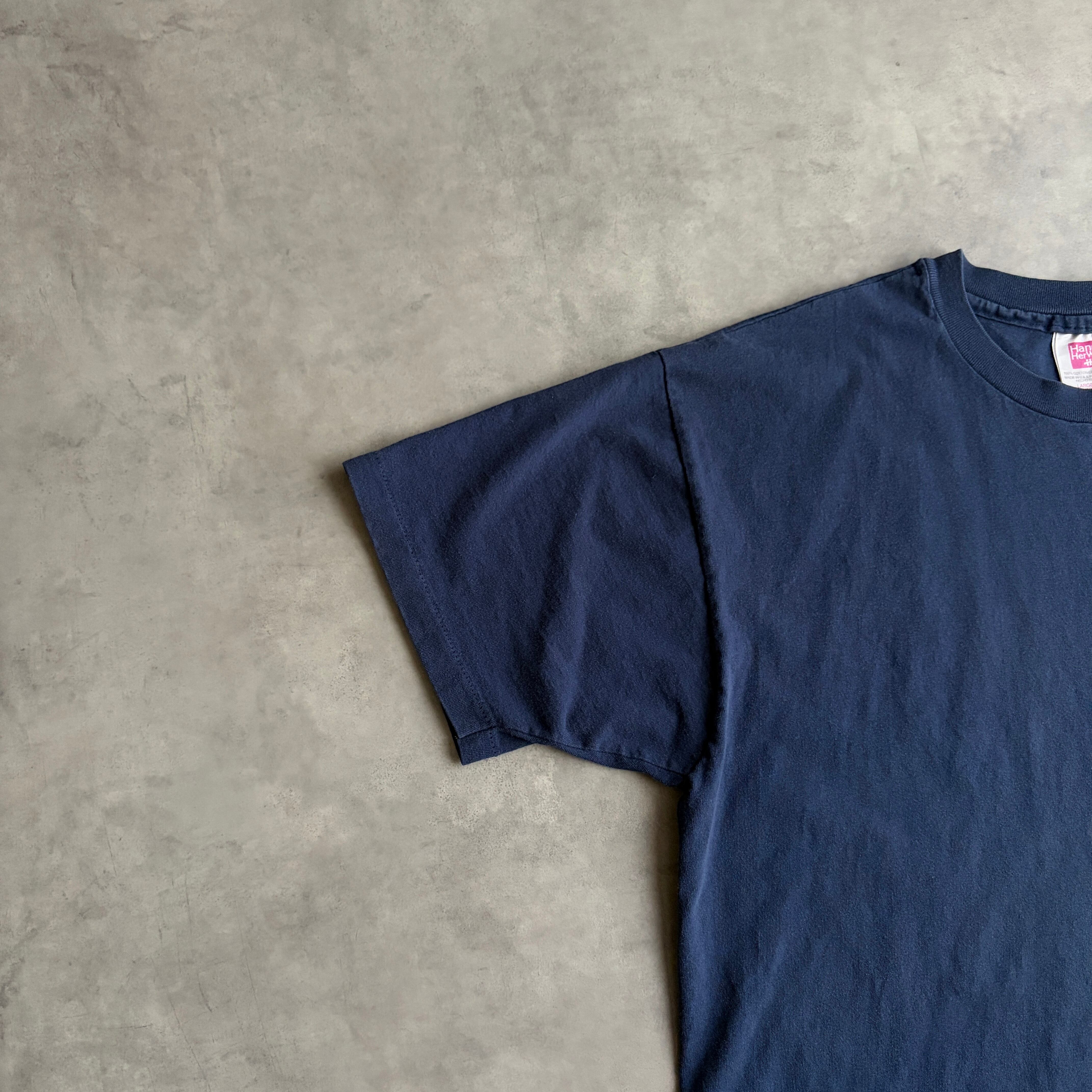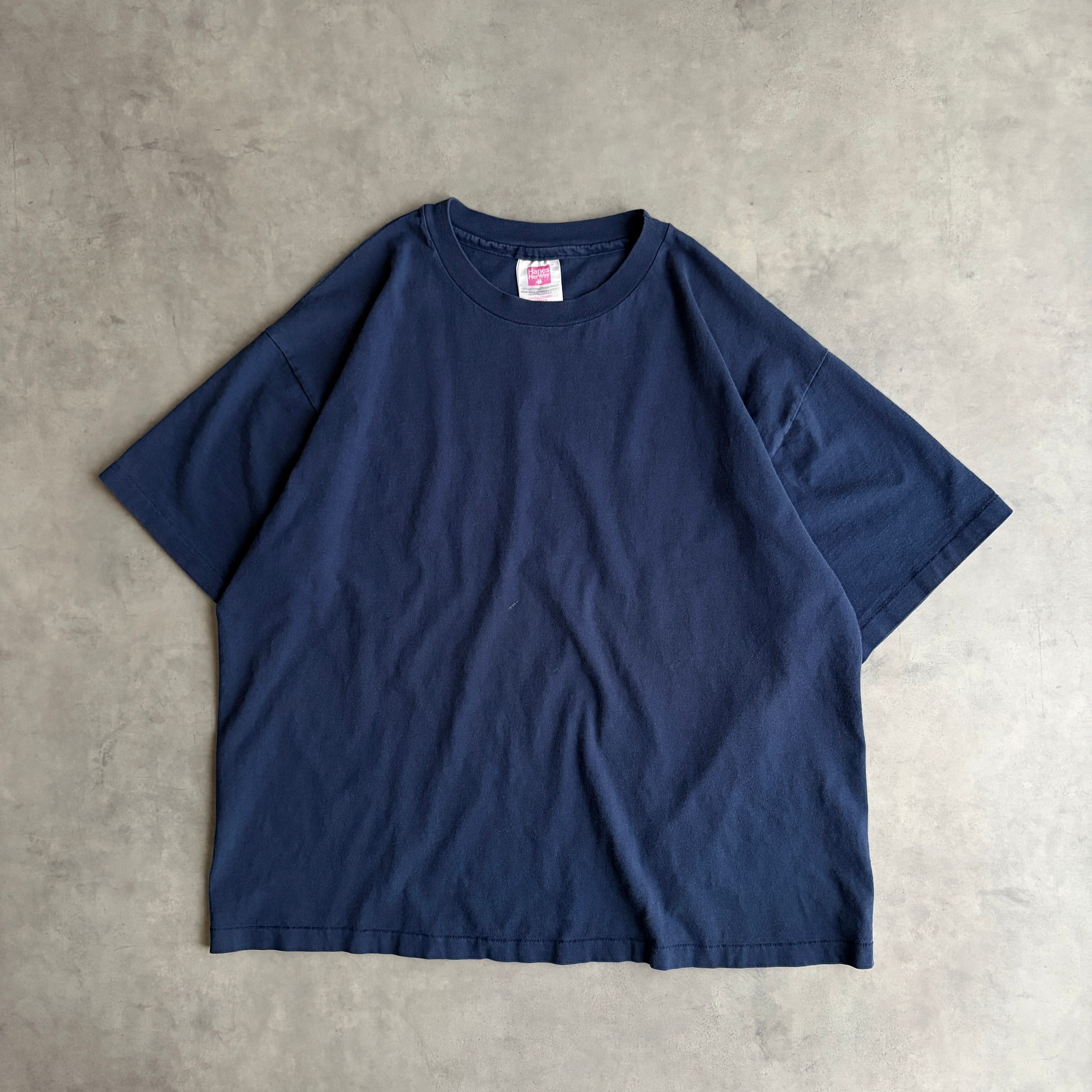 90s/Hanes/ヘインズ/HerWay/無地Tシャツ/USA製/アメリカ製/シングルステッチ/ノームコア/ソリッド/プレーン/ブランク/ネイビー/紺/jmaple