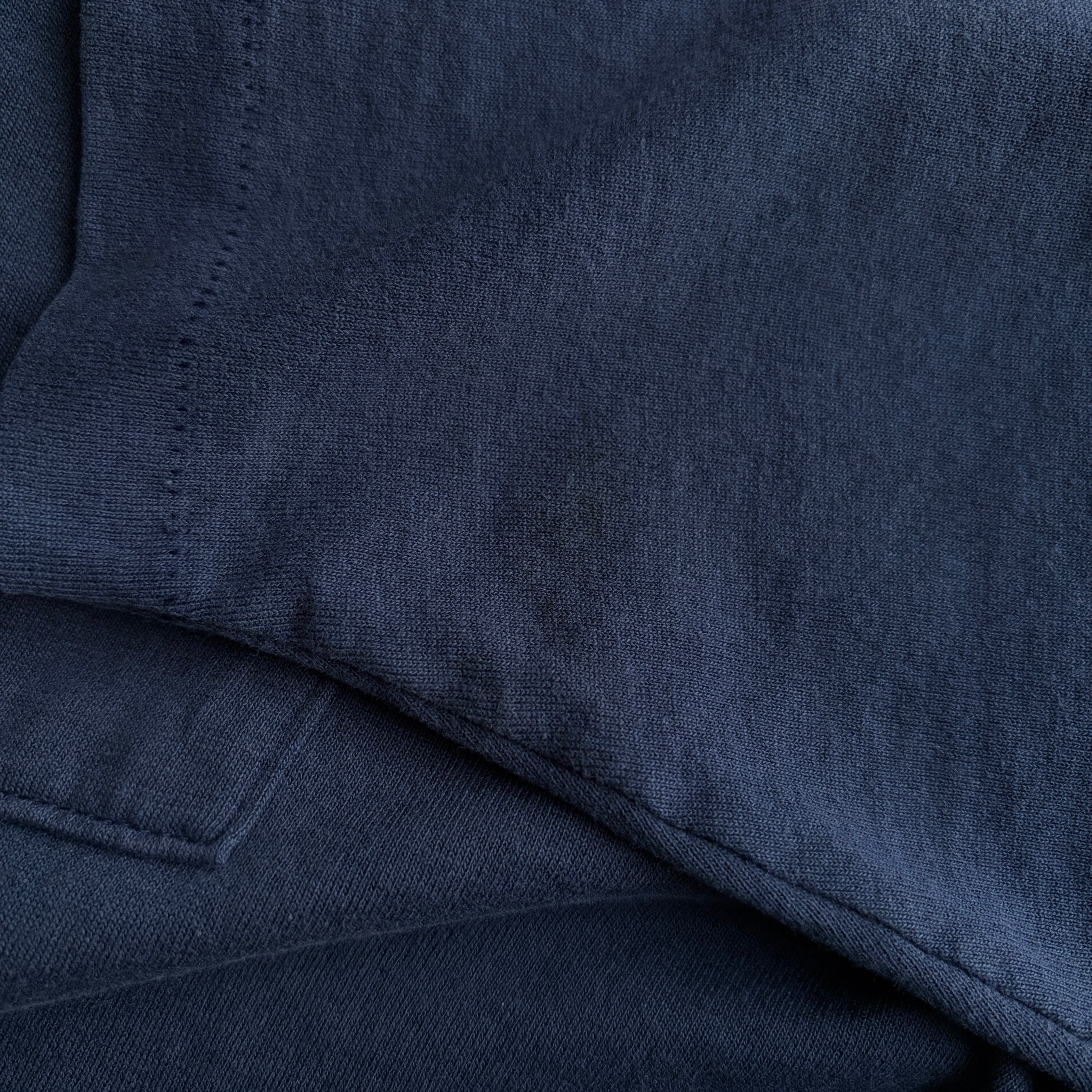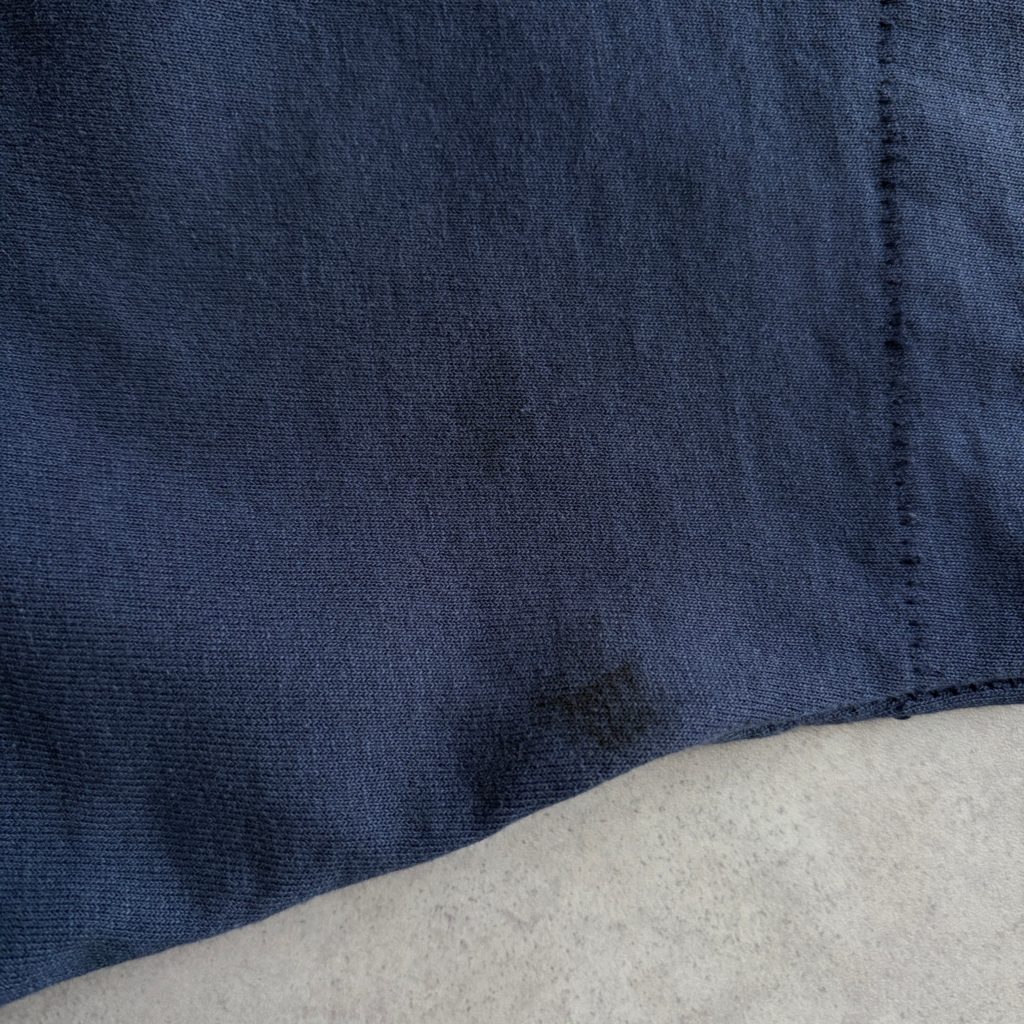左袖に薄いシミ、裾付近に色抜け、全体的にフェードしています。