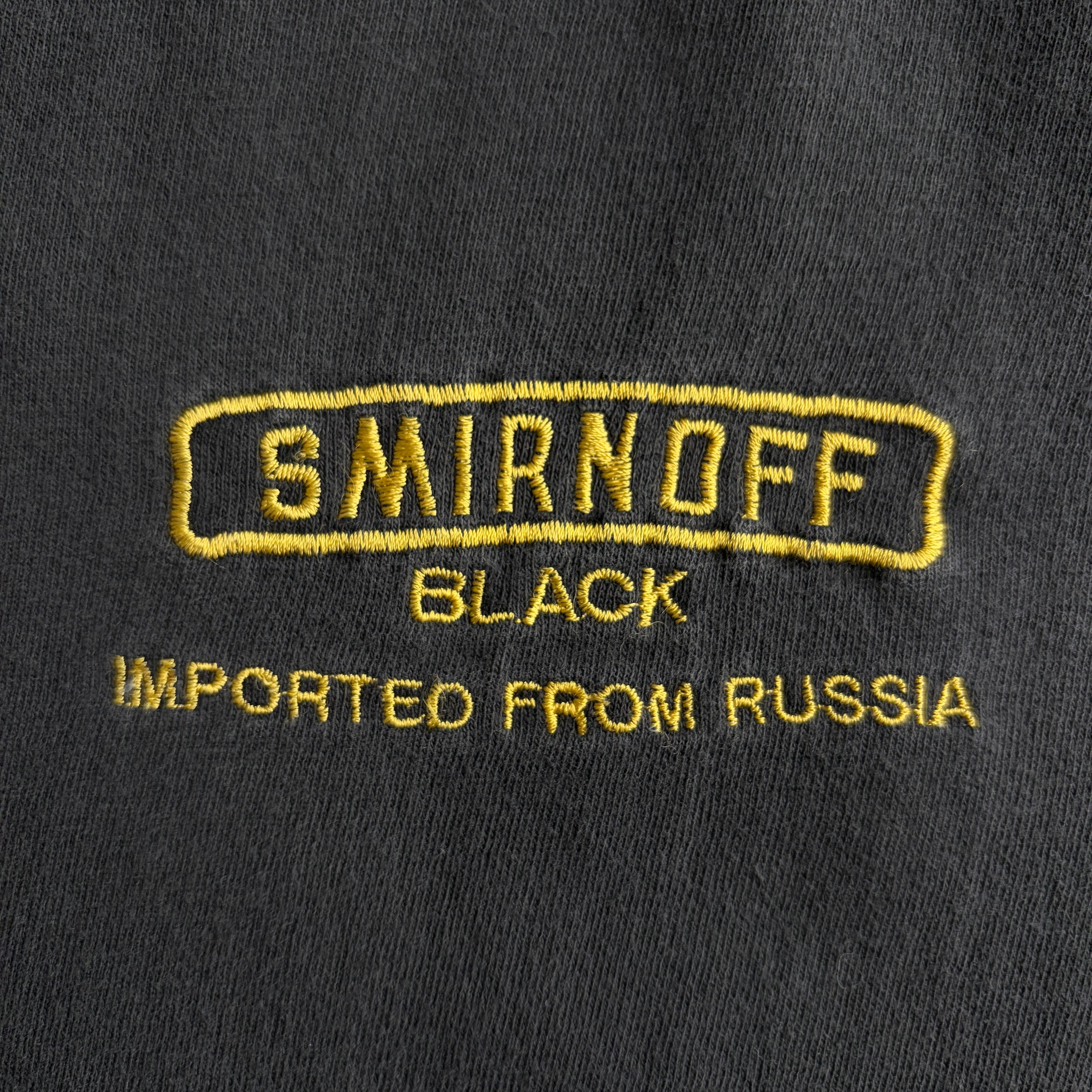 フロントには世界的ウォッカブランド"スミノフ"の刺繍、背面にはローカルバーのロゴがプリントされています。
