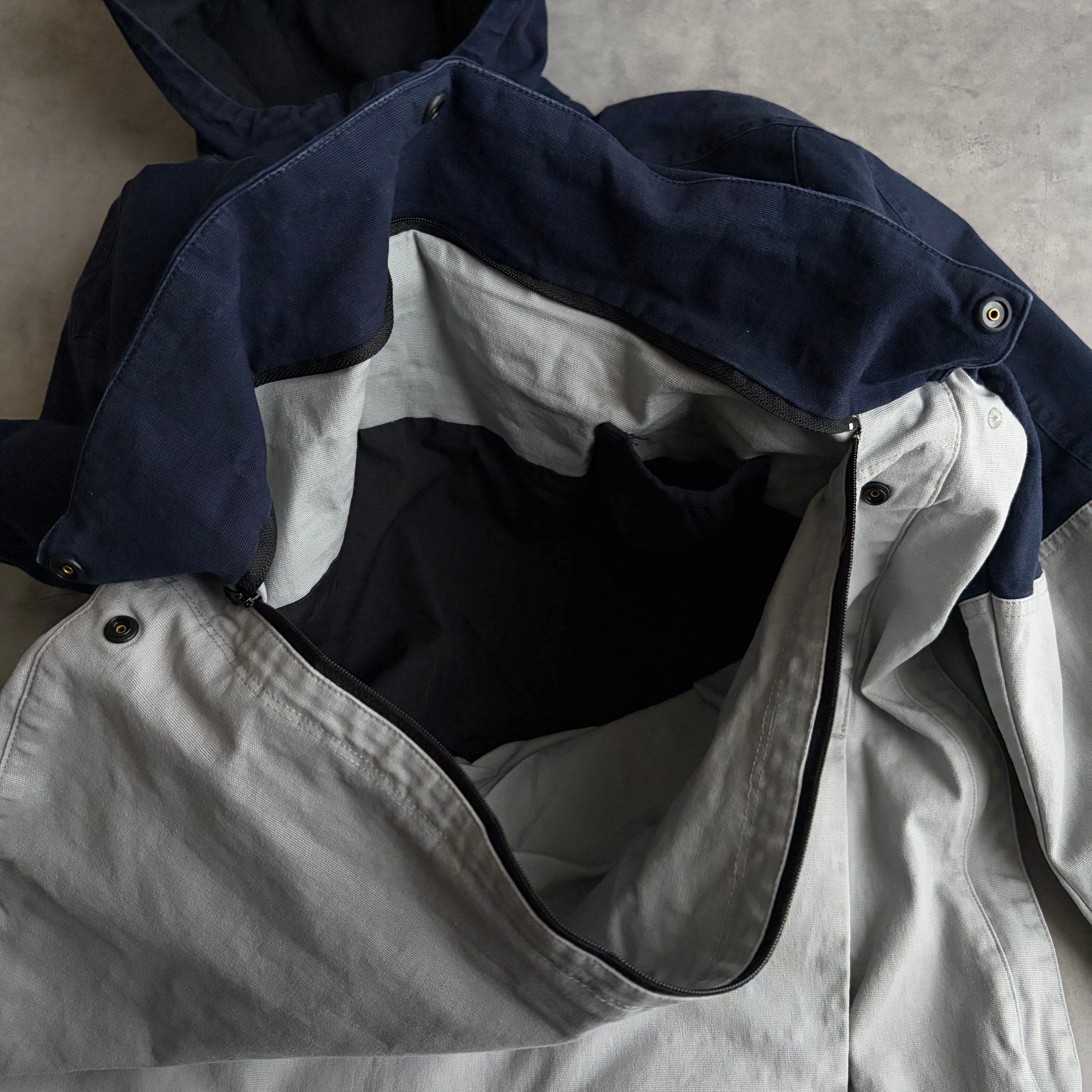 コットンキャンバス生地にネイビーとライトグレーのツートーンカラー。
