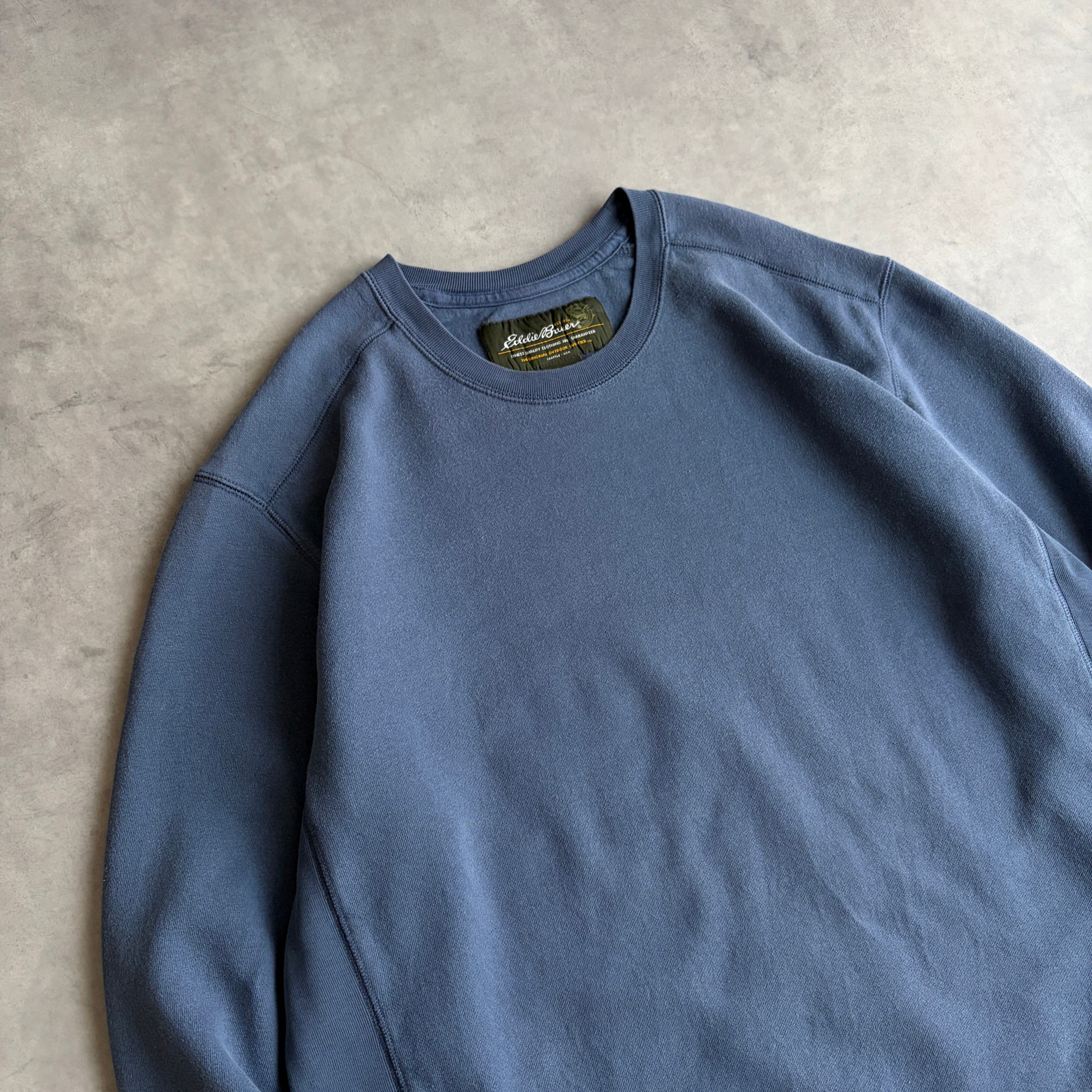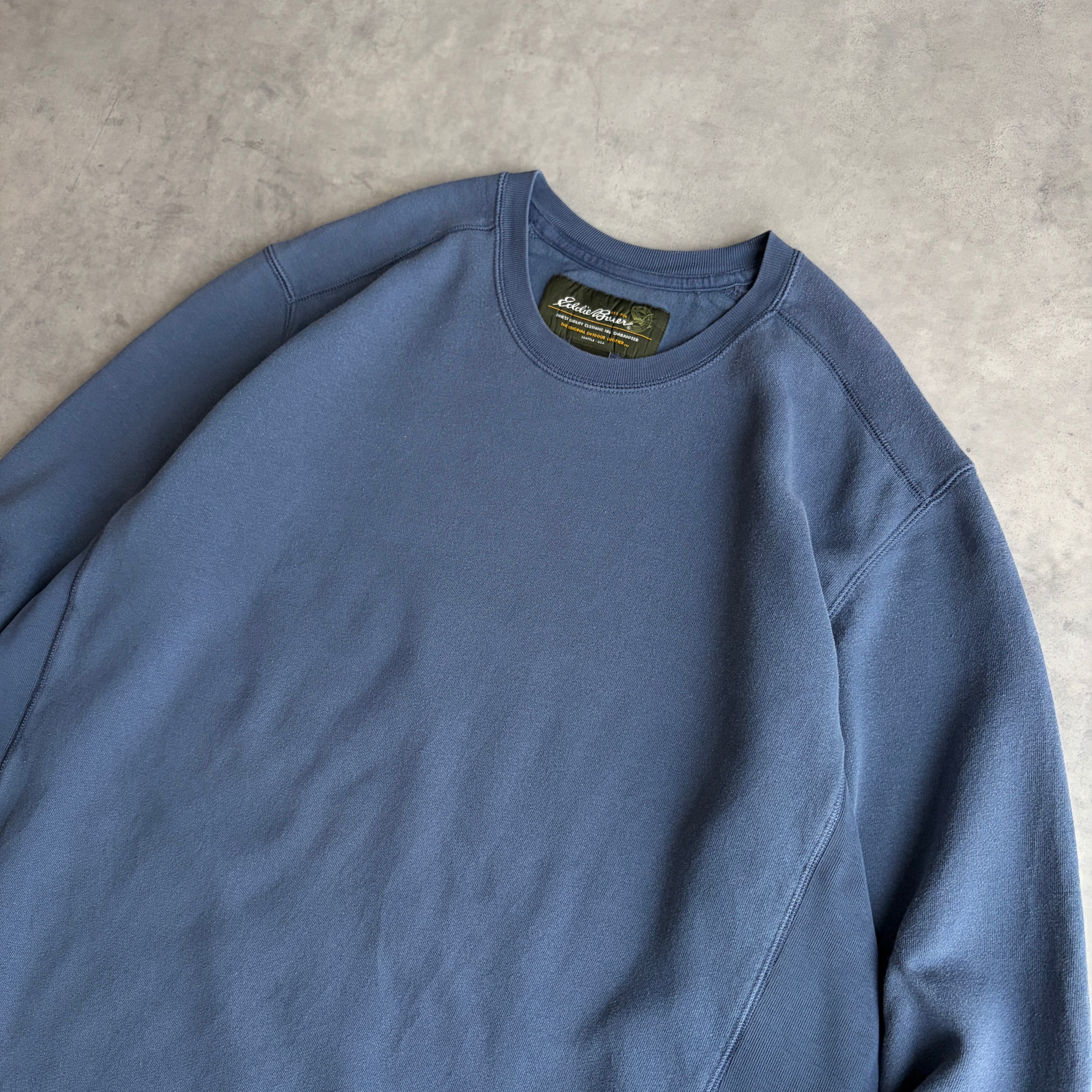 10s/Eddie Bauer/エディーバウアー/無地スウェット/サイドリブ/プレーン/ブランク/ソリッド/ノームコア/くすみブルー/jmaple