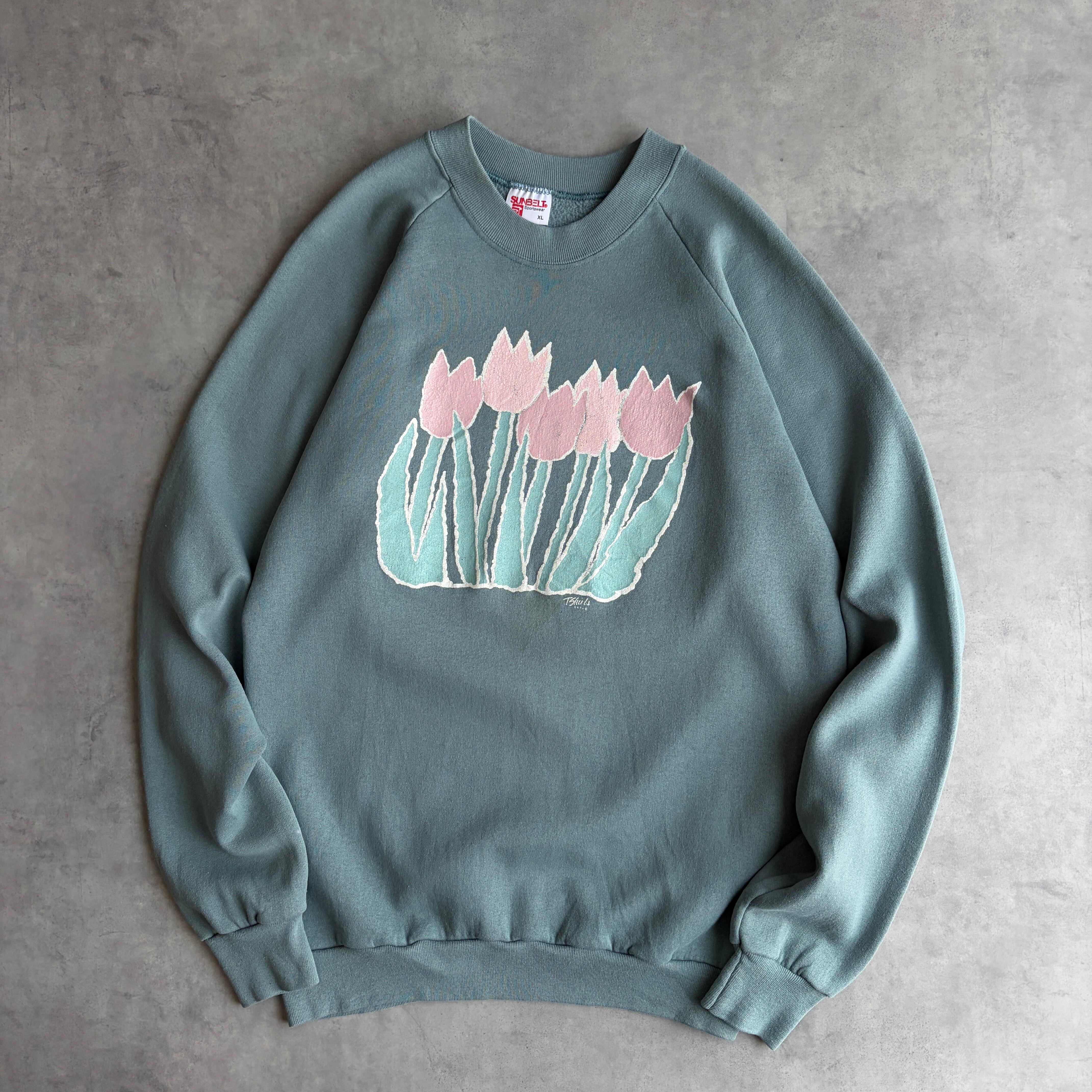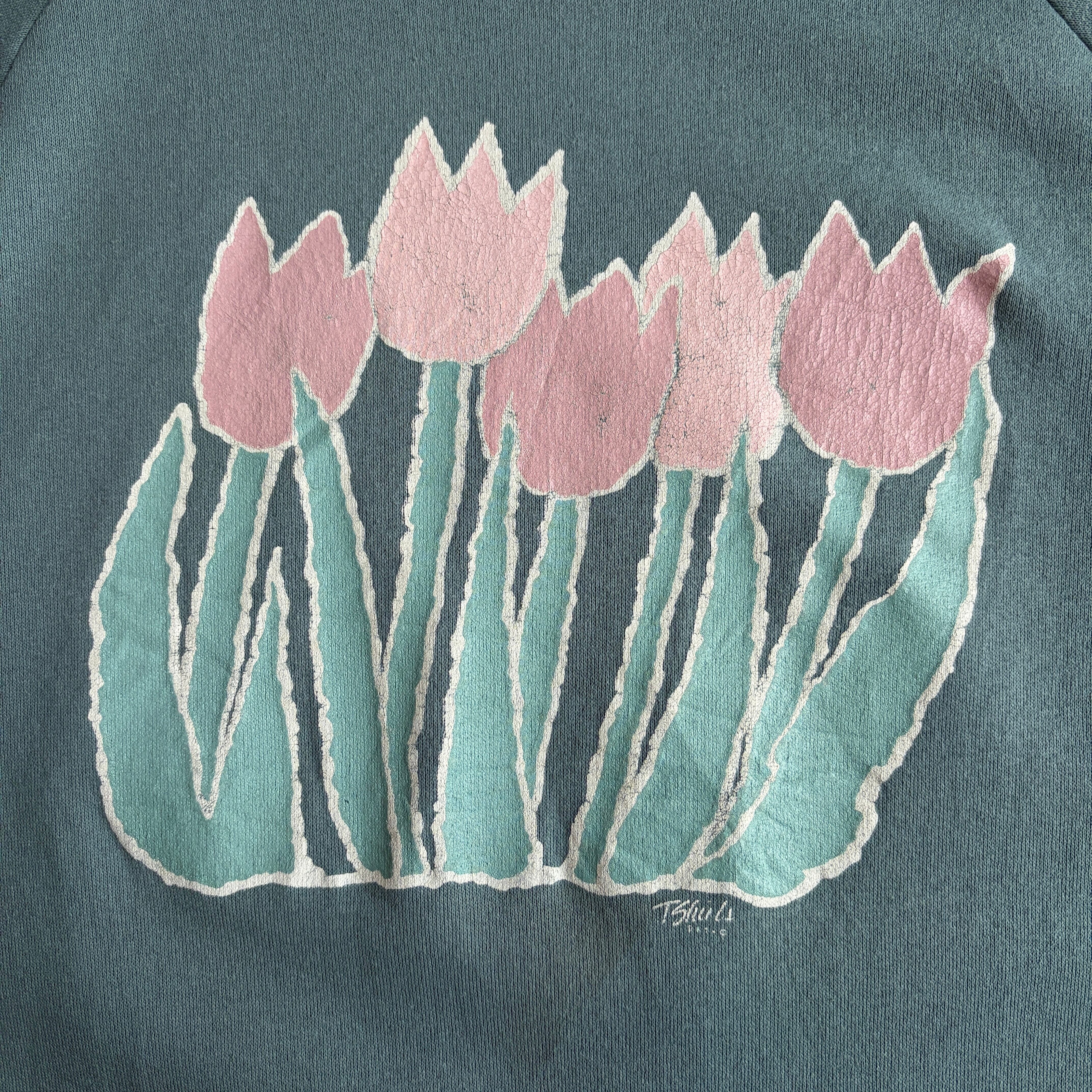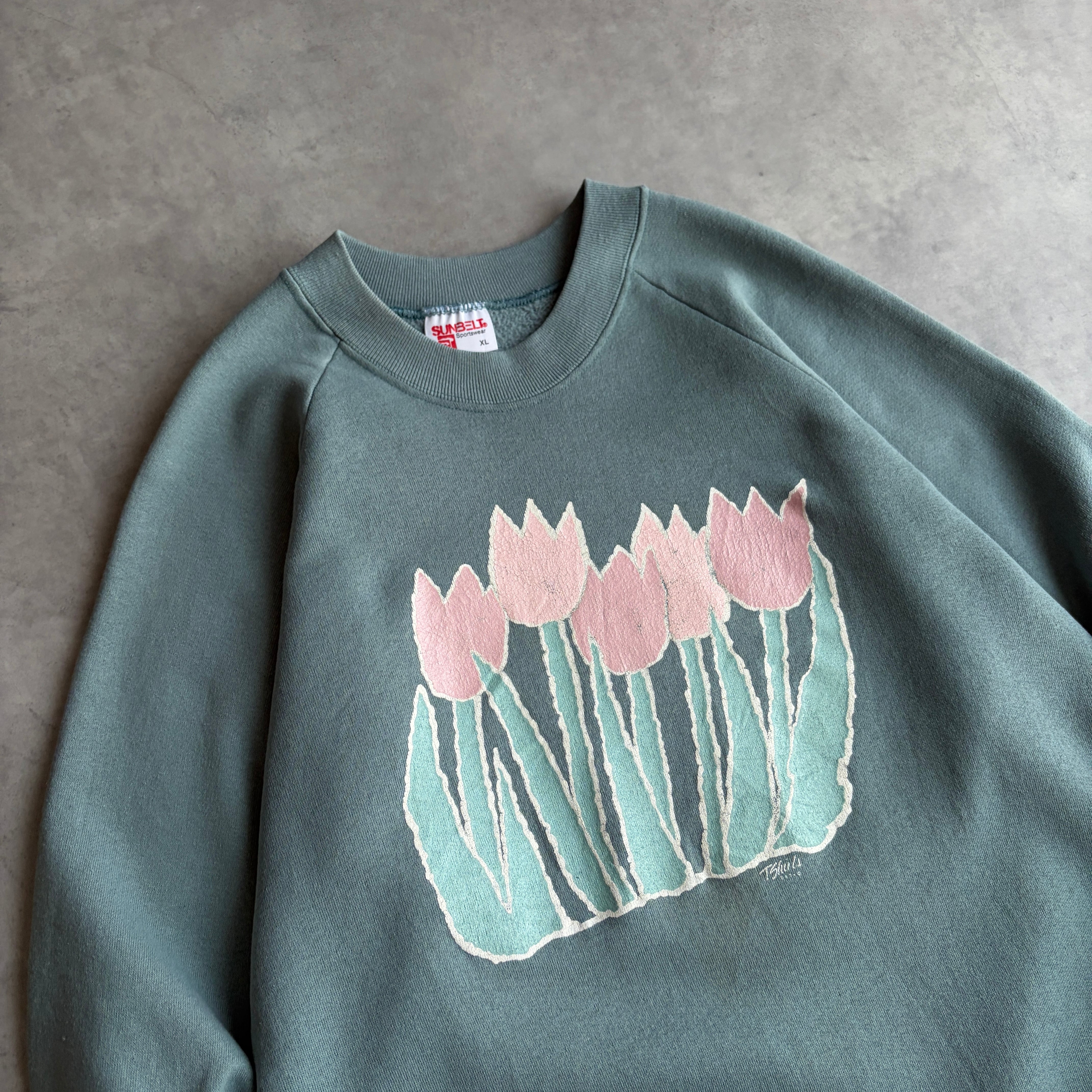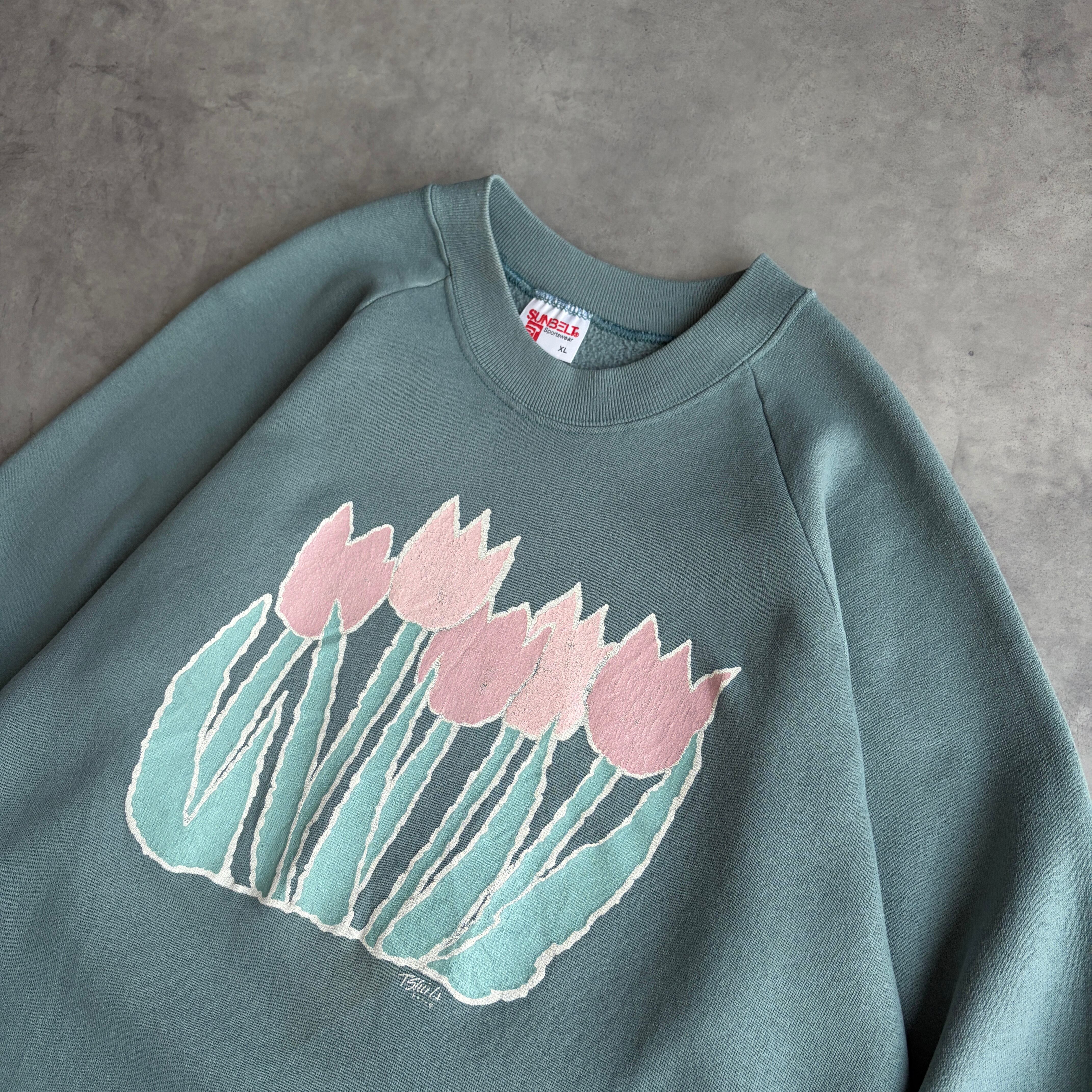 90s / SUNBELT / Flower Art Print Sweat / Made in USA