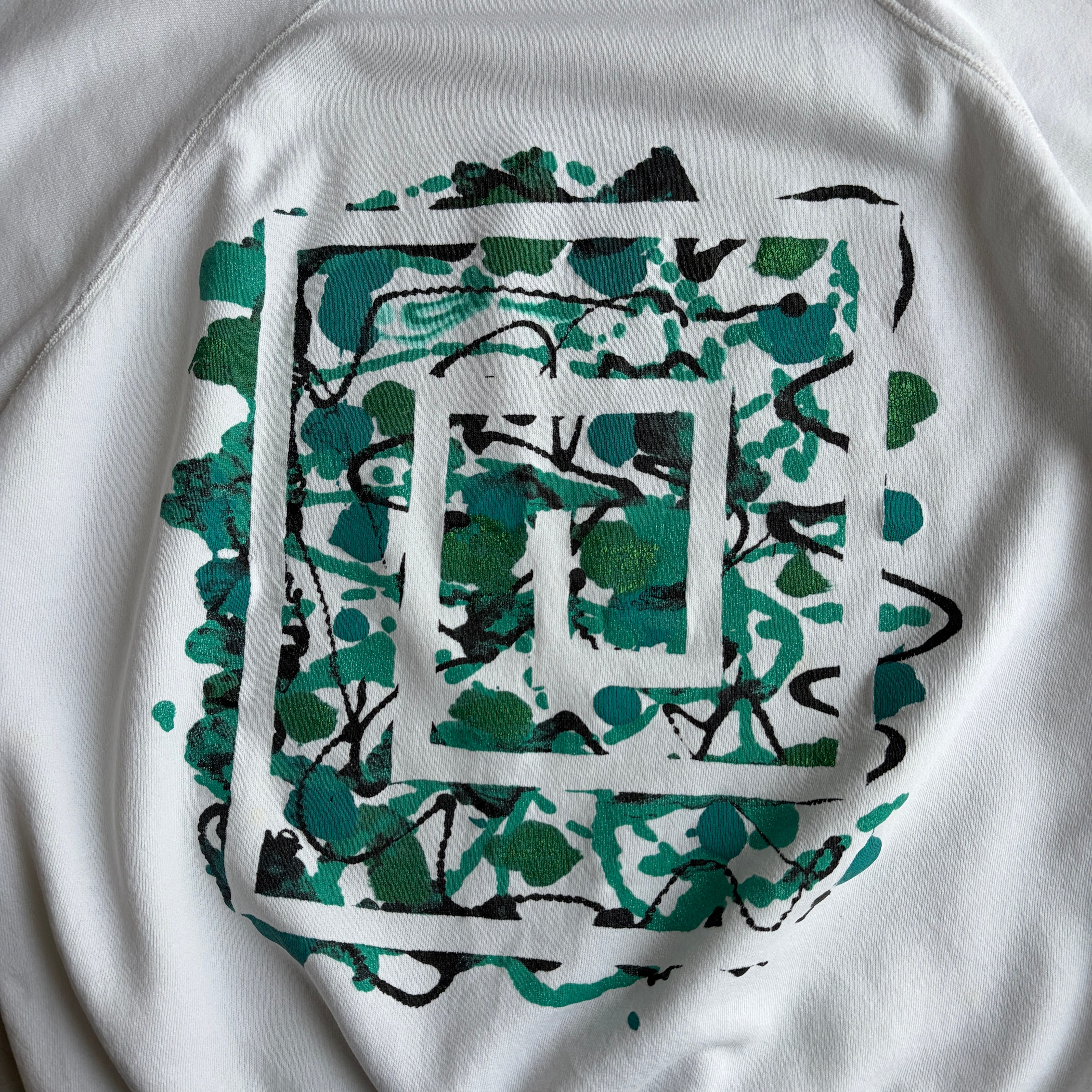 90s/Hanes/ヘインズ/スウェット/USA製/アメリカ製/ラグランスリーブ/ペイントアート/水彩画風/水飛沫/幾何学模様/フレーム/渦巻き/jmaple