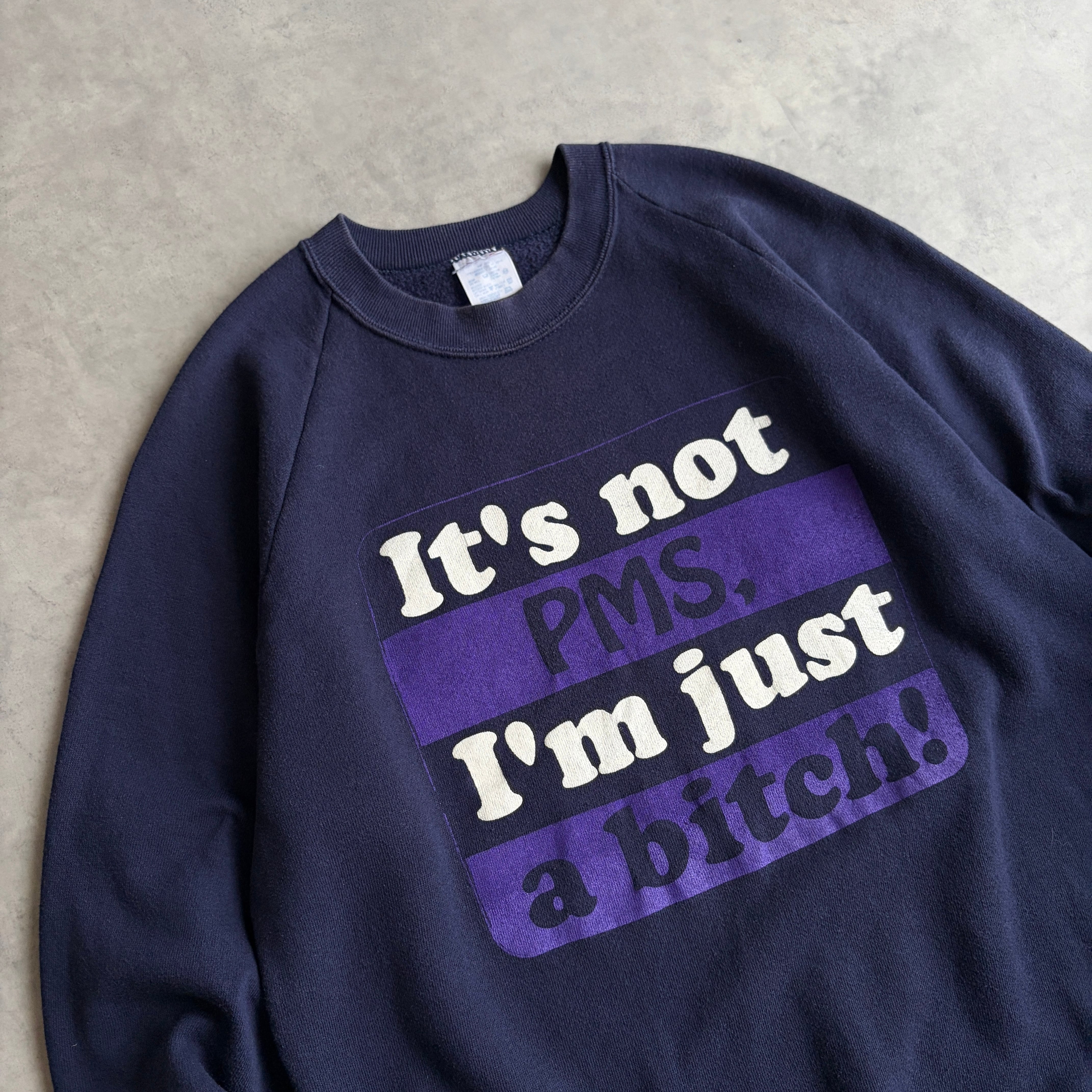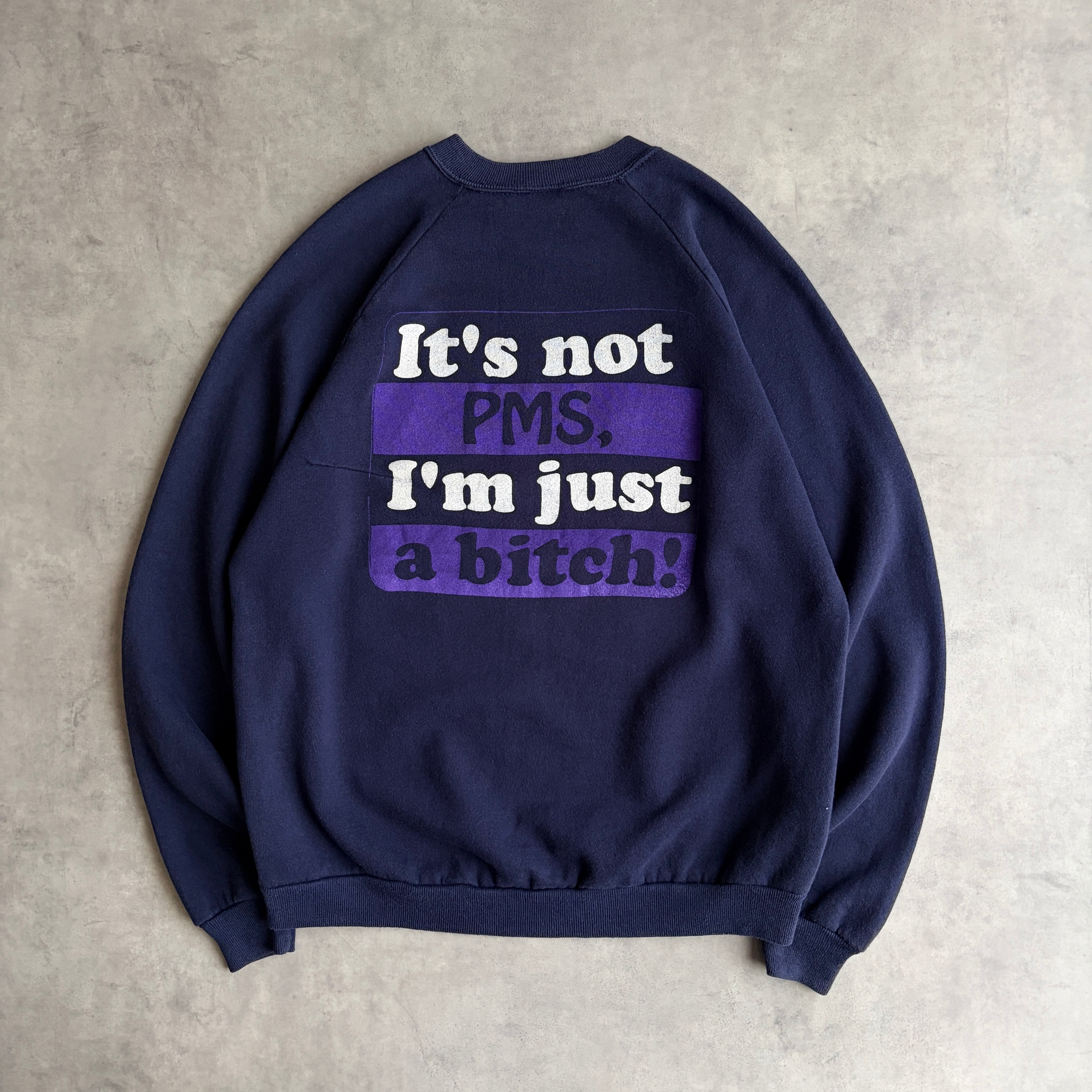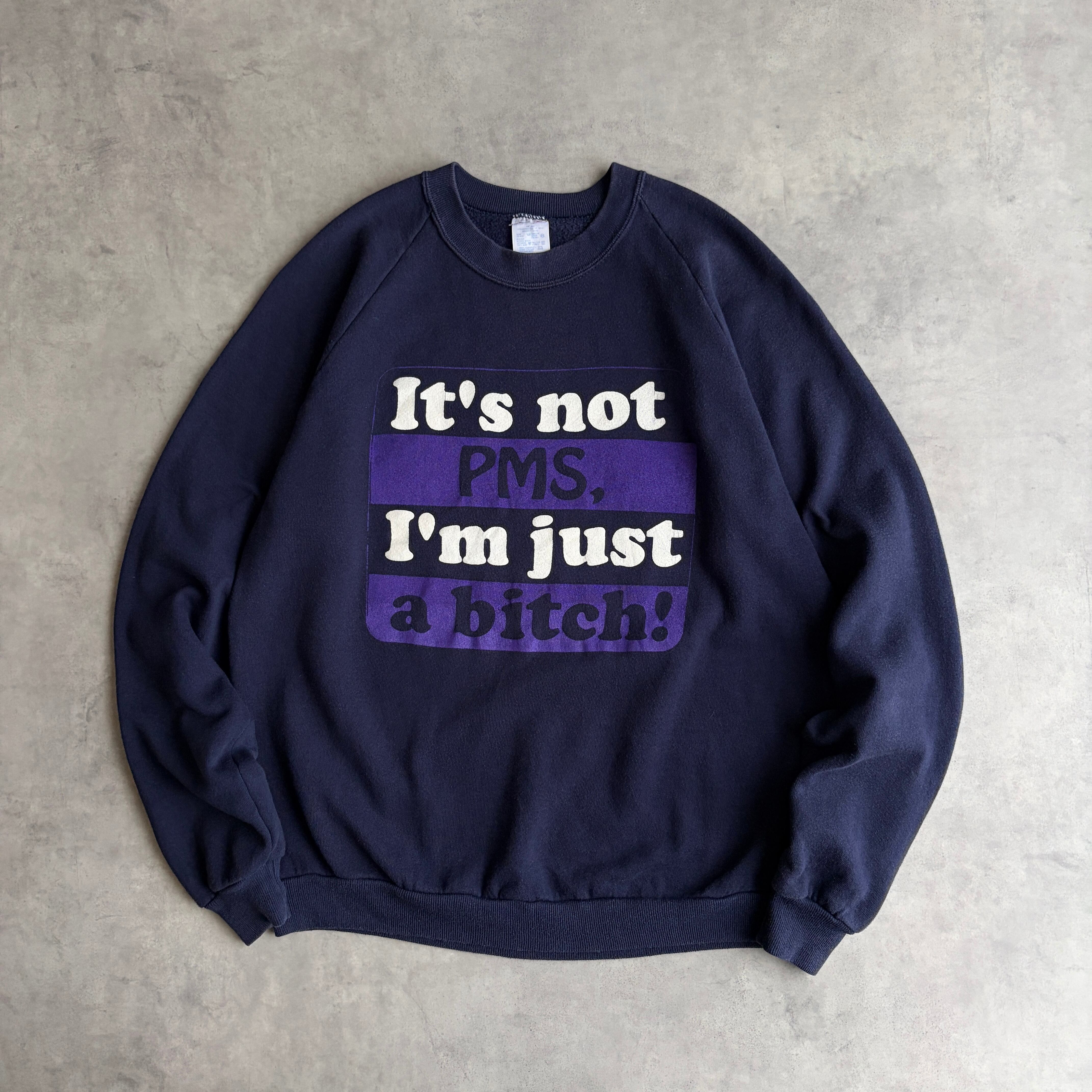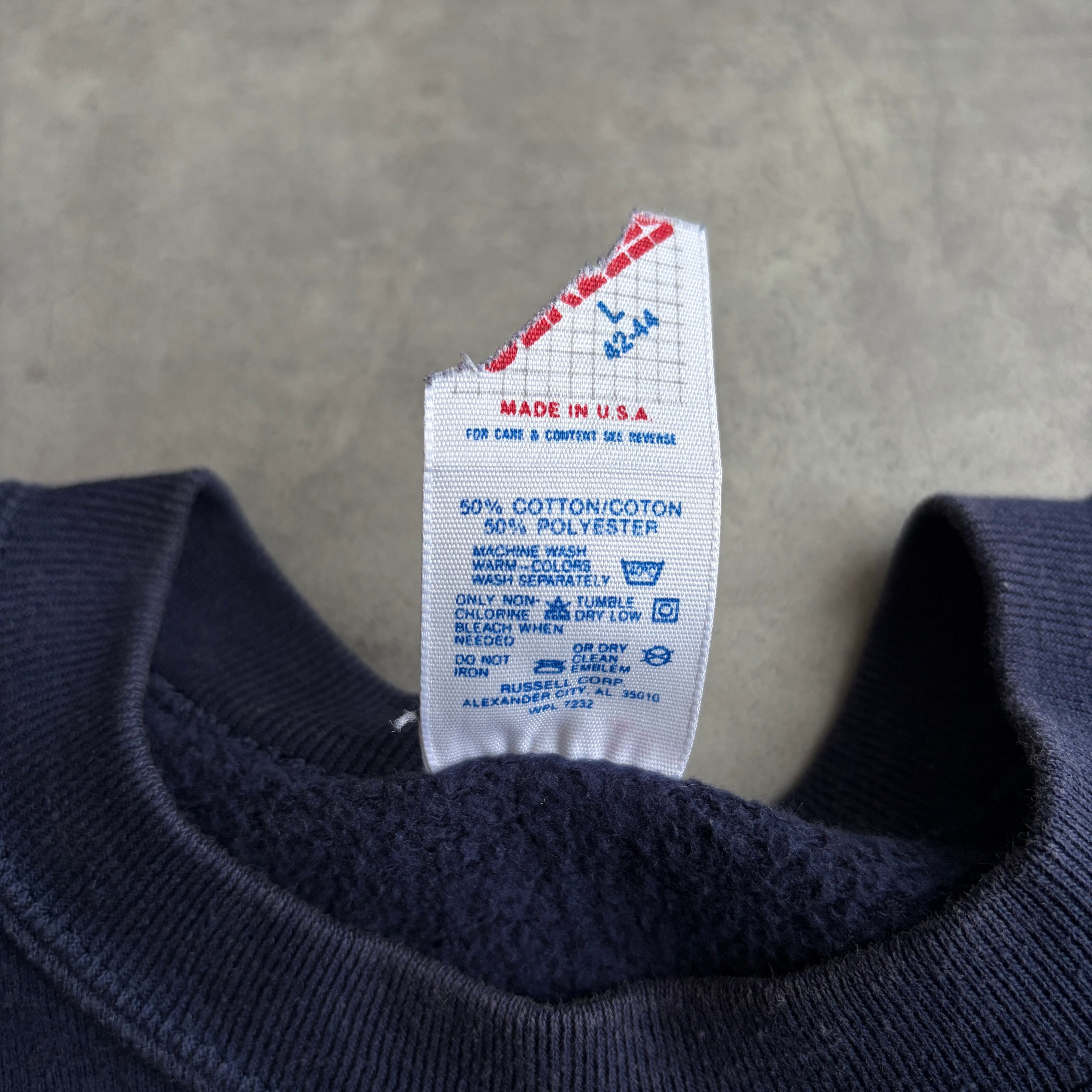 90s/JERZEES/ジャージーズ/スウェット/USA製/アメリカ製/メッセージプリント/ユーモア/ジョーク/ネイビー/紺/jmaple