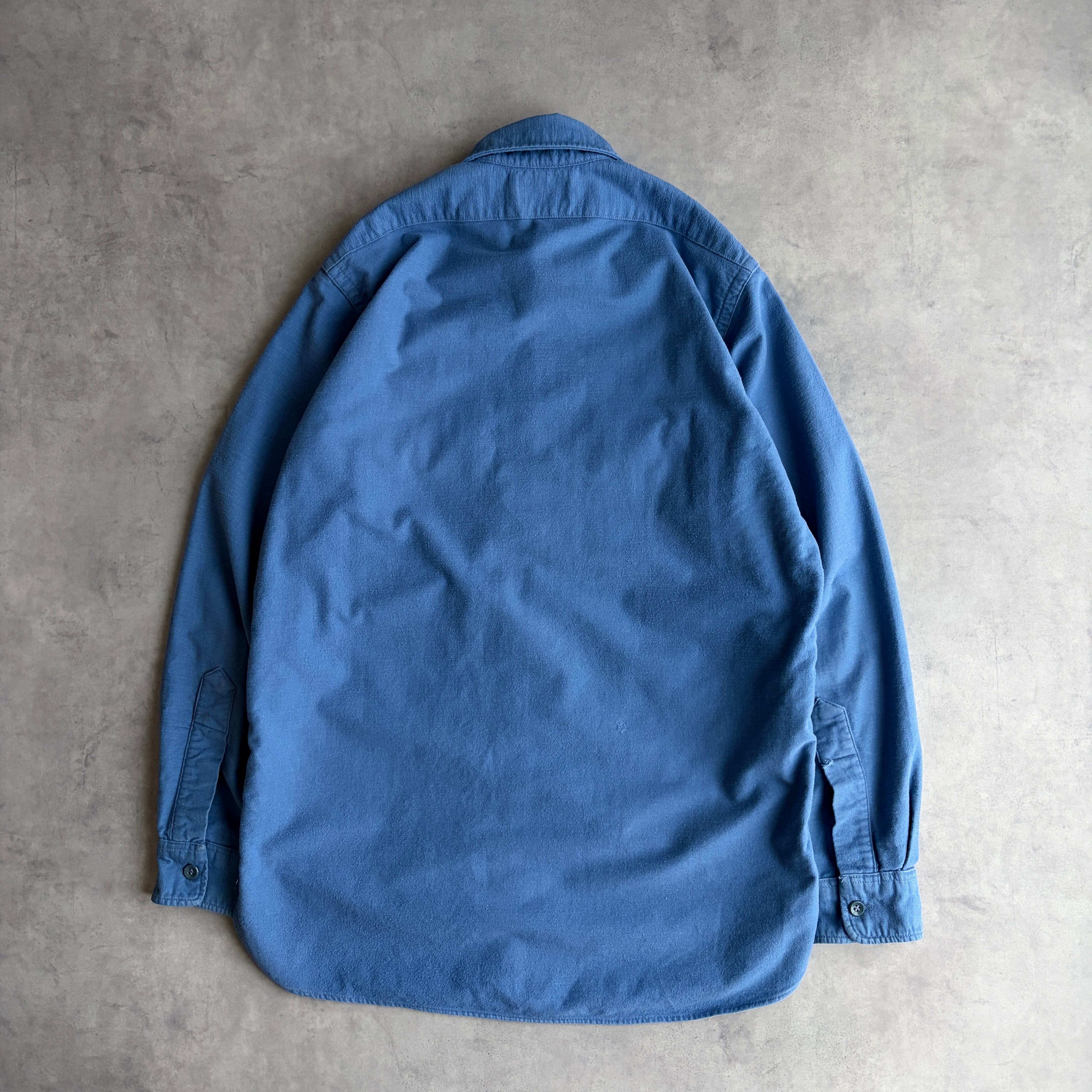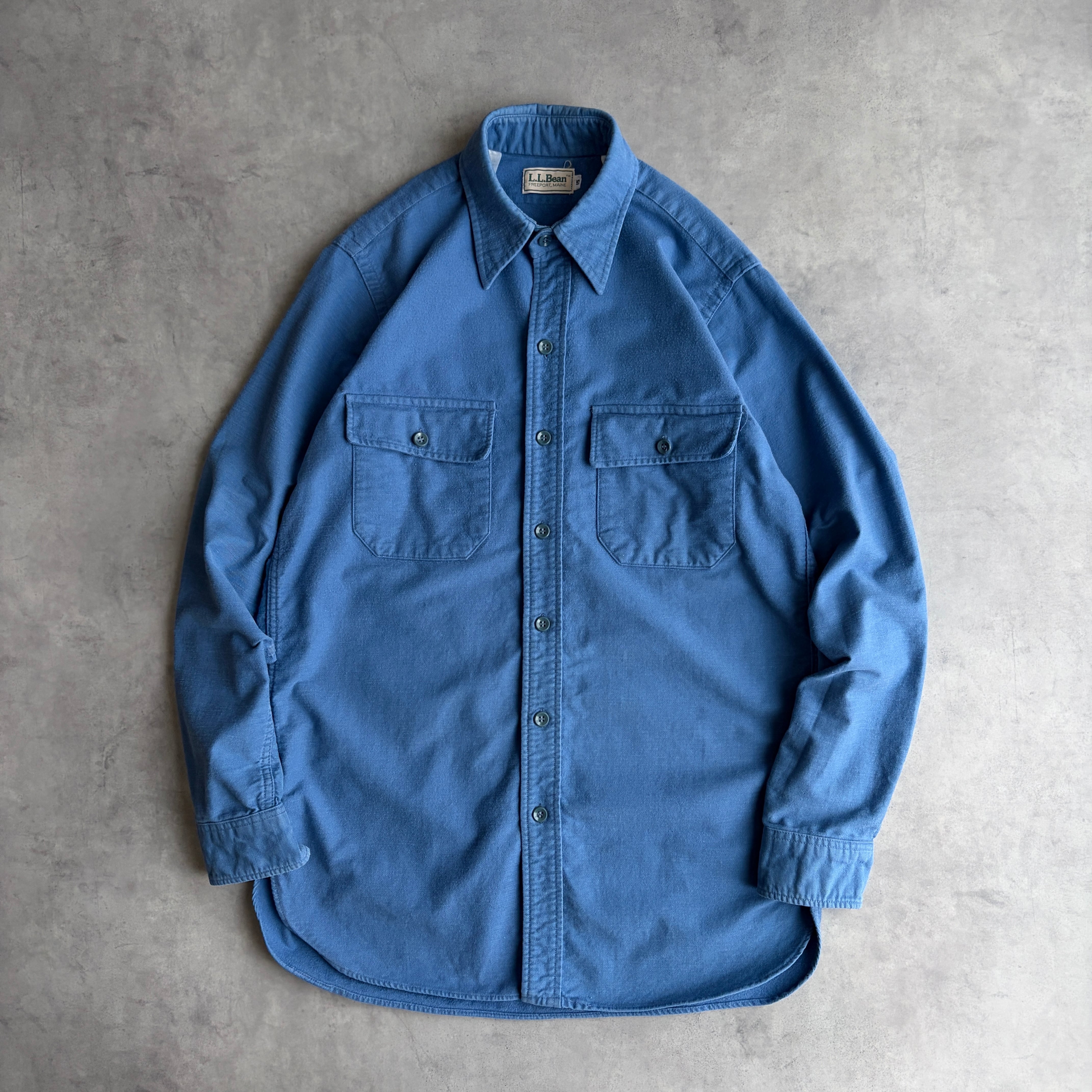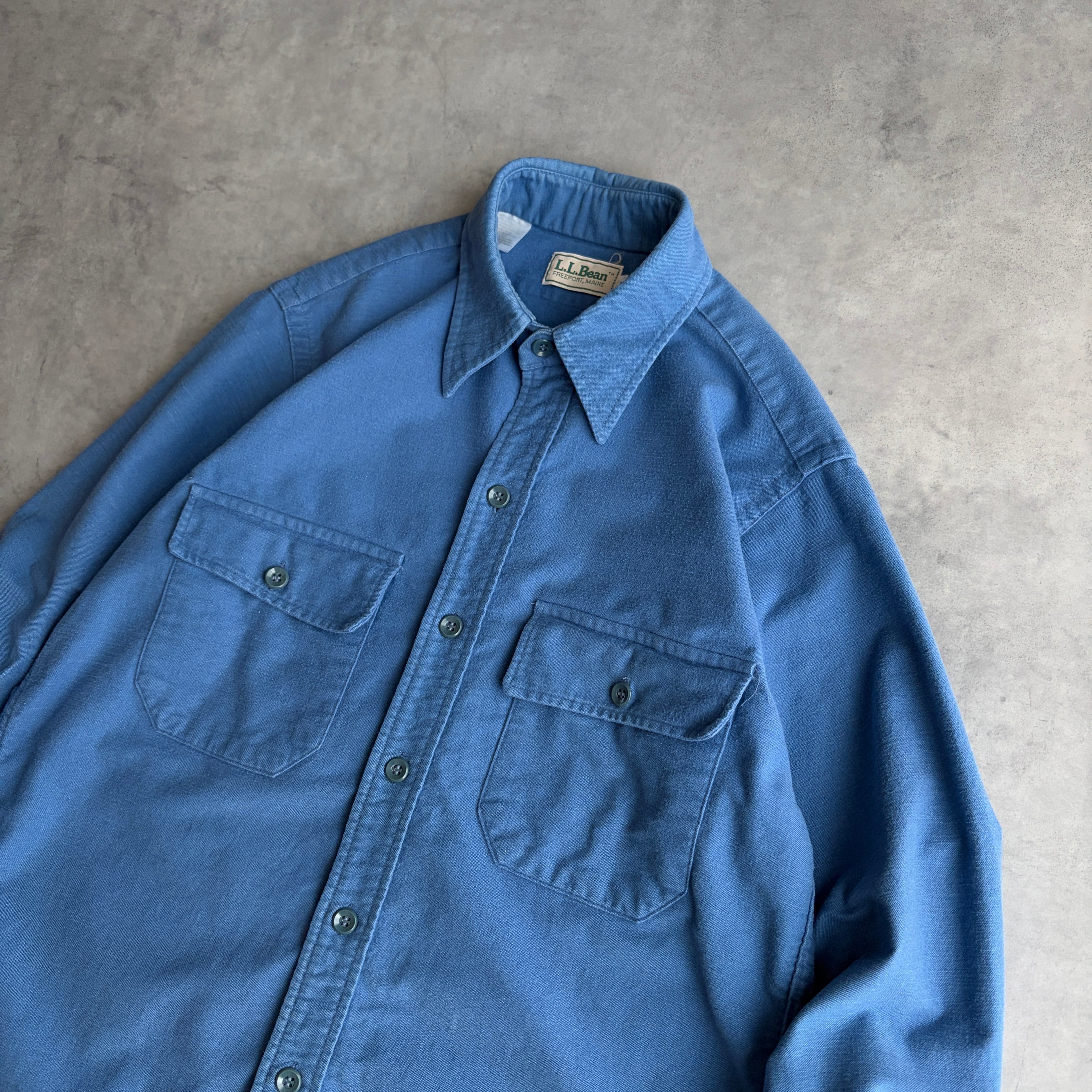 70s/L.L.Bean/エルエルビーン/長袖シャツ/ヘビーフランネル生地/CHAMOIS CLOTH/シャモアクロス/TM表記/無地/フラップポケット/サイドスリット/ブルー/jmaple