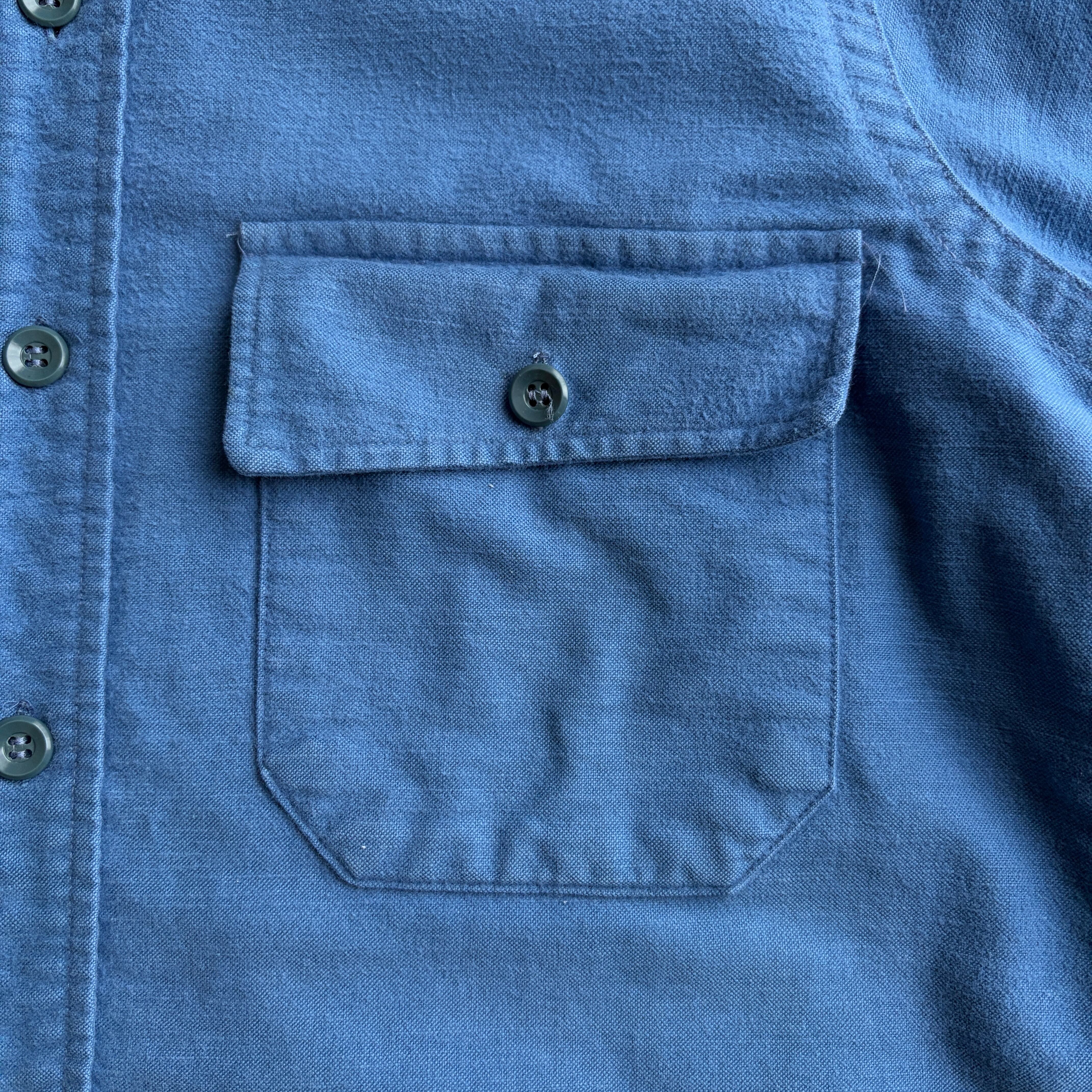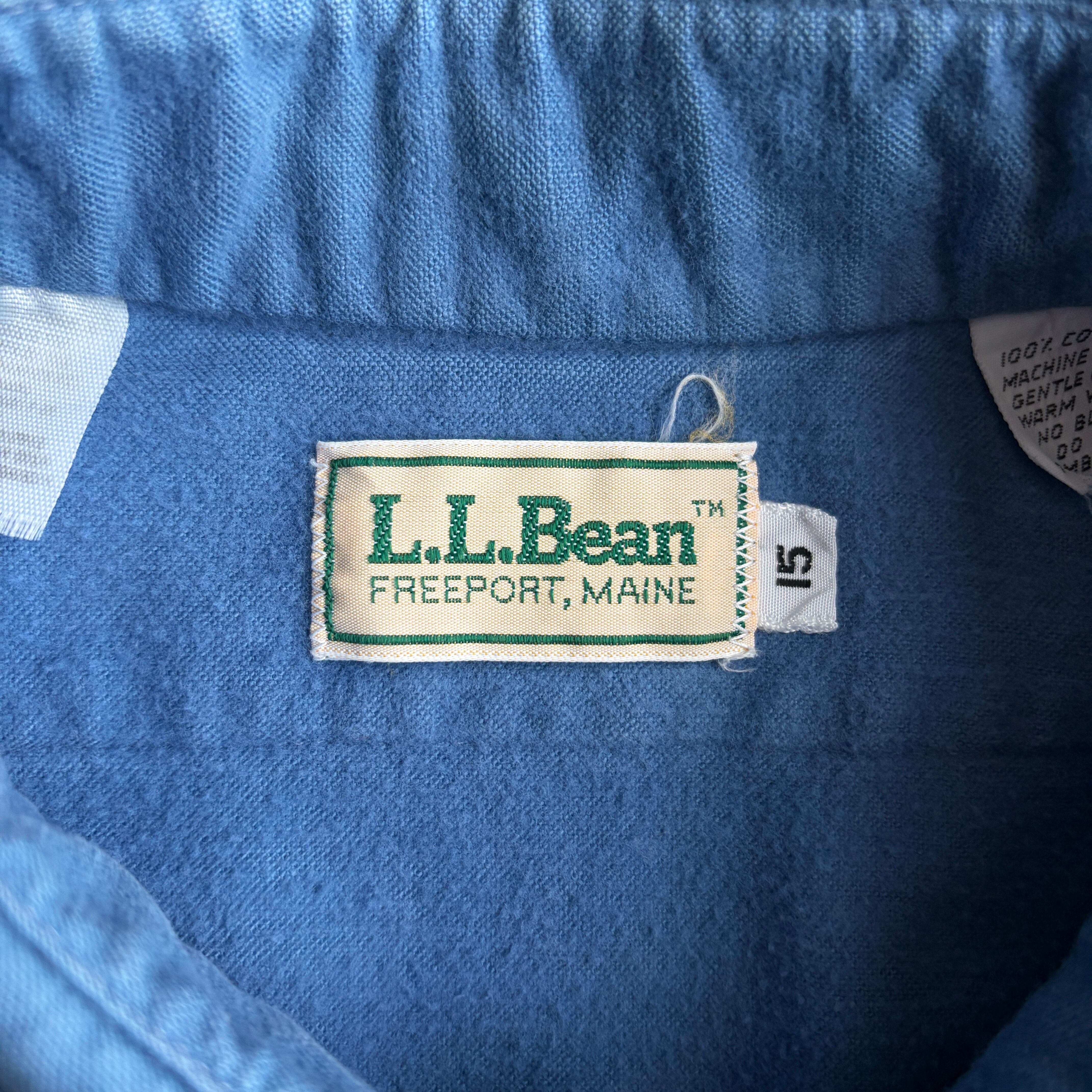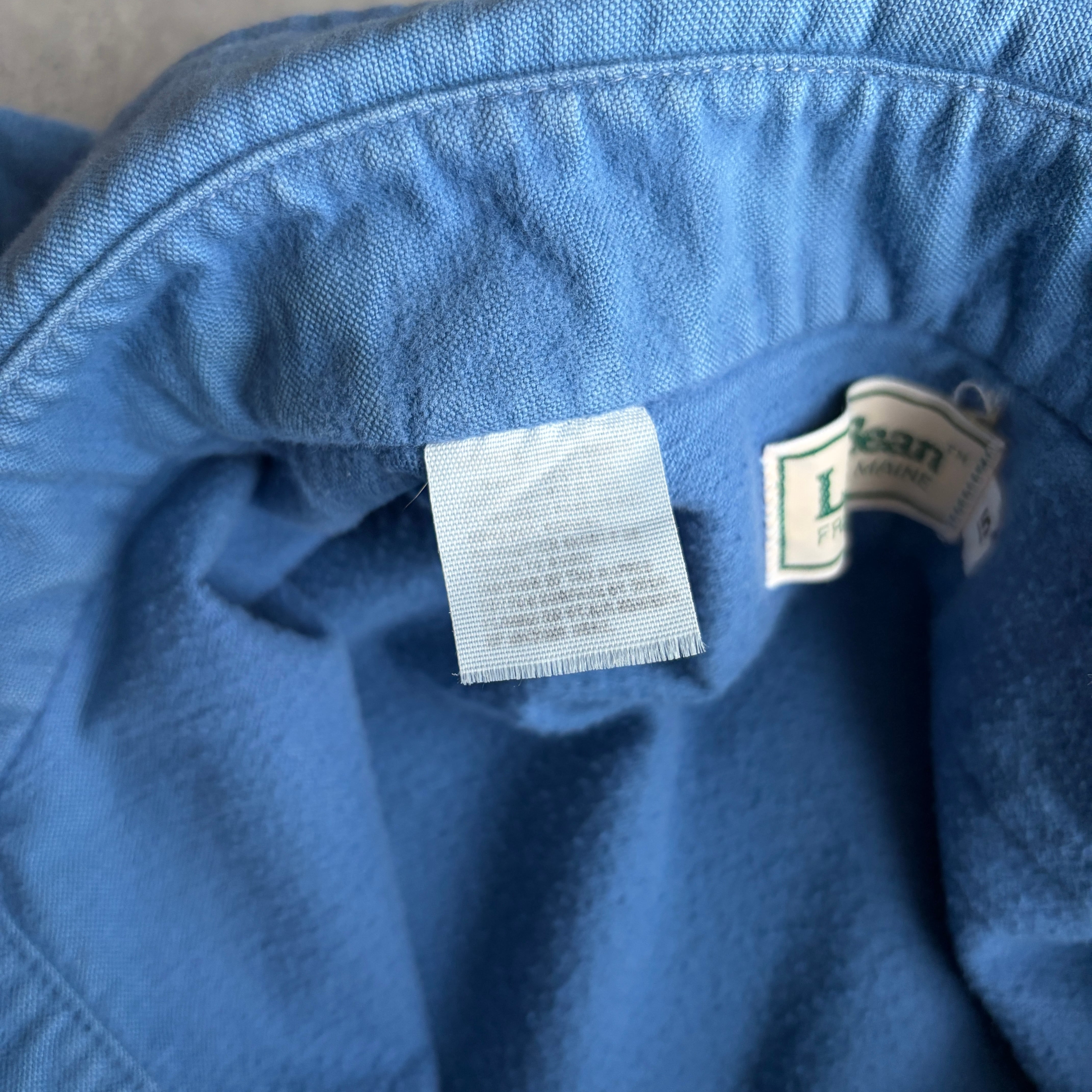 70s/L.L.Bean/エルエルビーン/長袖シャツ/ヘビーフランネル生地/CHAMOIS CLOTH/シャモアクロス/TM表記/無地/フラップポケット/サイドスリット/ブルー/jmaple