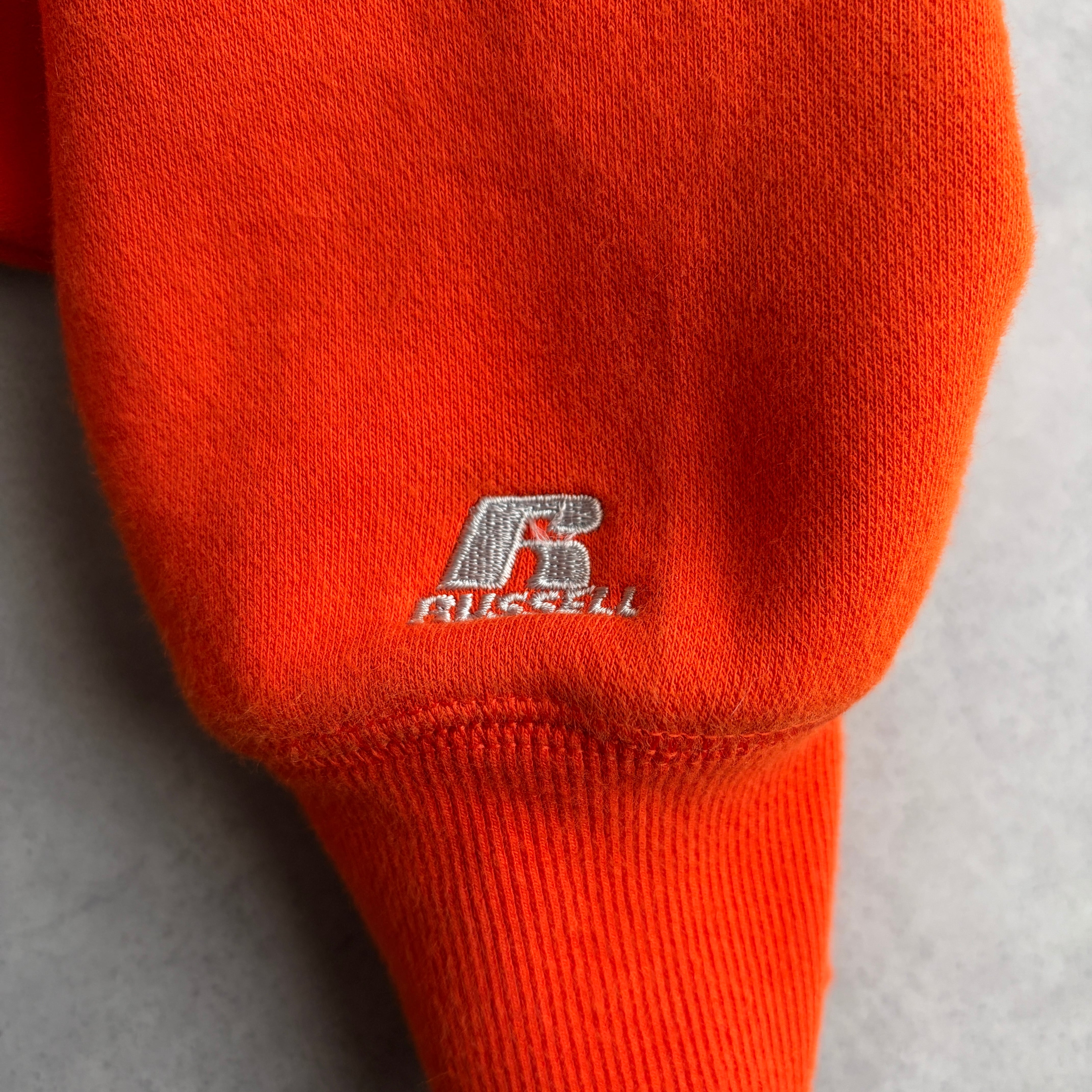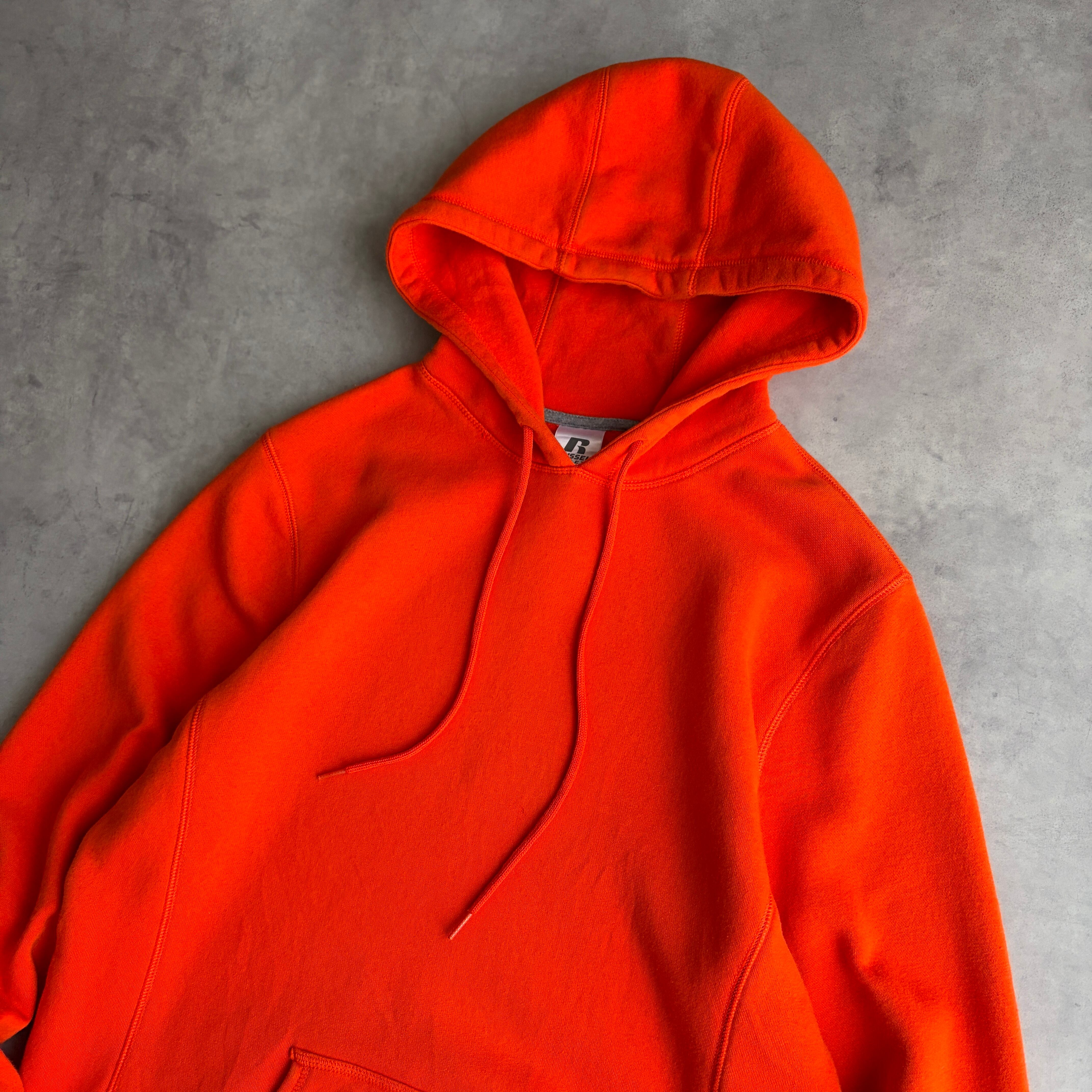 RUSSELL ATHLETIC/ラッセルアスレチック/プルオーバーパーカー/無地/ソリッド/ノームコア/プレーン/ブランク/ロゴ刺繍/脇ガゼット/オレンジ/jmaple