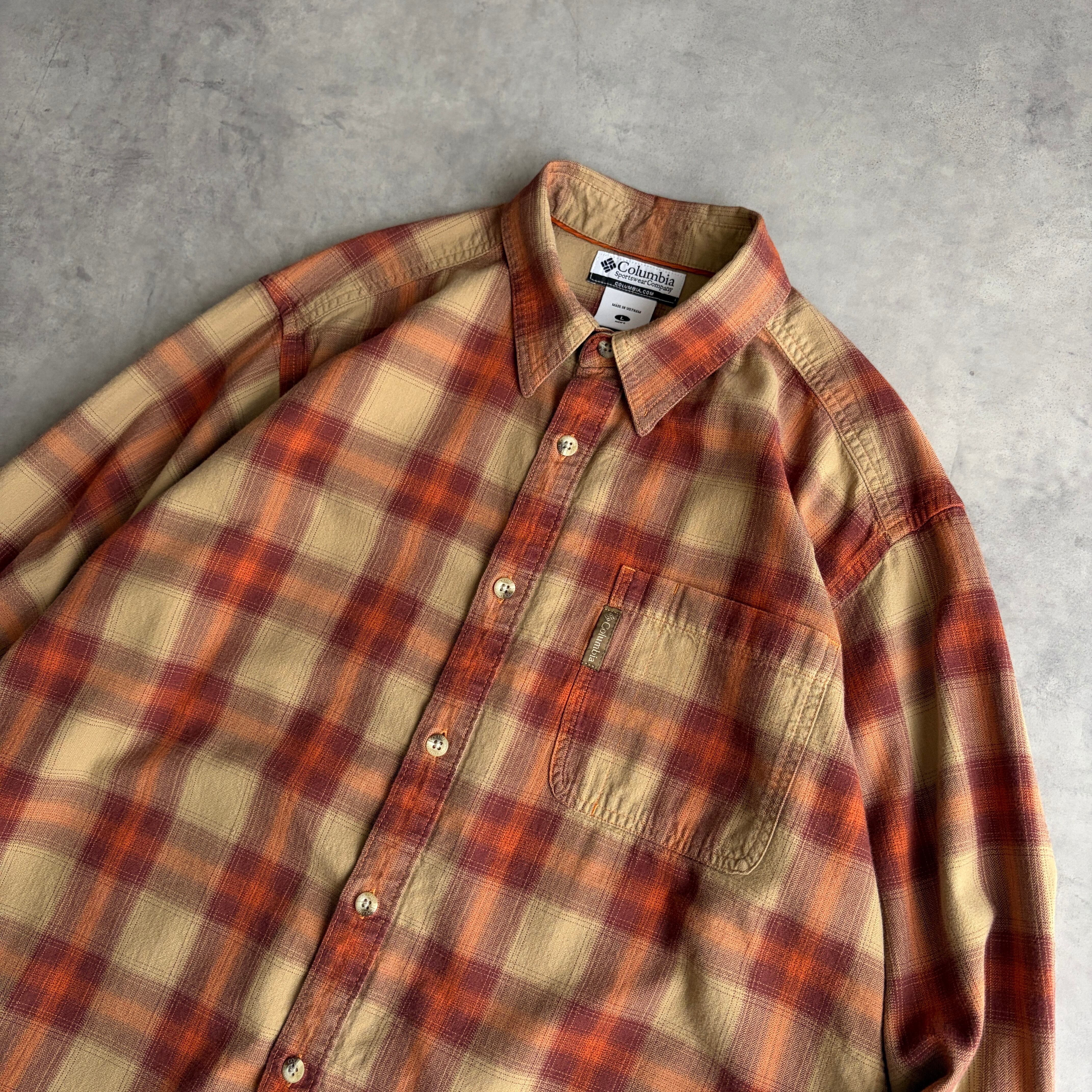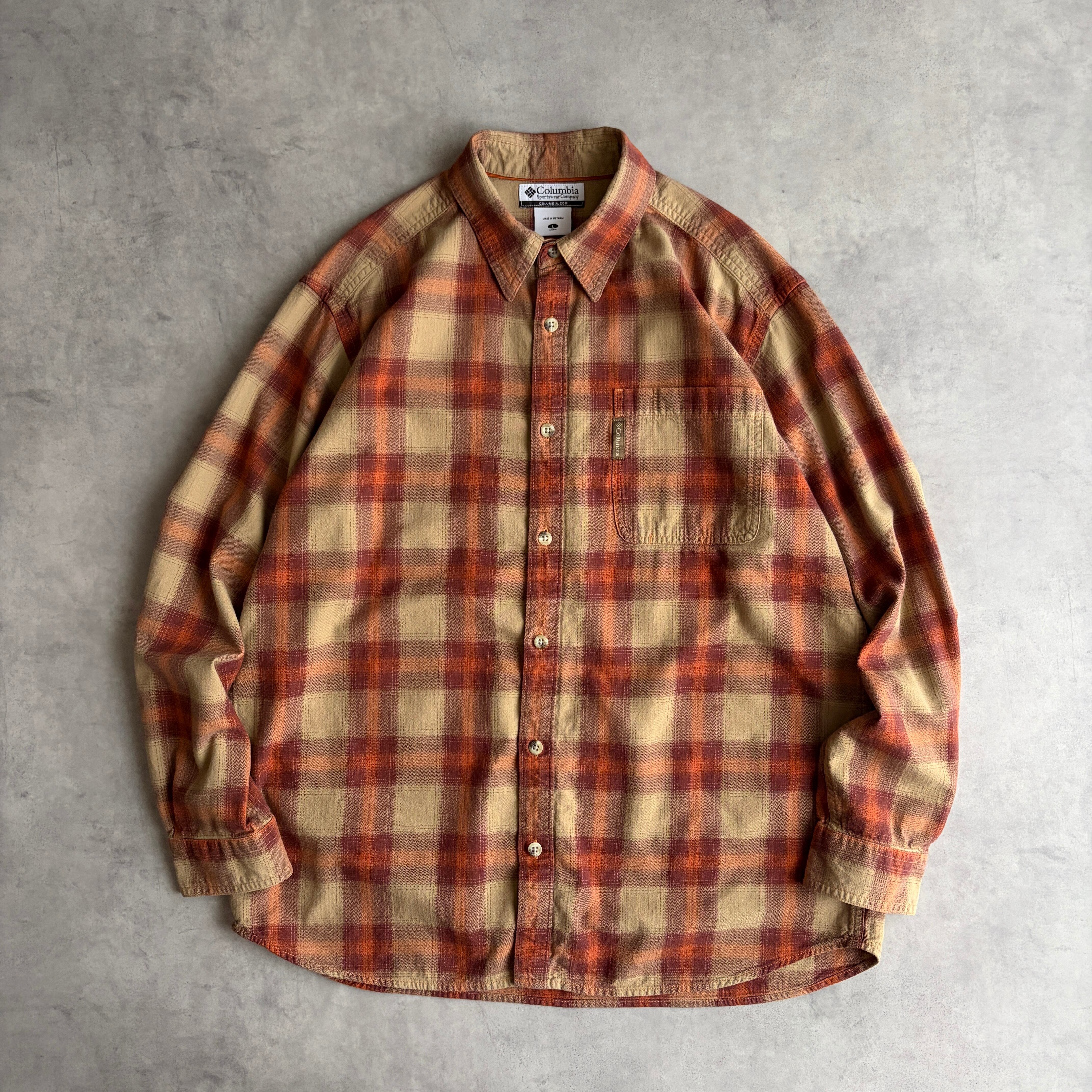 Columbia/コロンビア/長袖シャツ/フランネル生地/ビスコース混/レーヨン/オンブレチェック/格子柄/ヘリンボーン/オレンジ/jmaple