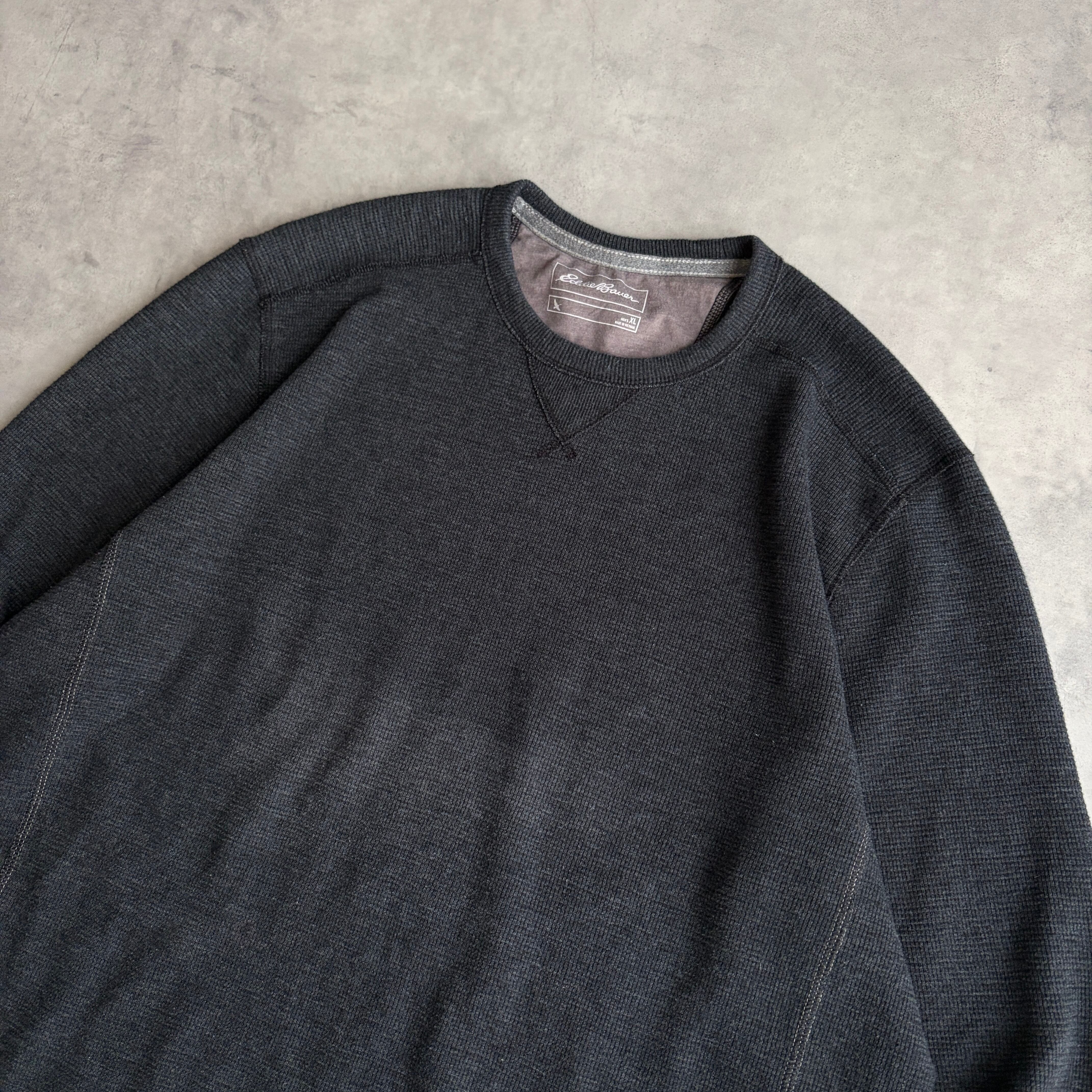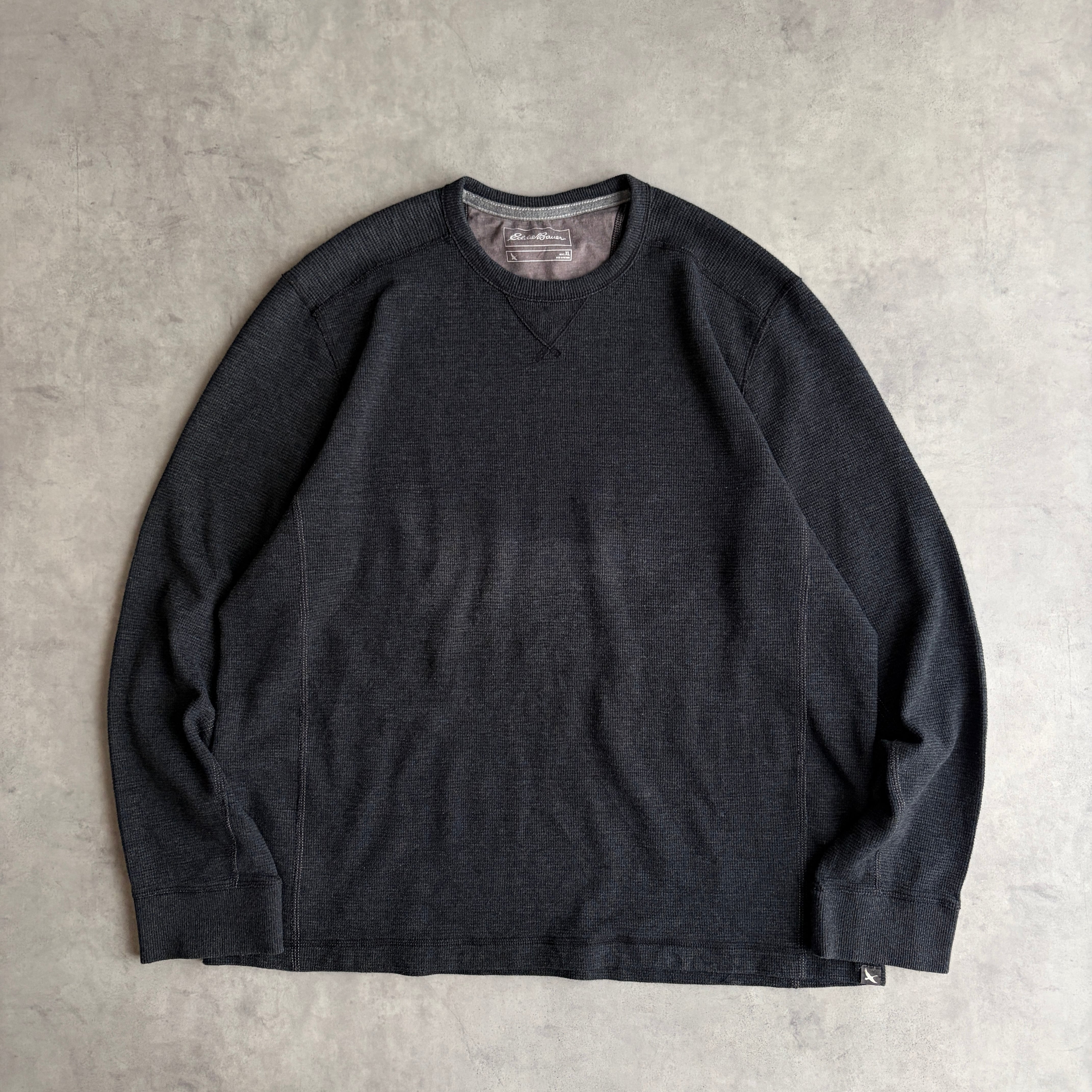 Eddie Bauer/エディーバウアー/長袖カットソー/サーマルロンT/ワッフル/前Vガゼット/メランジ/杢/ロゴタブ/チャコールグレー/jmaple