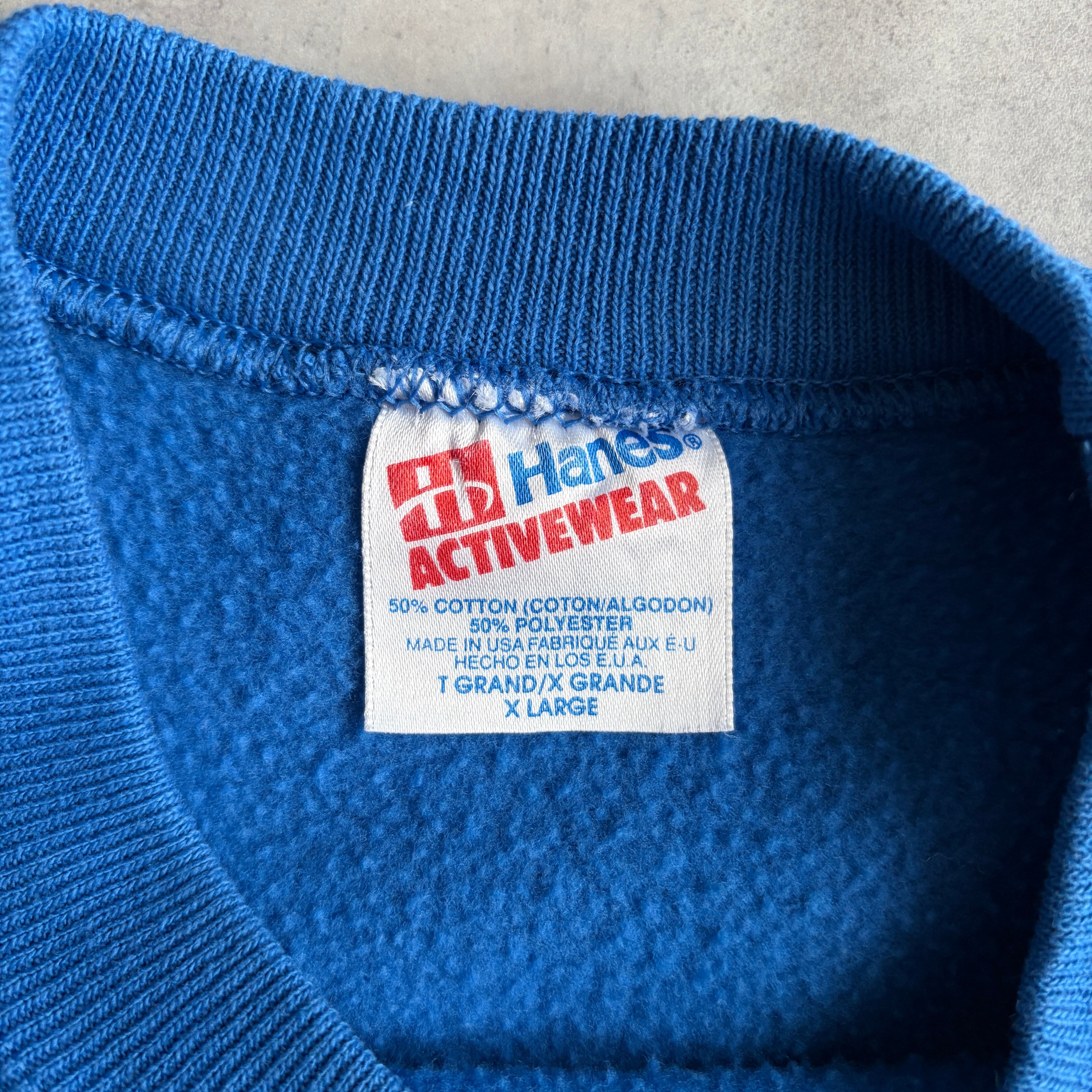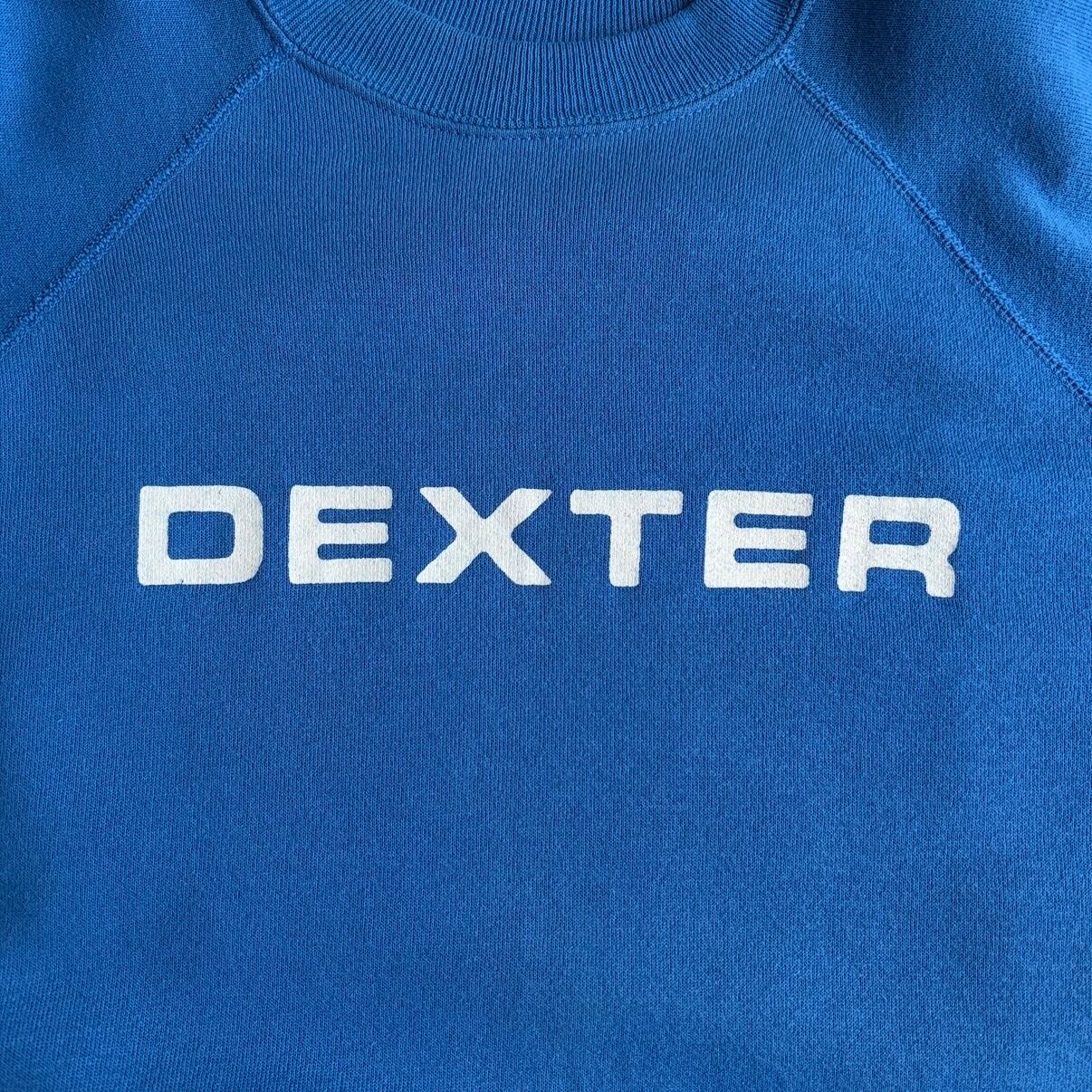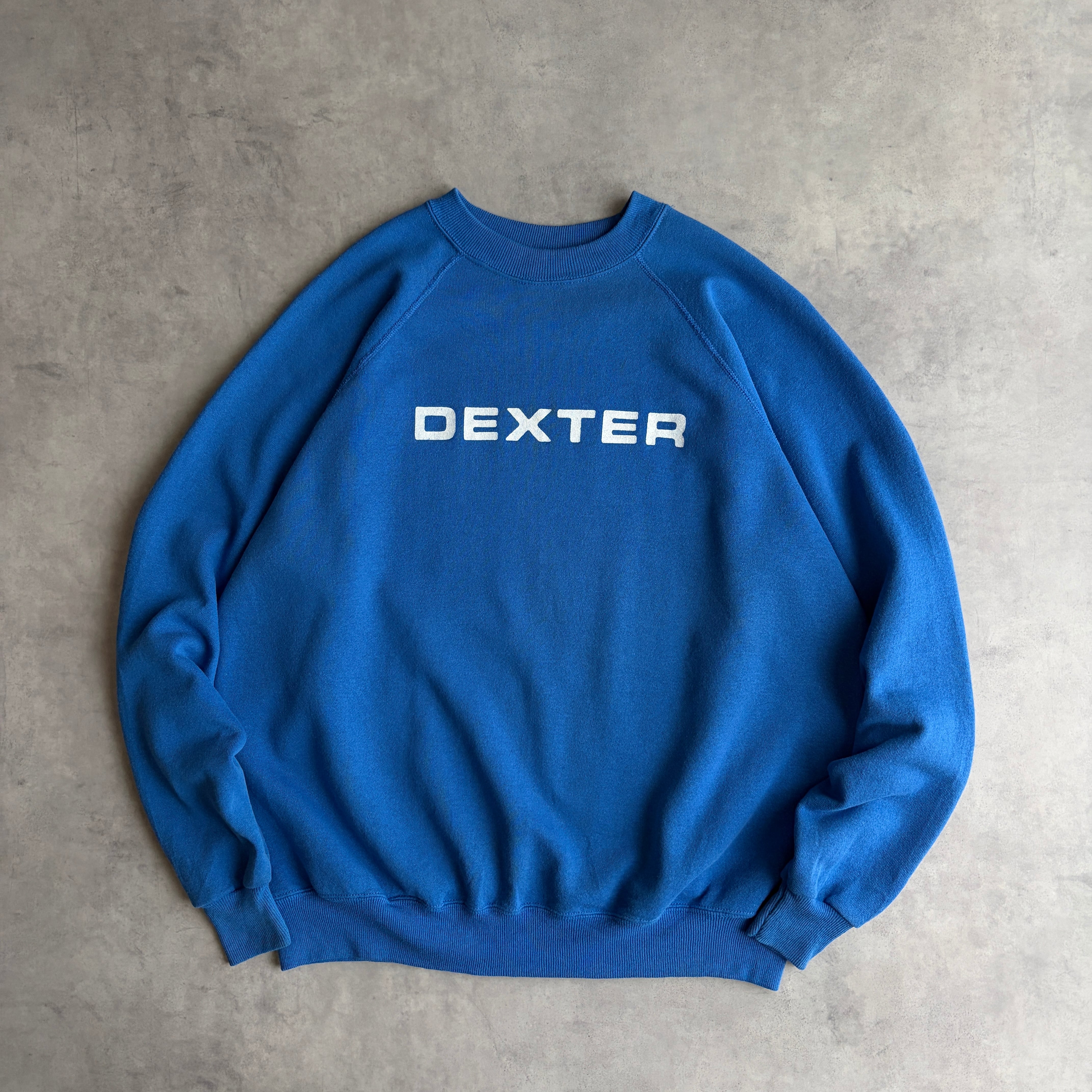 90s/Hanes/ヘインズ/スウェット/USA製/アメリカ製/ラグランスリーブ/DEXTER/ロゴプリント/シンプルデザイン/ブルー/jmaple