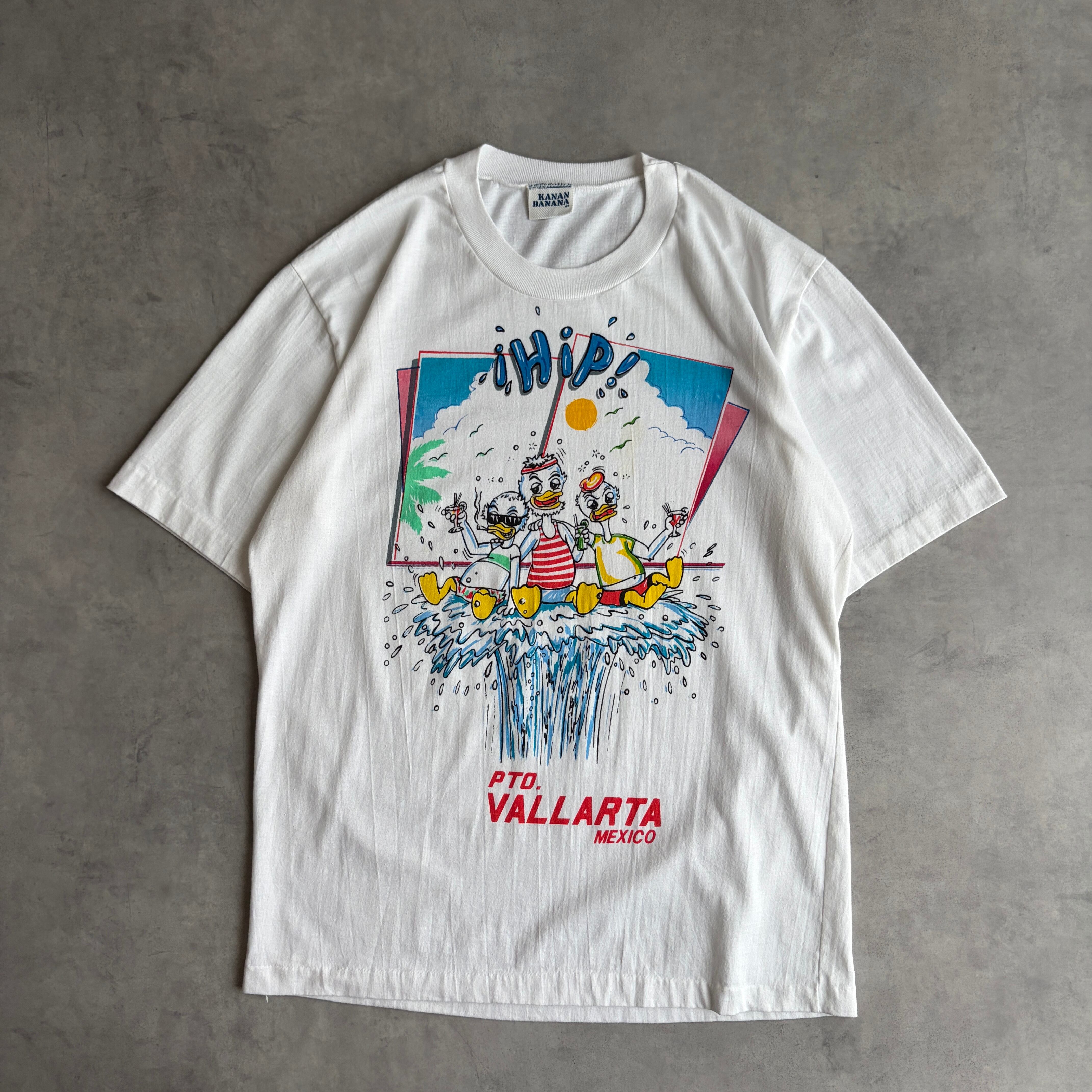 90s/KANAN BANANA/半袖Tシャツ/メキシコ製/シングルステッチ/アヒル/アニマル/スーベニアプリント/サマーバカンス/カートゥーン/キャラクター/ホワイト/白/jmaple
