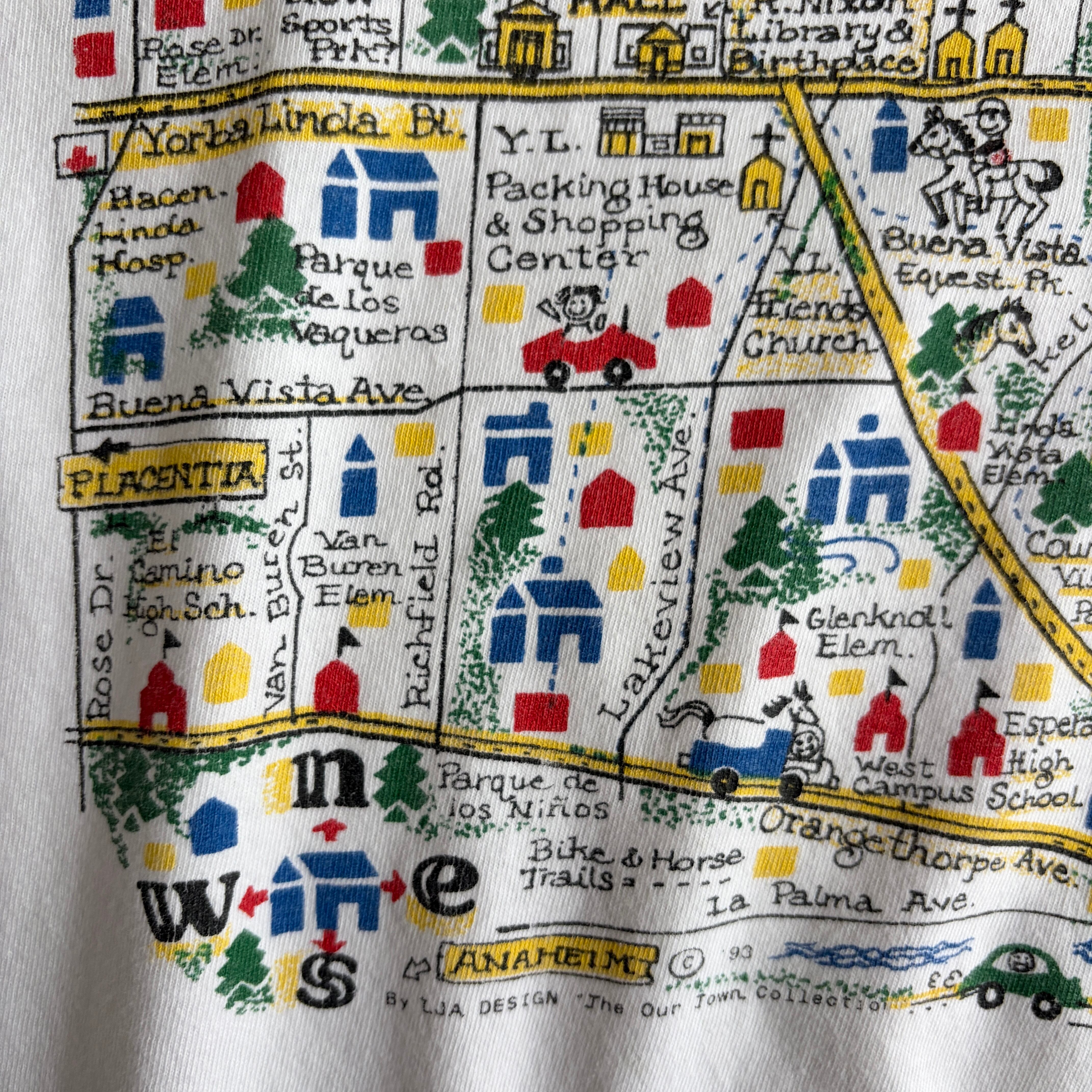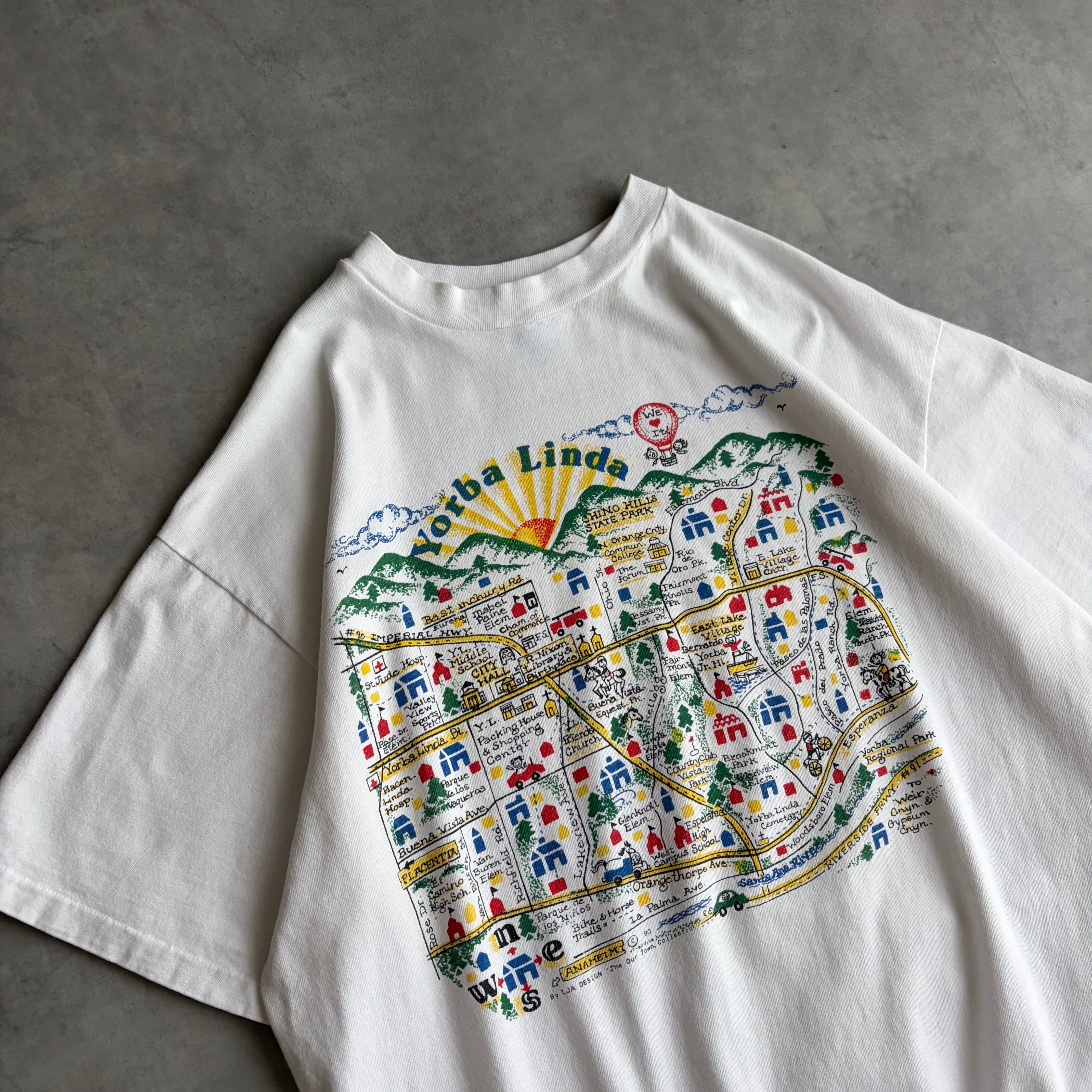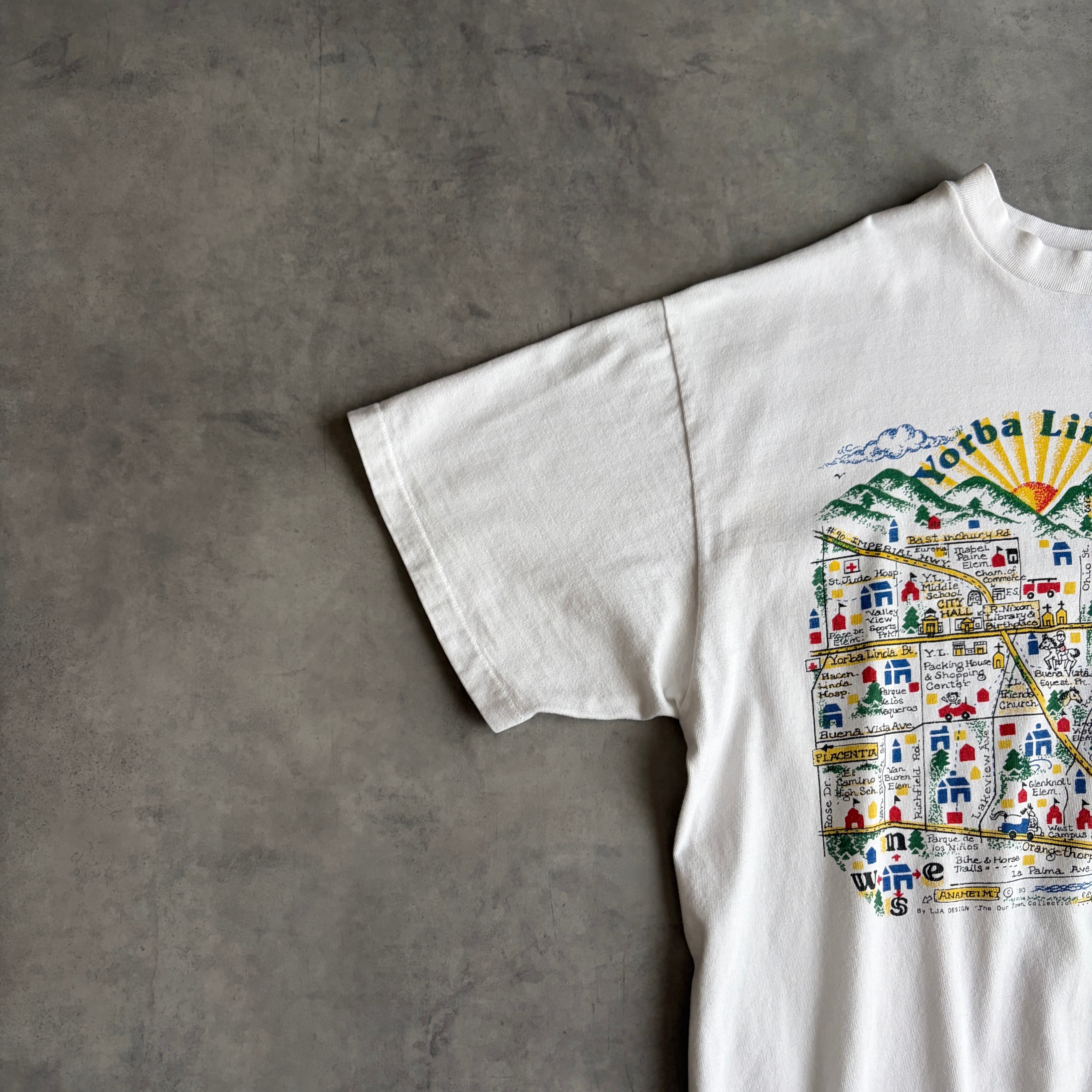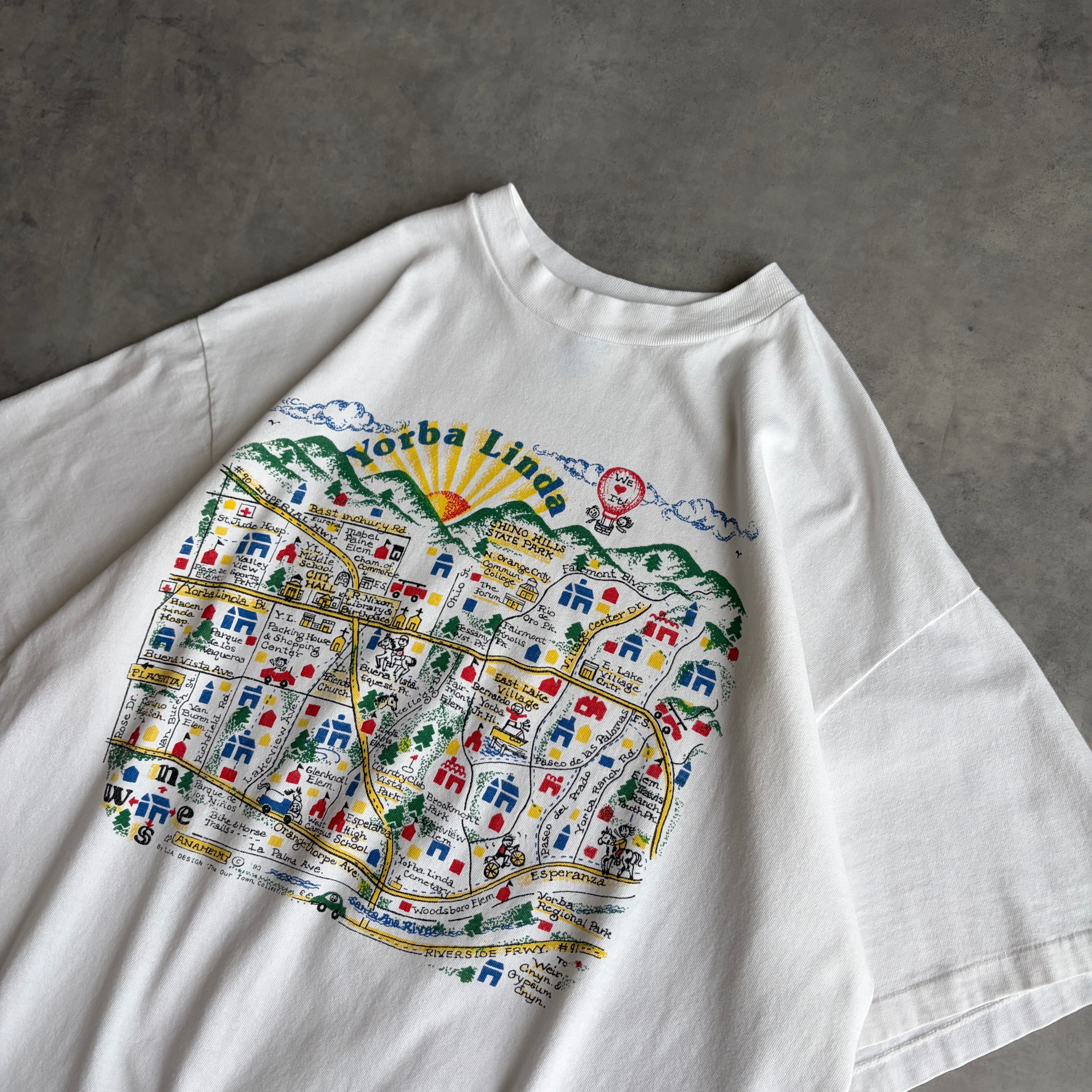 90s/Hanes/ヘインズ/半袖Tシャツ/USA製/アメリカ製/シングルステッチ/マップアートプリント/地図/スーベニア/キッズ/ポップ/BEEFY-T/ホワイト/白/jmaple
