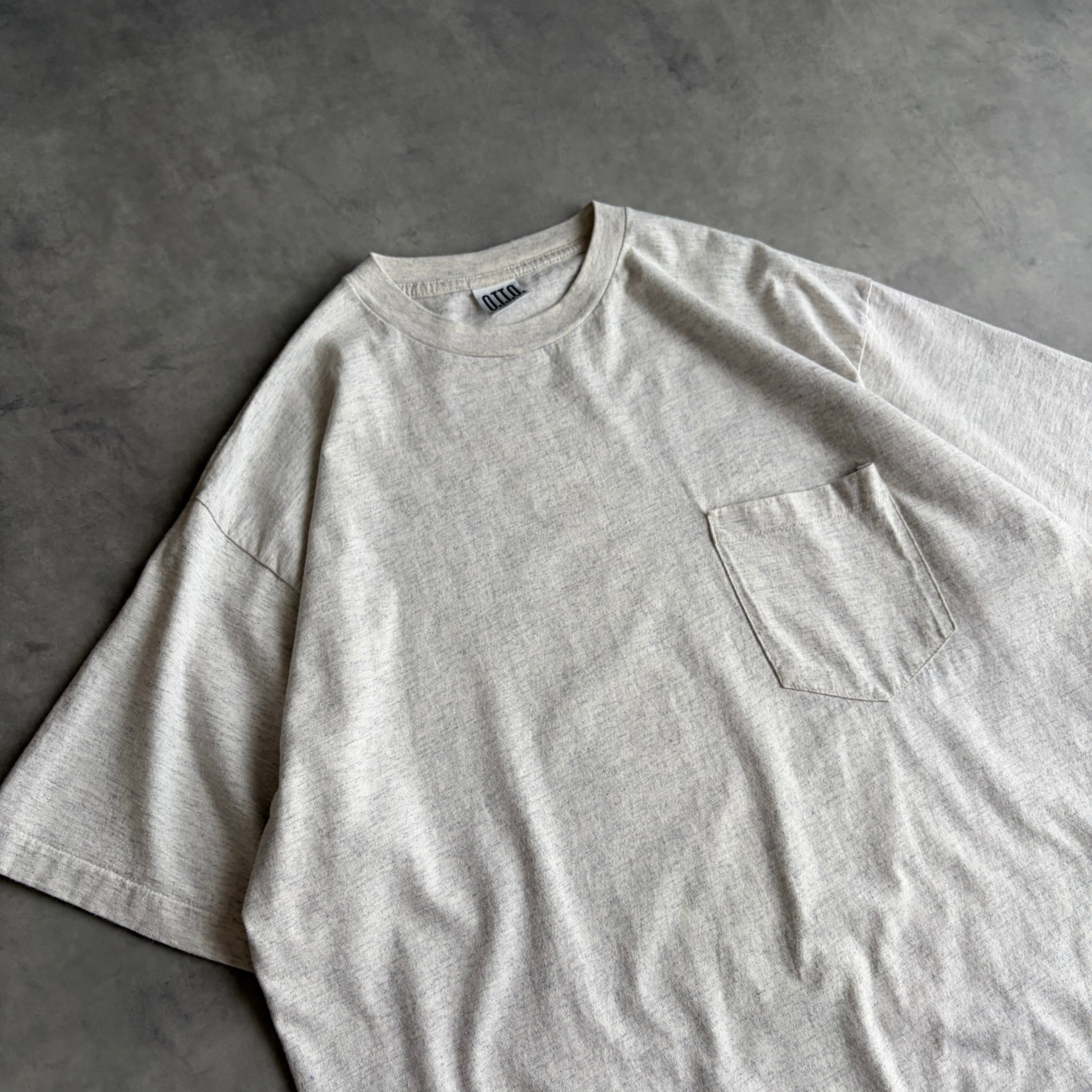 90s/O.T.T.O/半袖Tシャツ/USA製/アメリカ製/シングルステッチ/ポケット付き/無地/ノームコア/ソリッド/生成り風/オフホワイト/杢/メランジ/jmaple