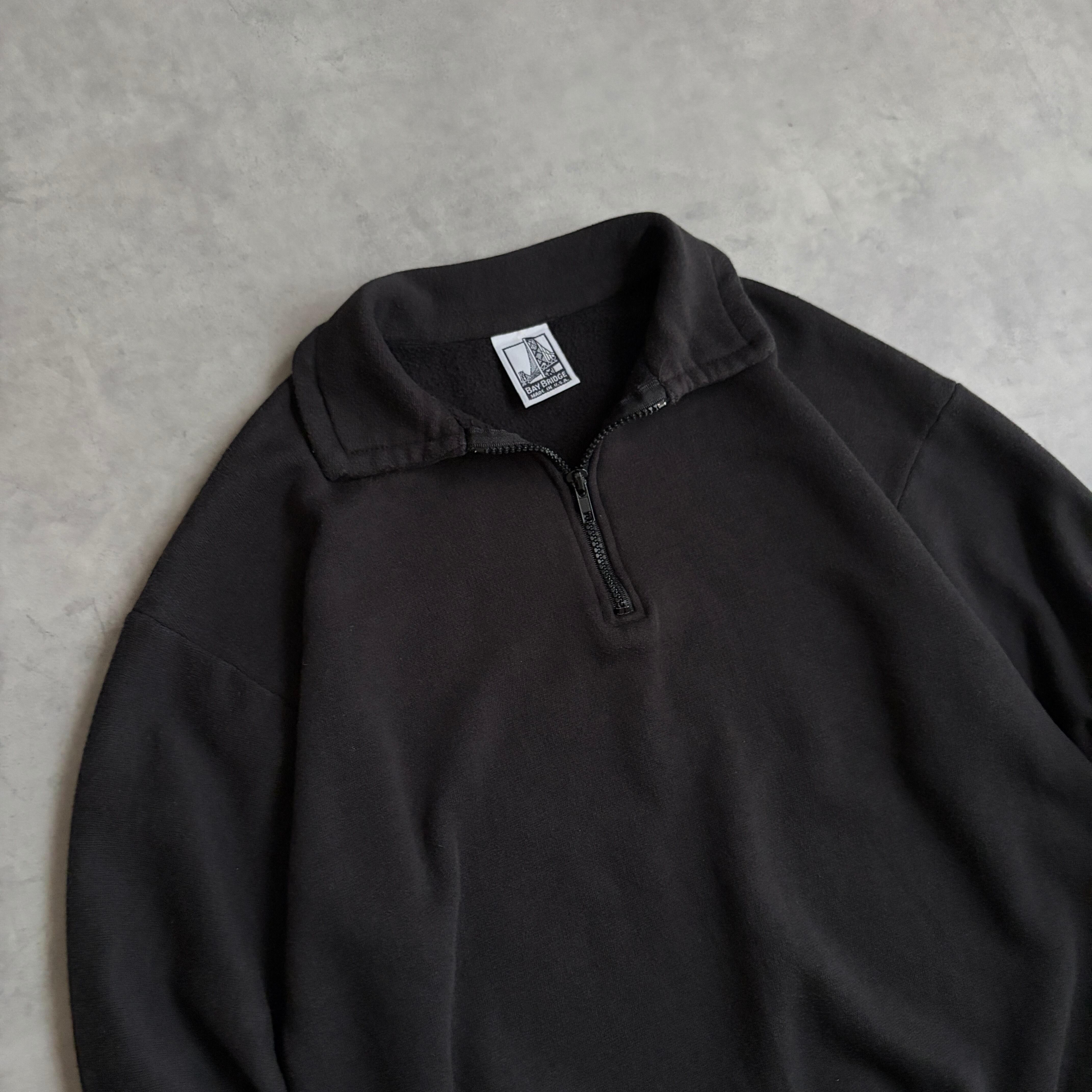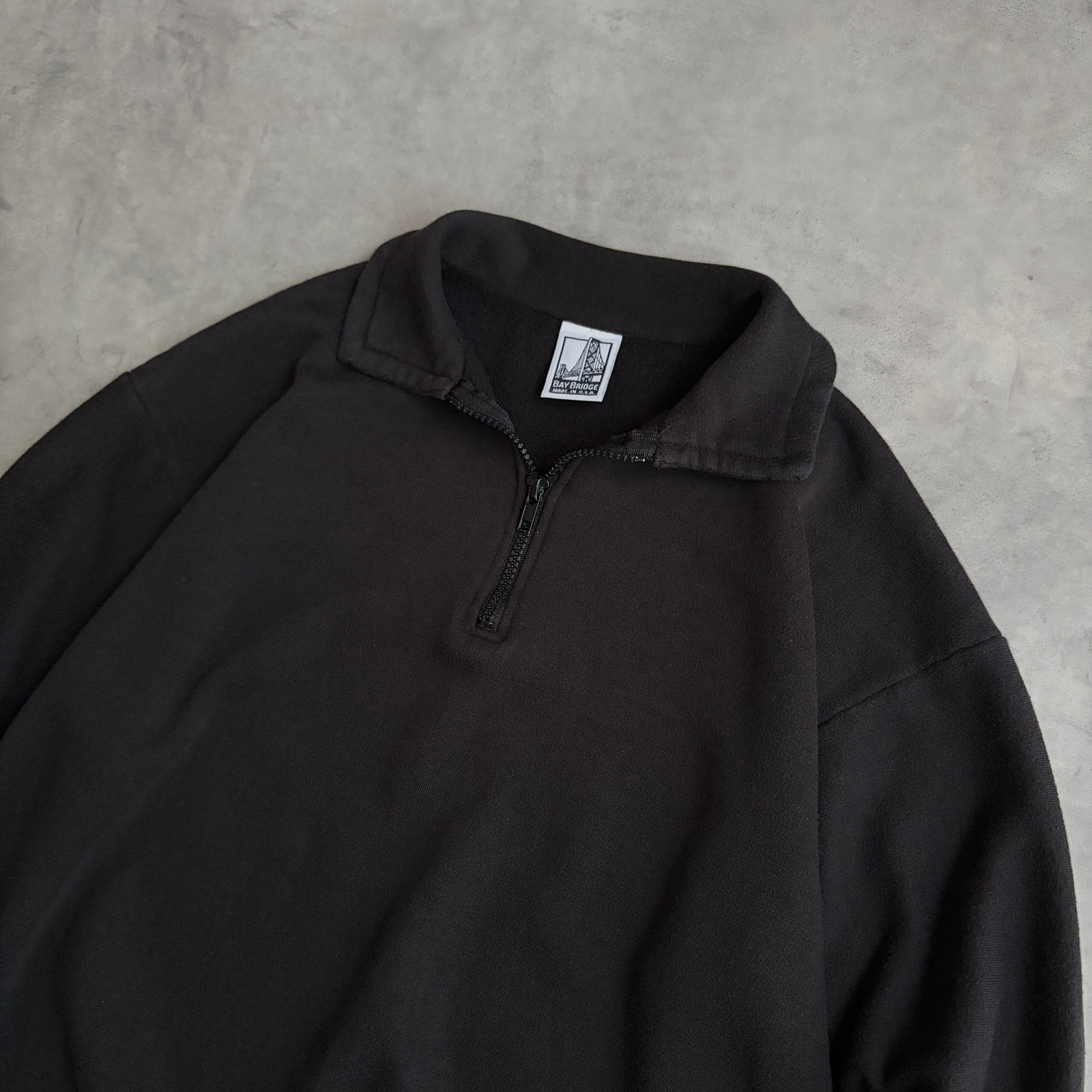 90s/BAY BRIDGE/ハーフジップスウェット/襟付き/USA製/アメリカ製/無地/ソリッド/ノームコア/ブラック/黒/jmaple