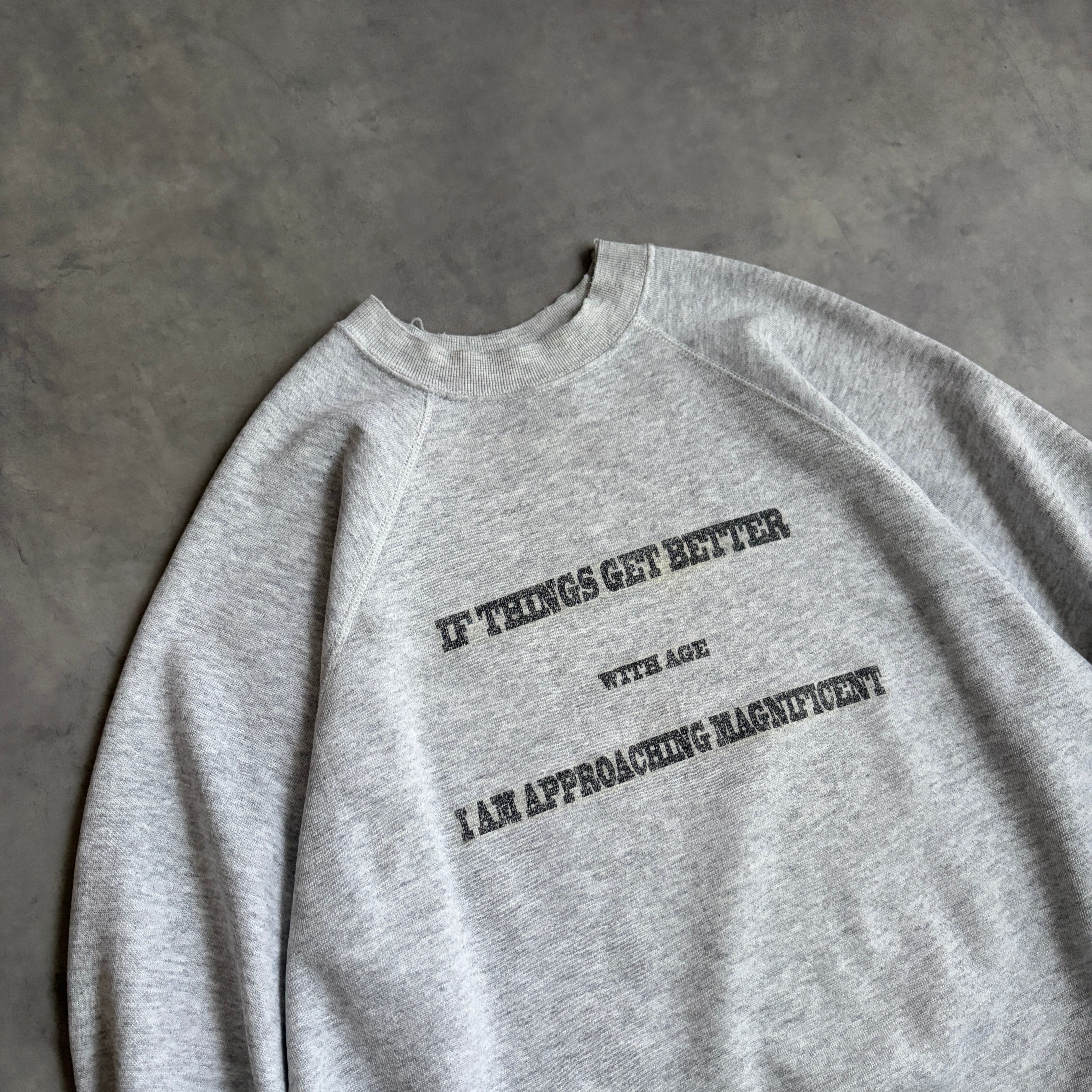 90s/TULTEX/タルテックス/スウェット/USA製/アメリカ製/メッセージプリント/英文/ラグランスリーブ/杢グレー/jmaple