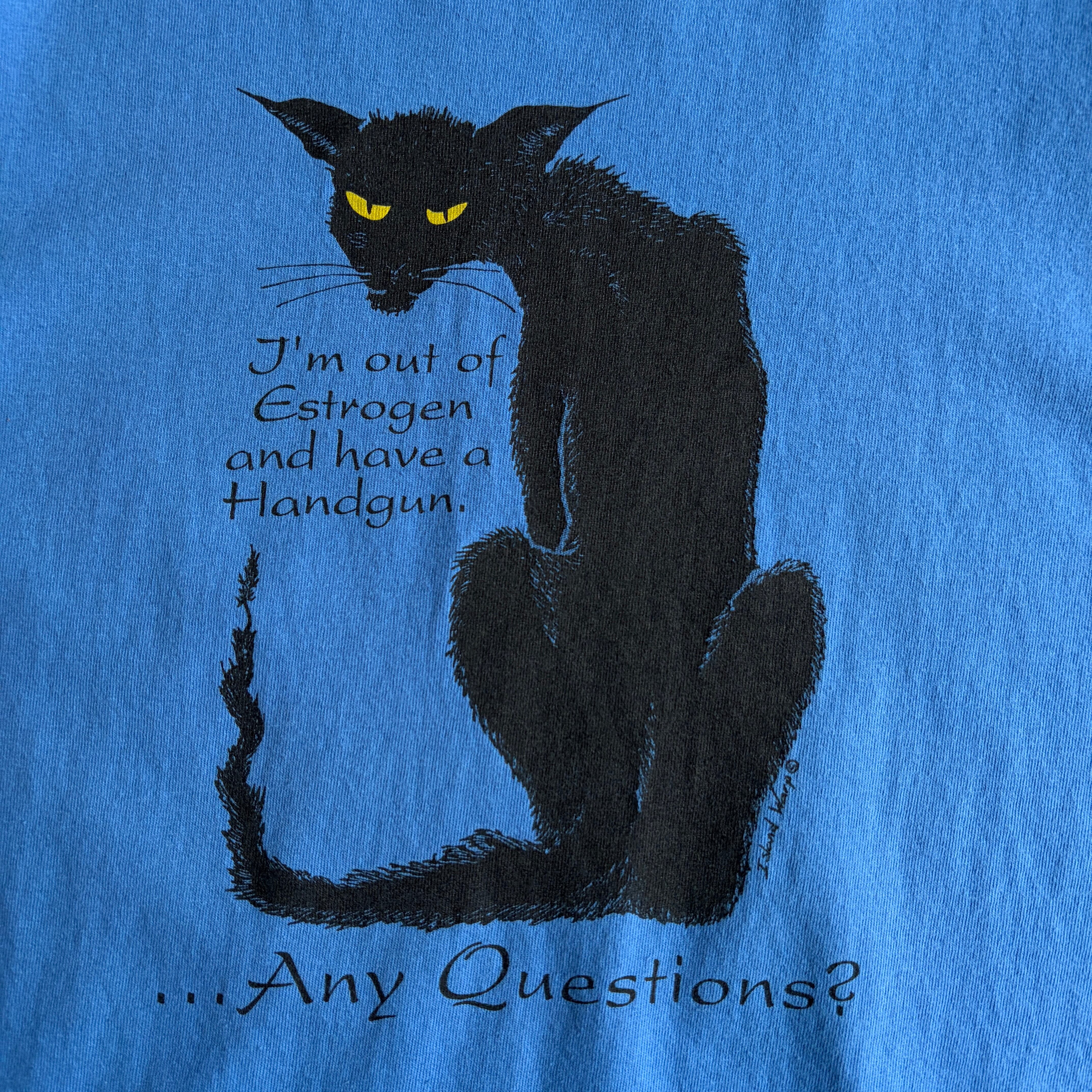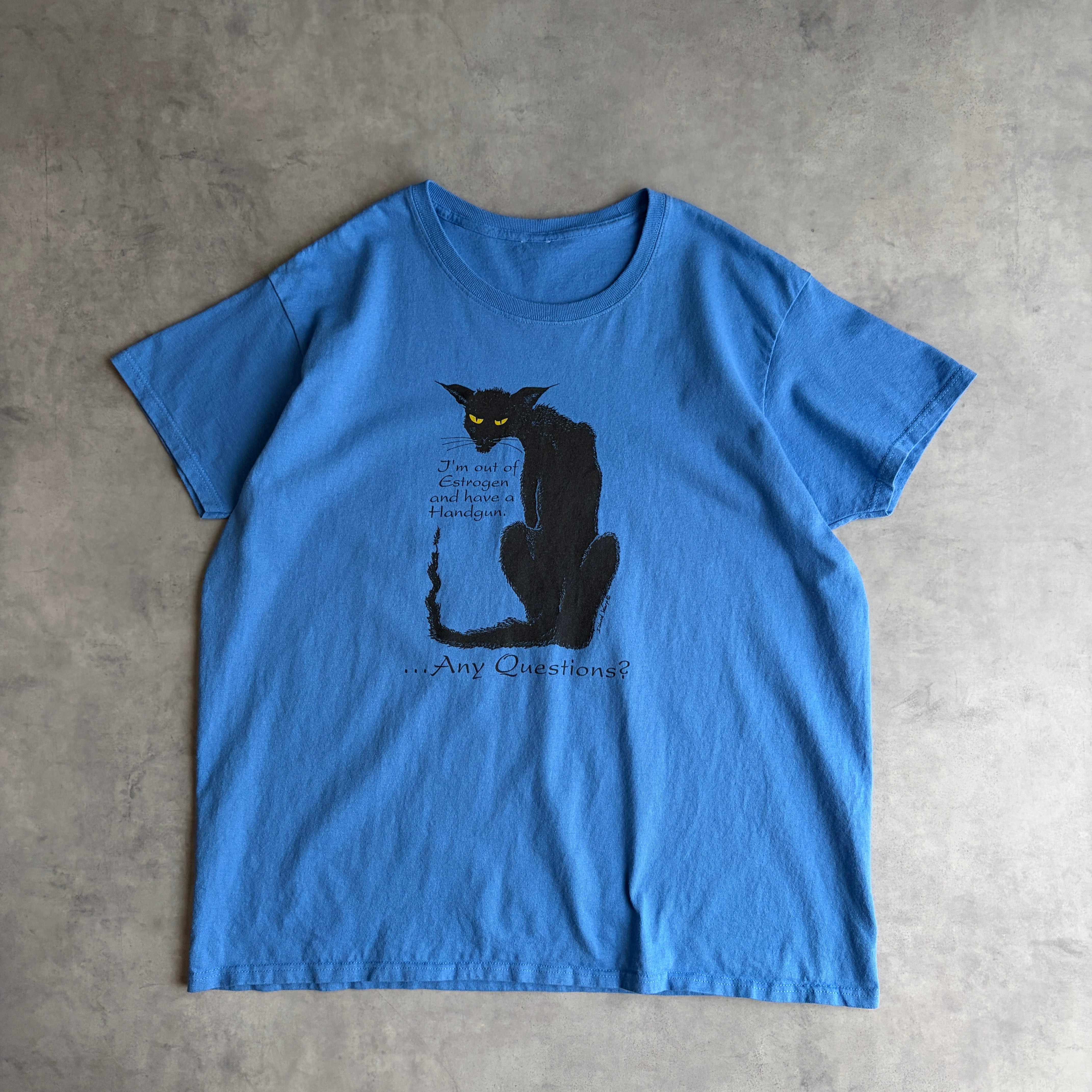 半袖Tシャツ/メッセージプリント/黒猫/アニマル/アート/ブラックジョーク/ブルー/jmaple