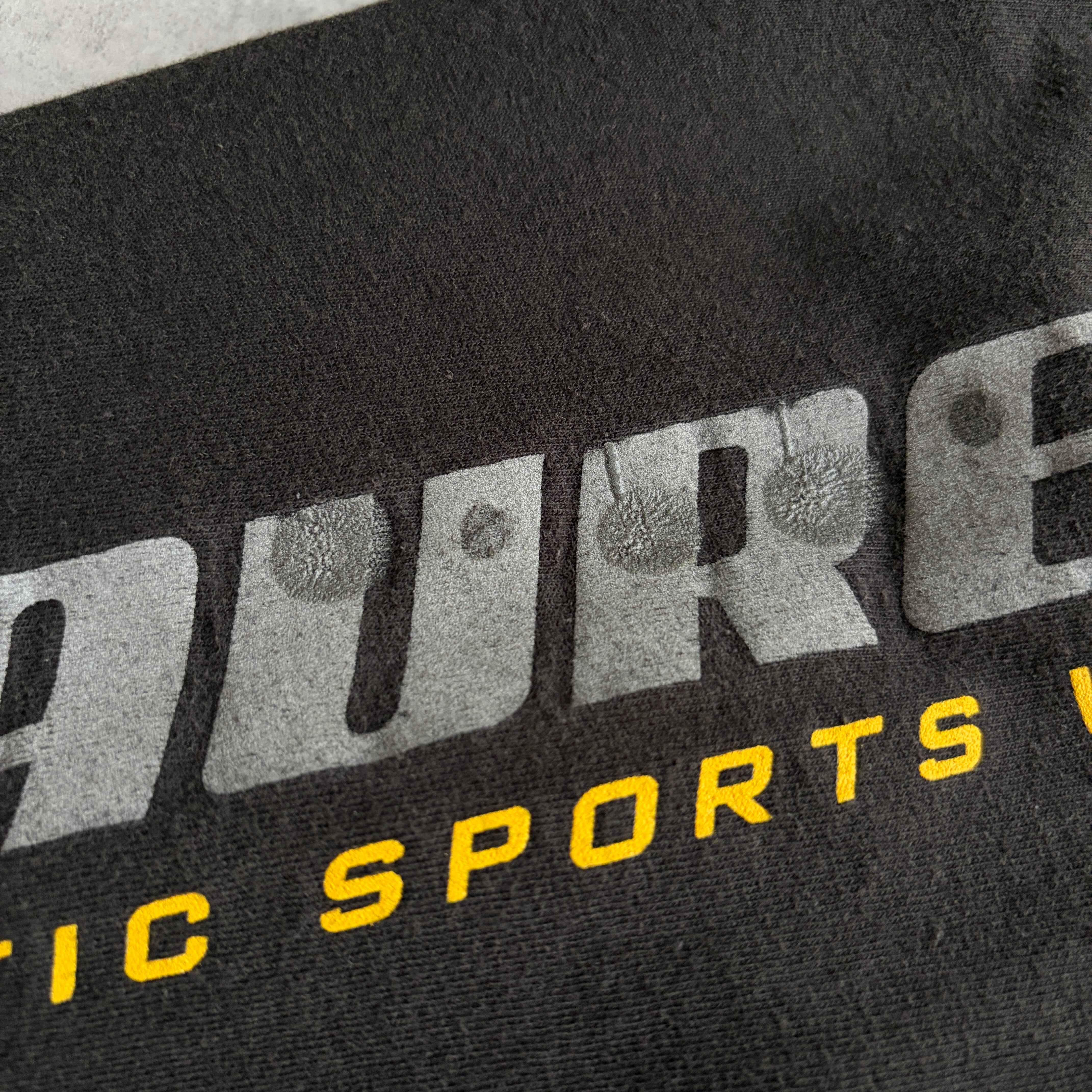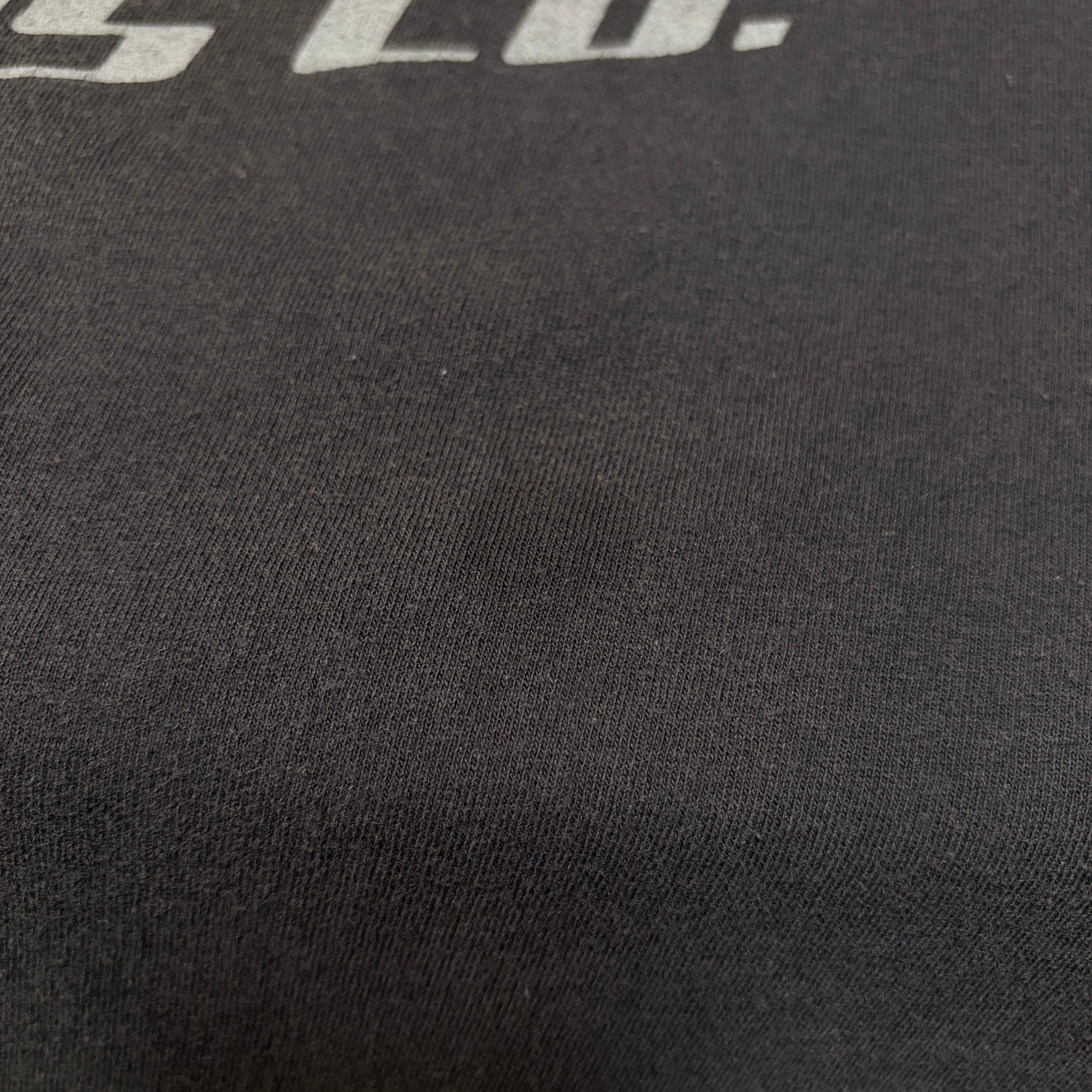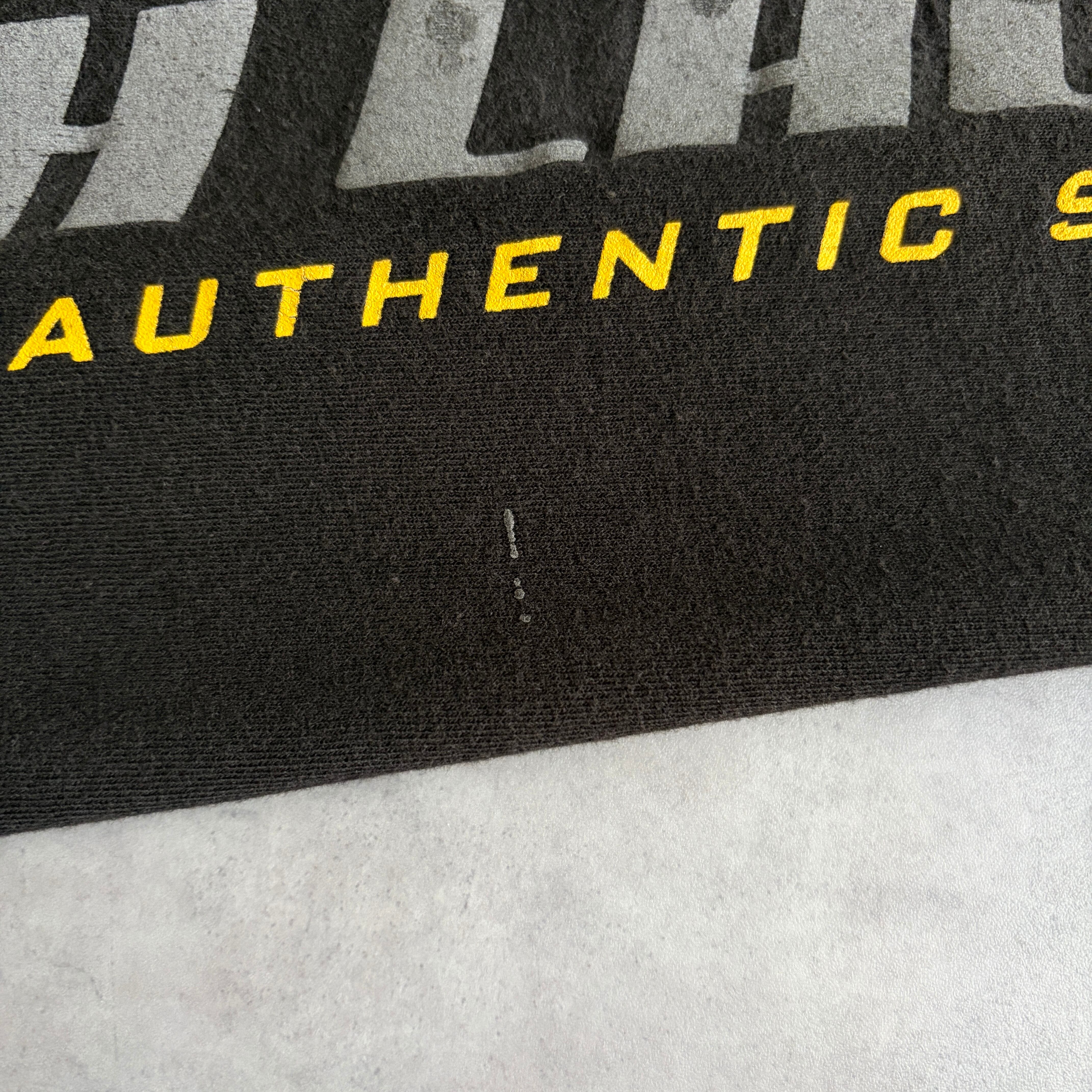 袖はダメージ、フロントと背面にはシミ、アームプリントとボディに液だれ(おそらくリフレクター)があります。