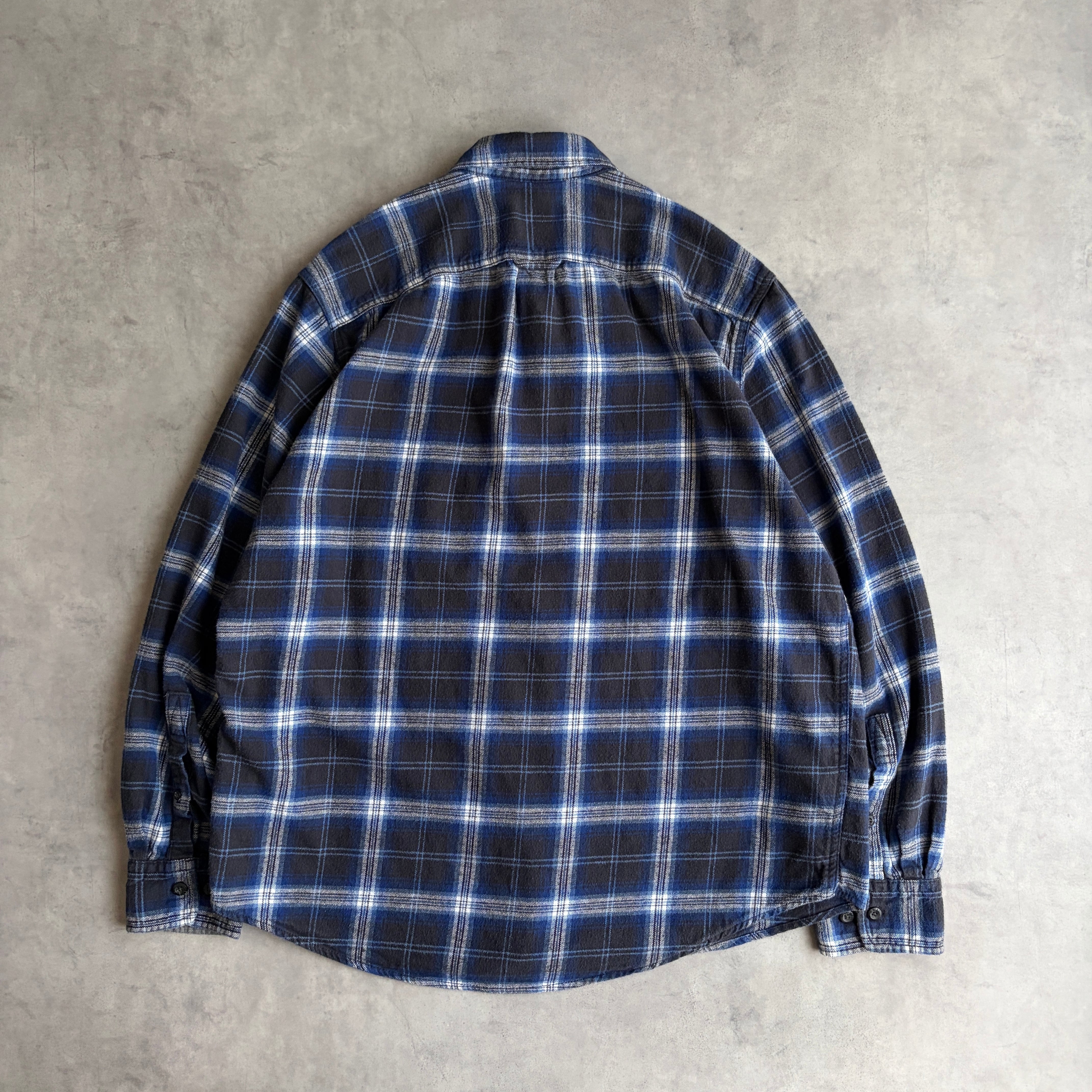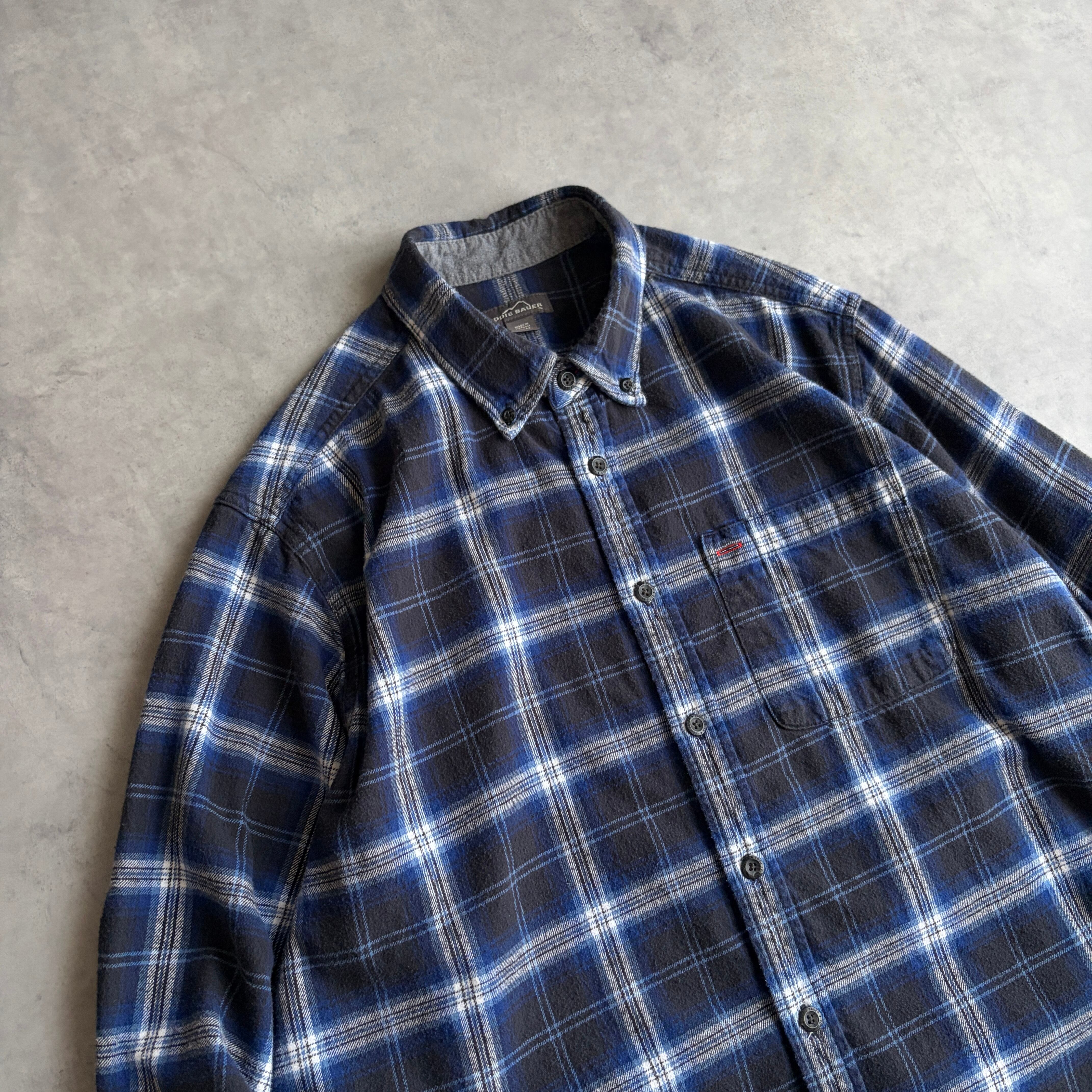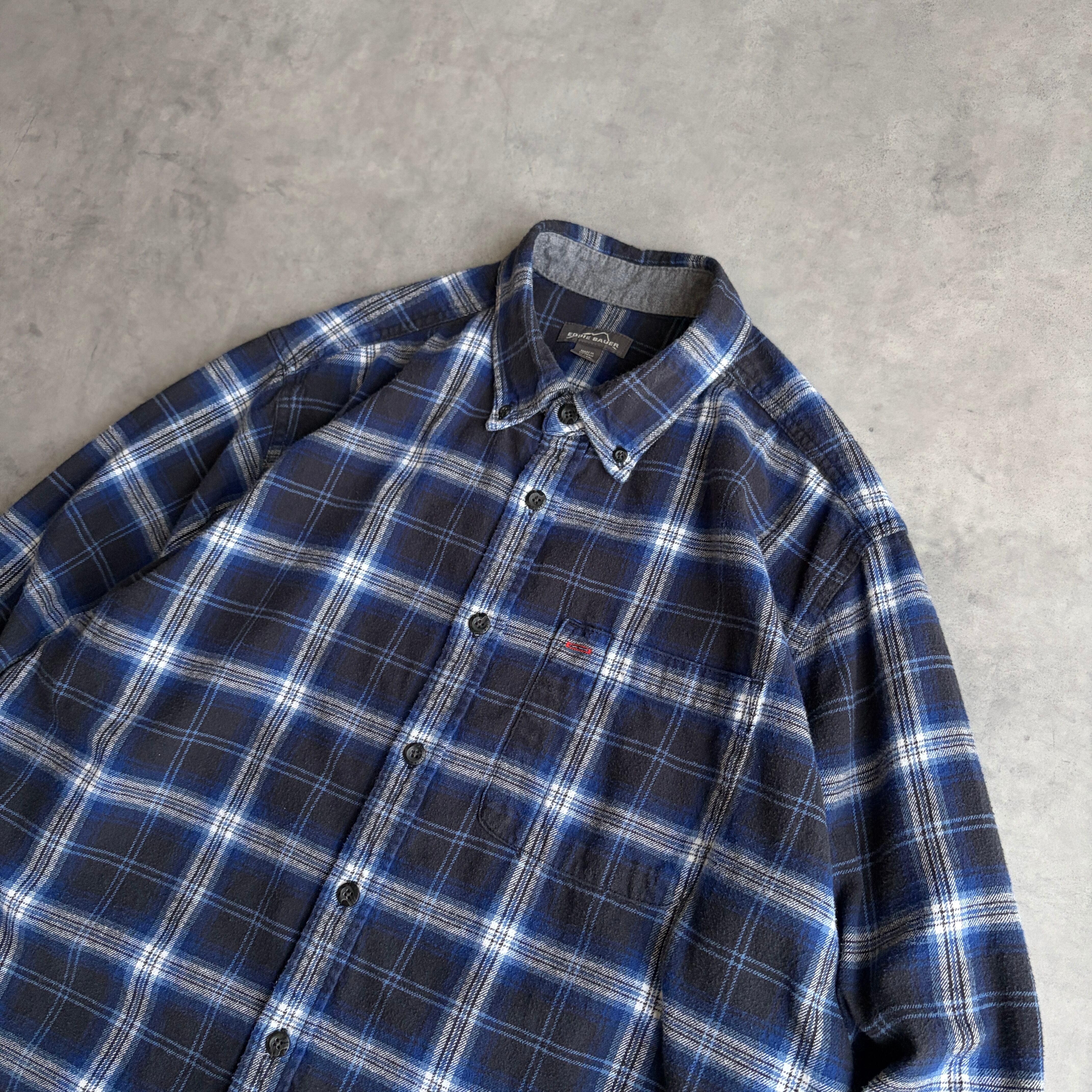 Eddie Bauer/エディーバウアー/長袖シャツ/BD/ボタンダウン/フランネル生地/オンブレチェック/格子柄/ブラックネイビー/黒紺/jmaple