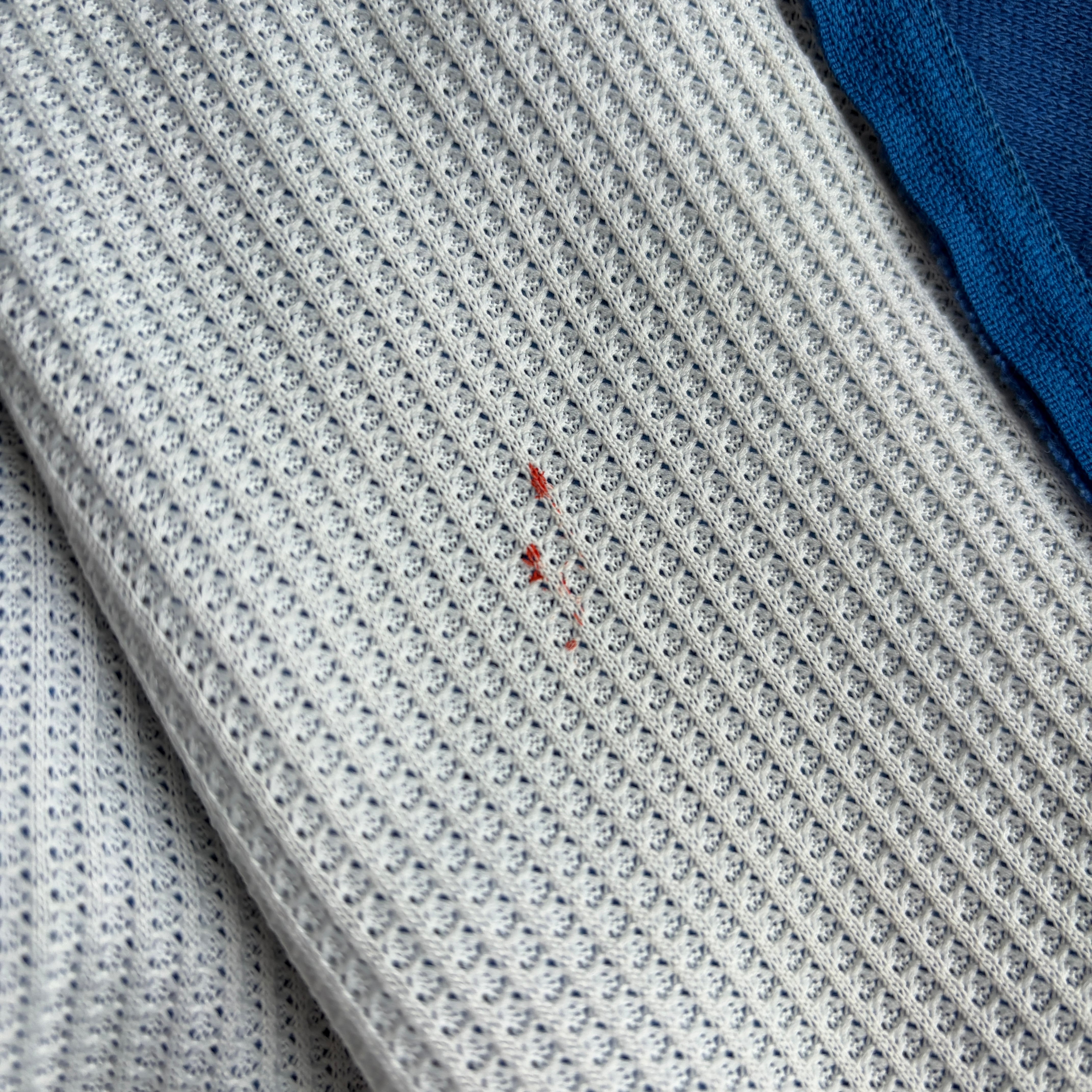 袖にシミとダメージ、裏地にペンキ汚れがあります。