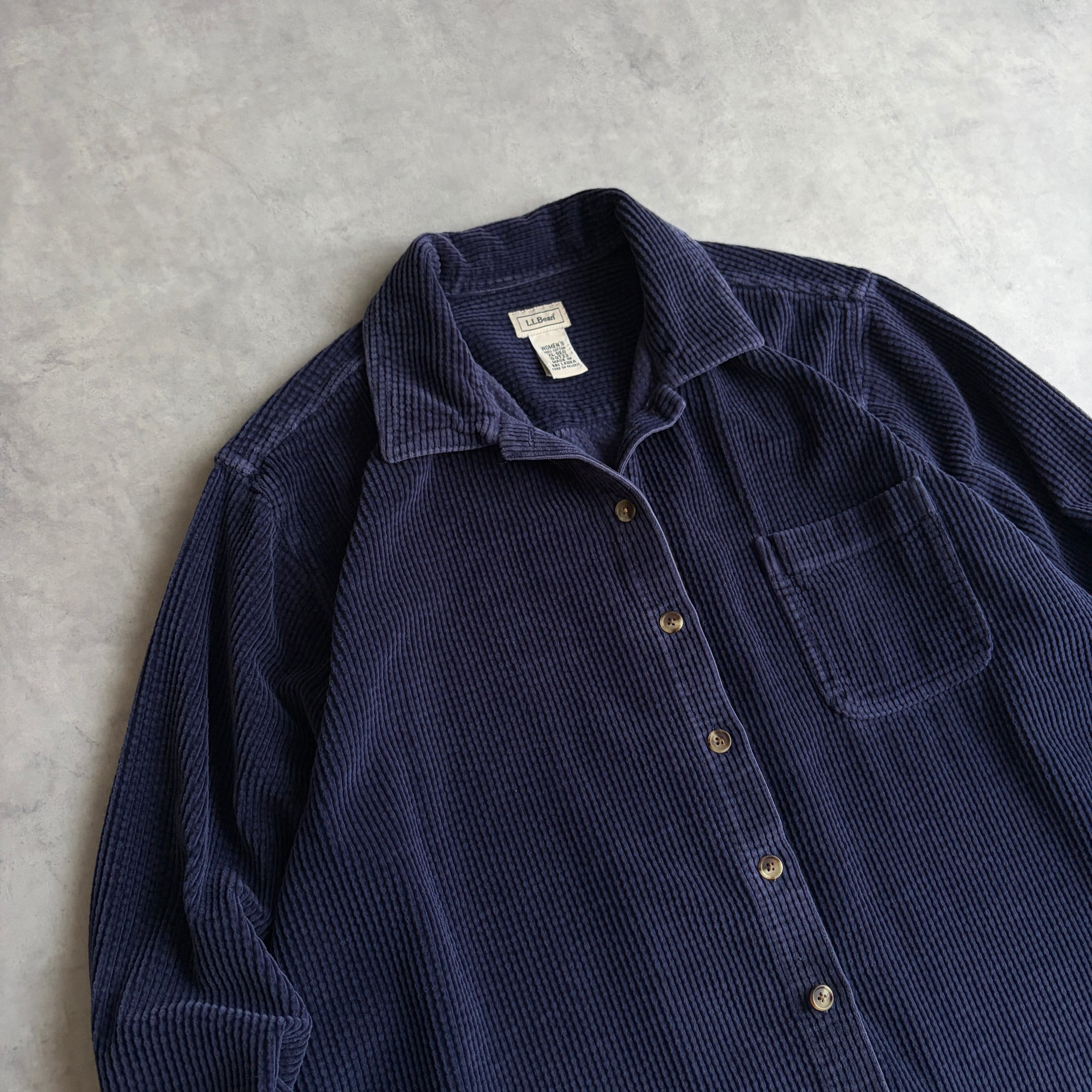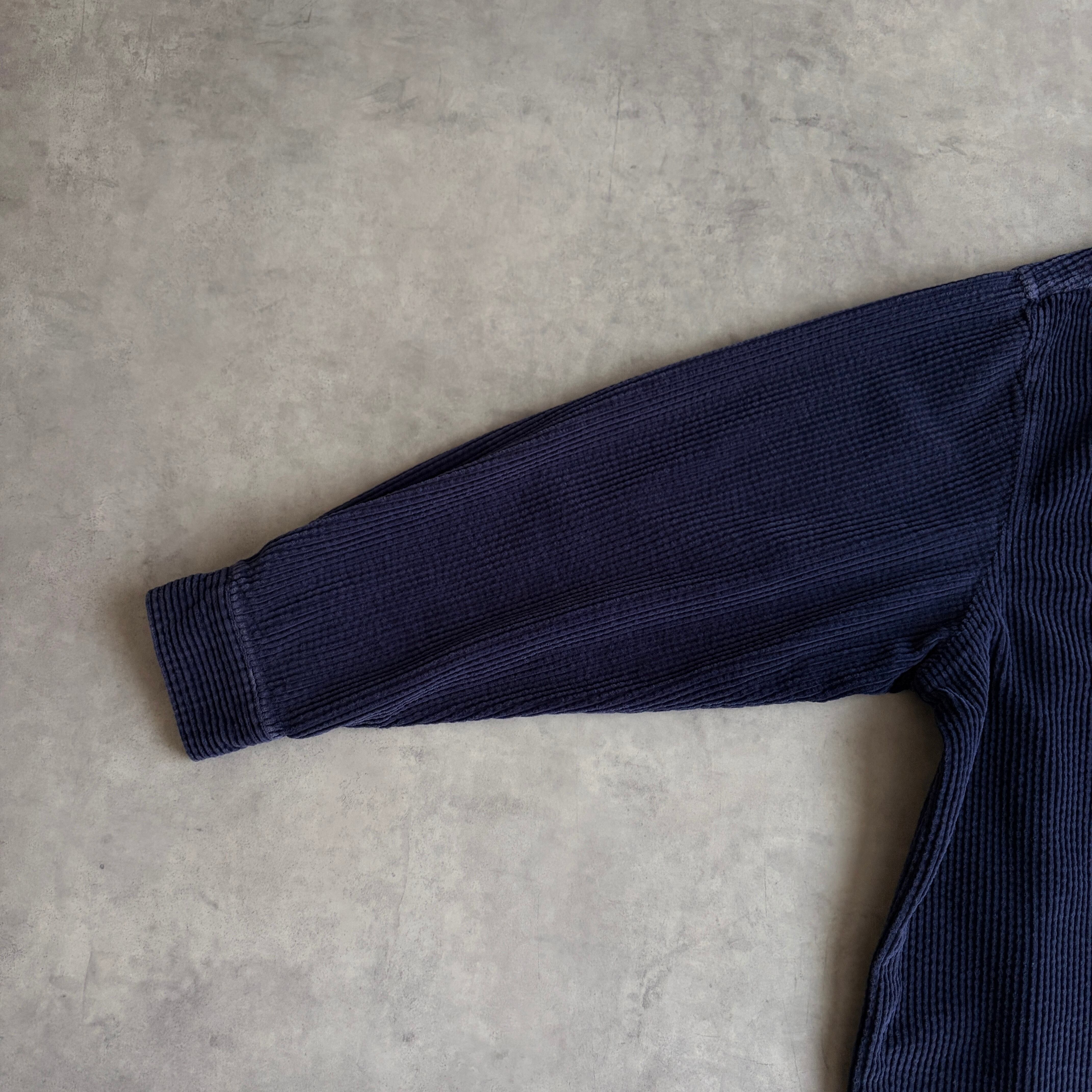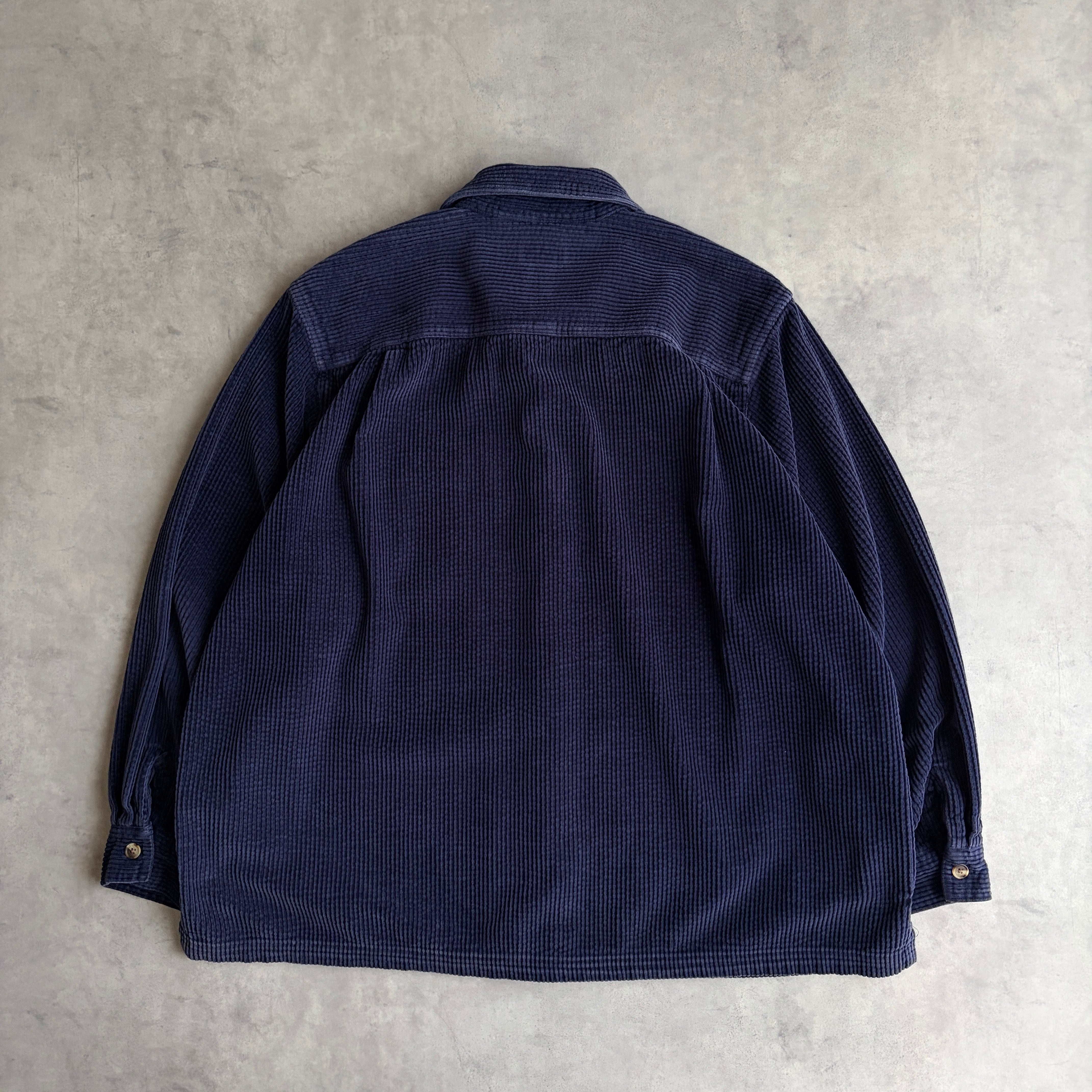 使いやすいネイビーカラー、凹凸感のある太畝、オープンカラーといいポイントがたくさん。