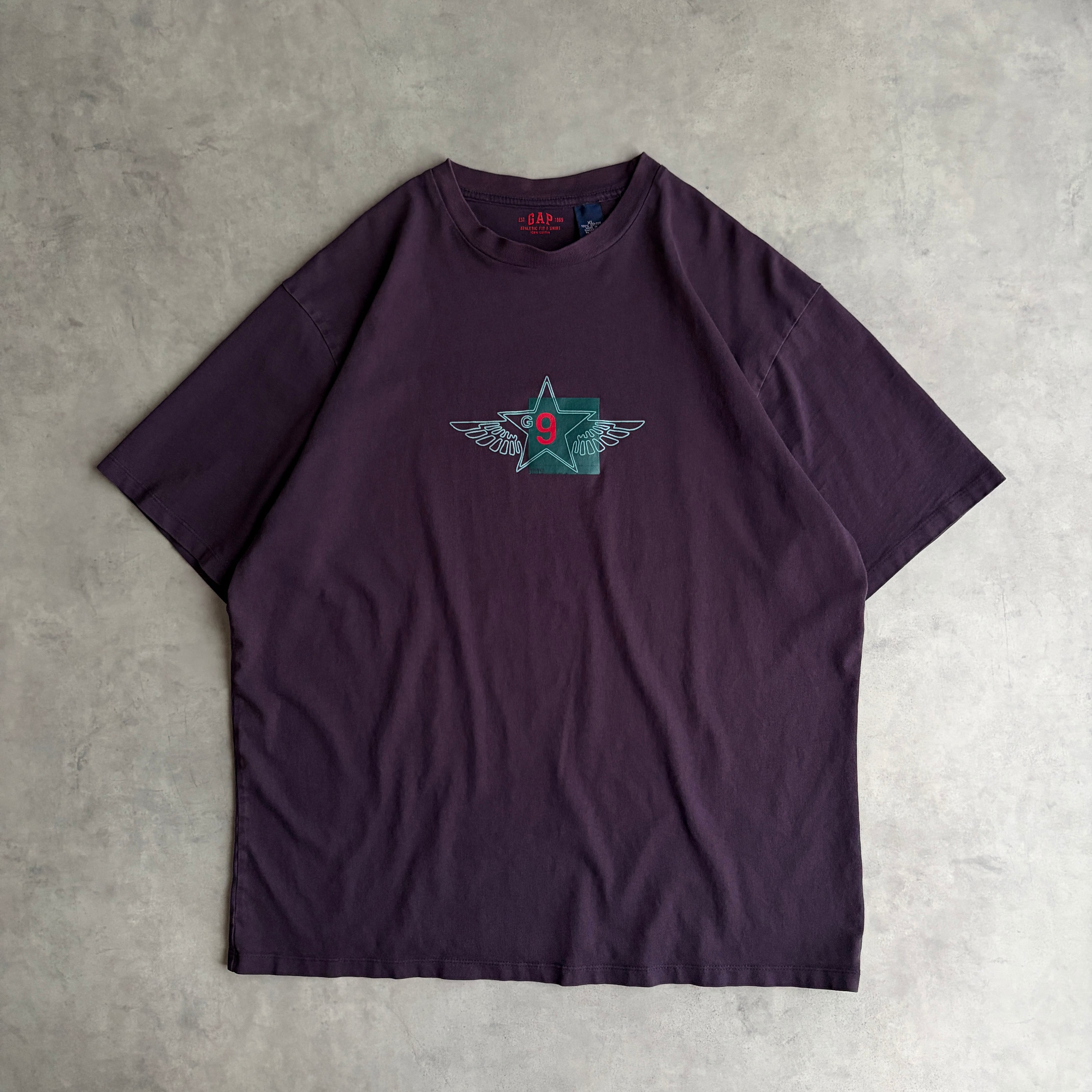 00s/OLD GAP/ギャップ/プリント半袖Tシャツ/エンブレム/ウイング/翼/9/センターロゴ/茄子紺/ナス紺/ネイビー/jmaple