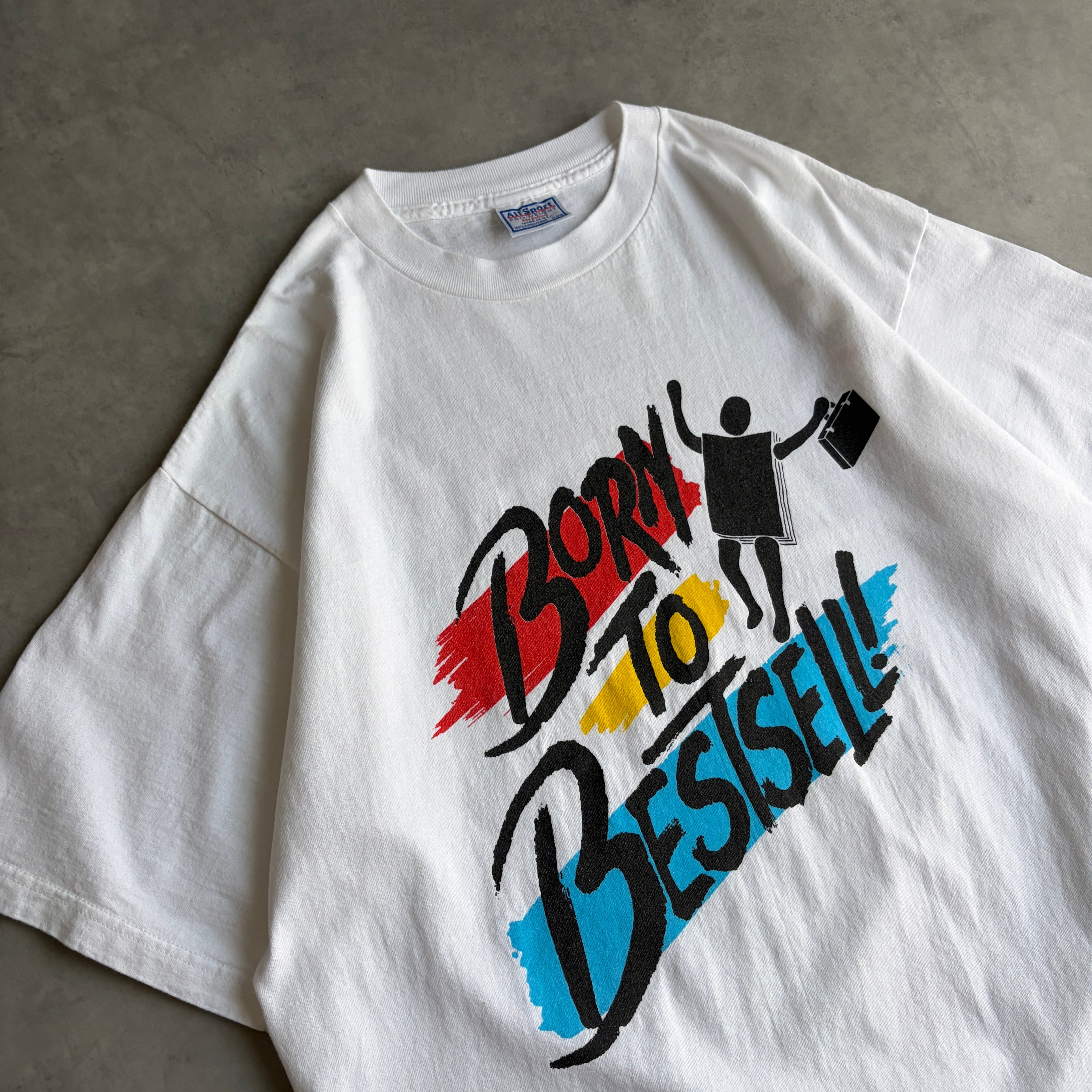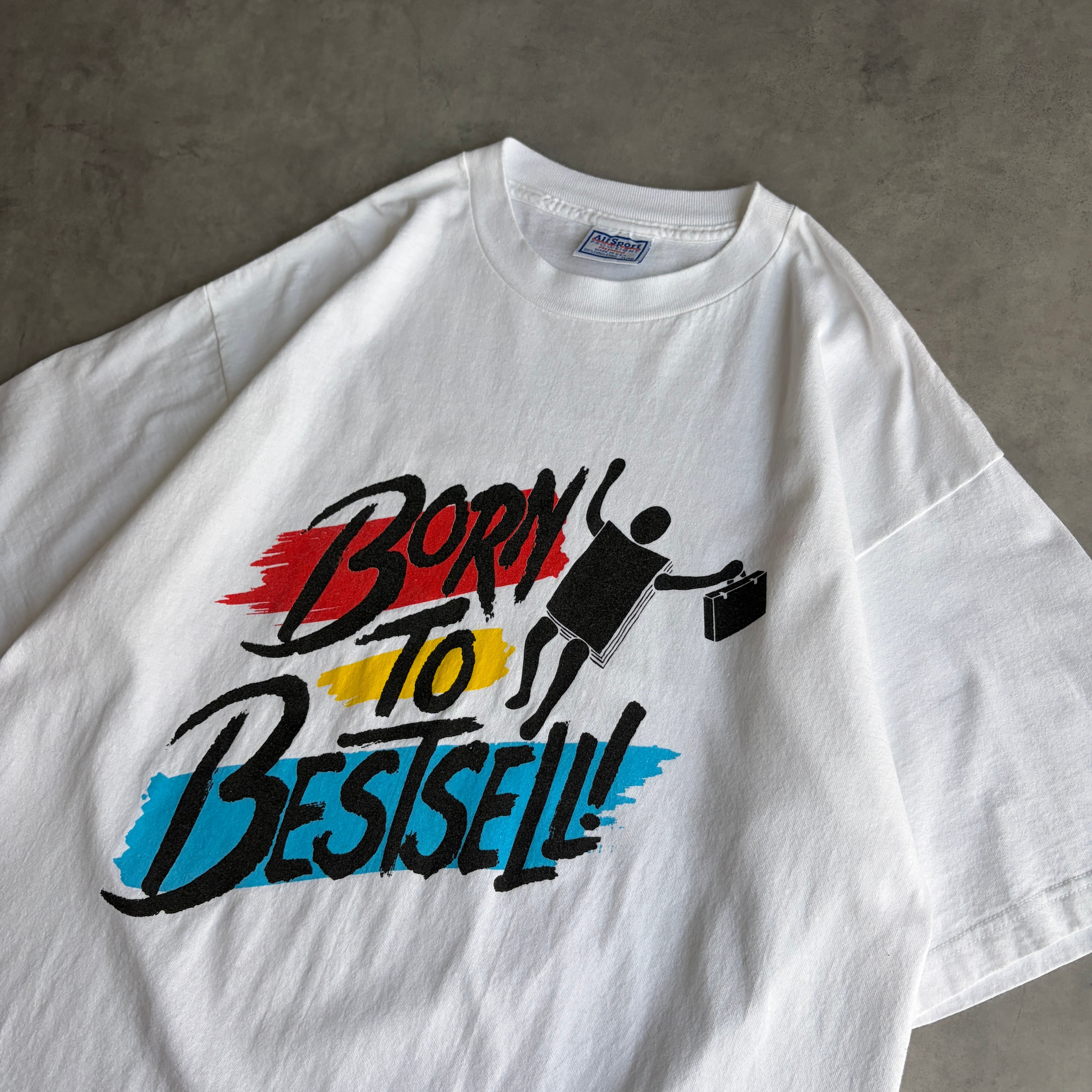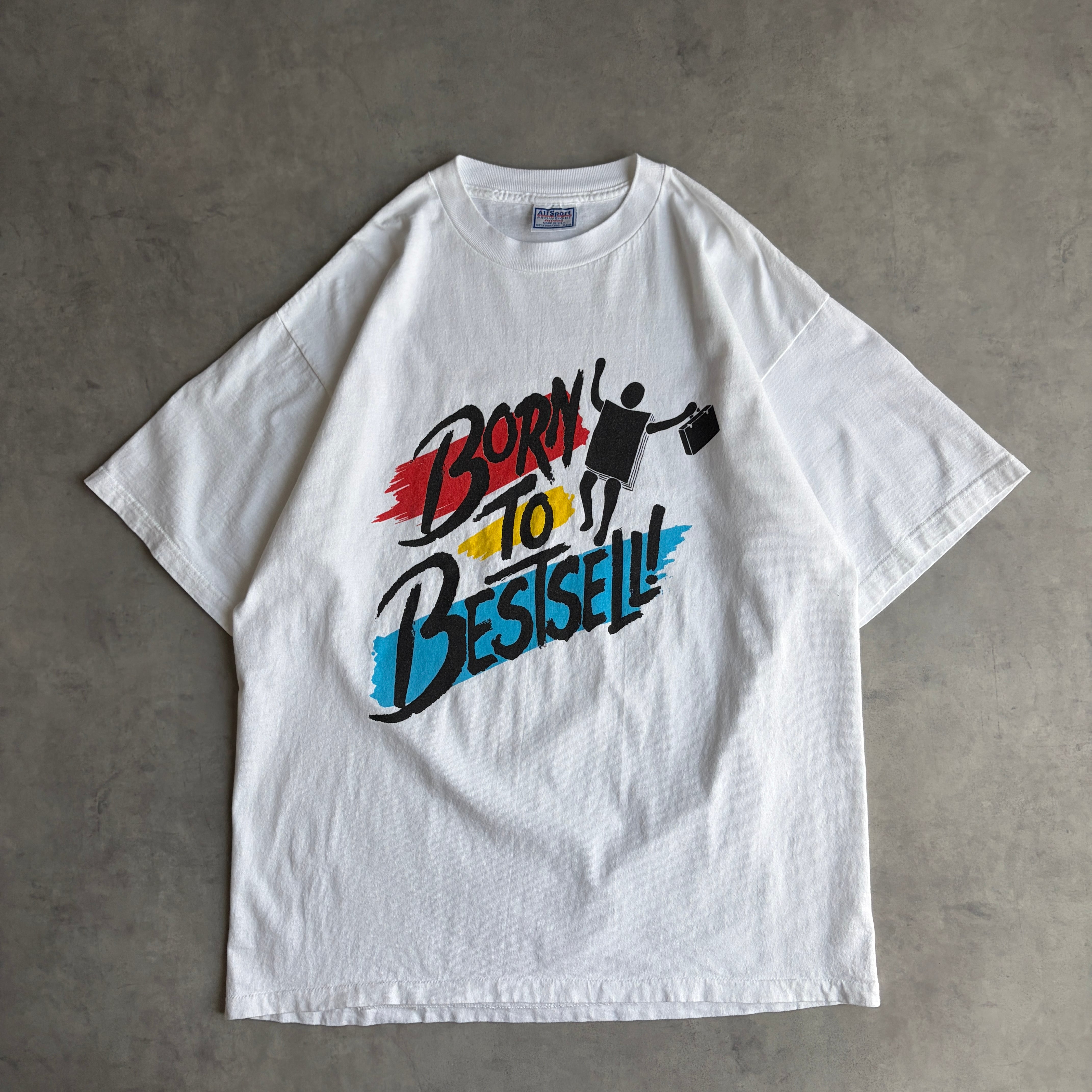 フロントには"Born to Bestsell!"「ベストセラーになるために生まれた」というメッセージ、背面には、ブラックジョークを混ぜた英文がプリントされています。