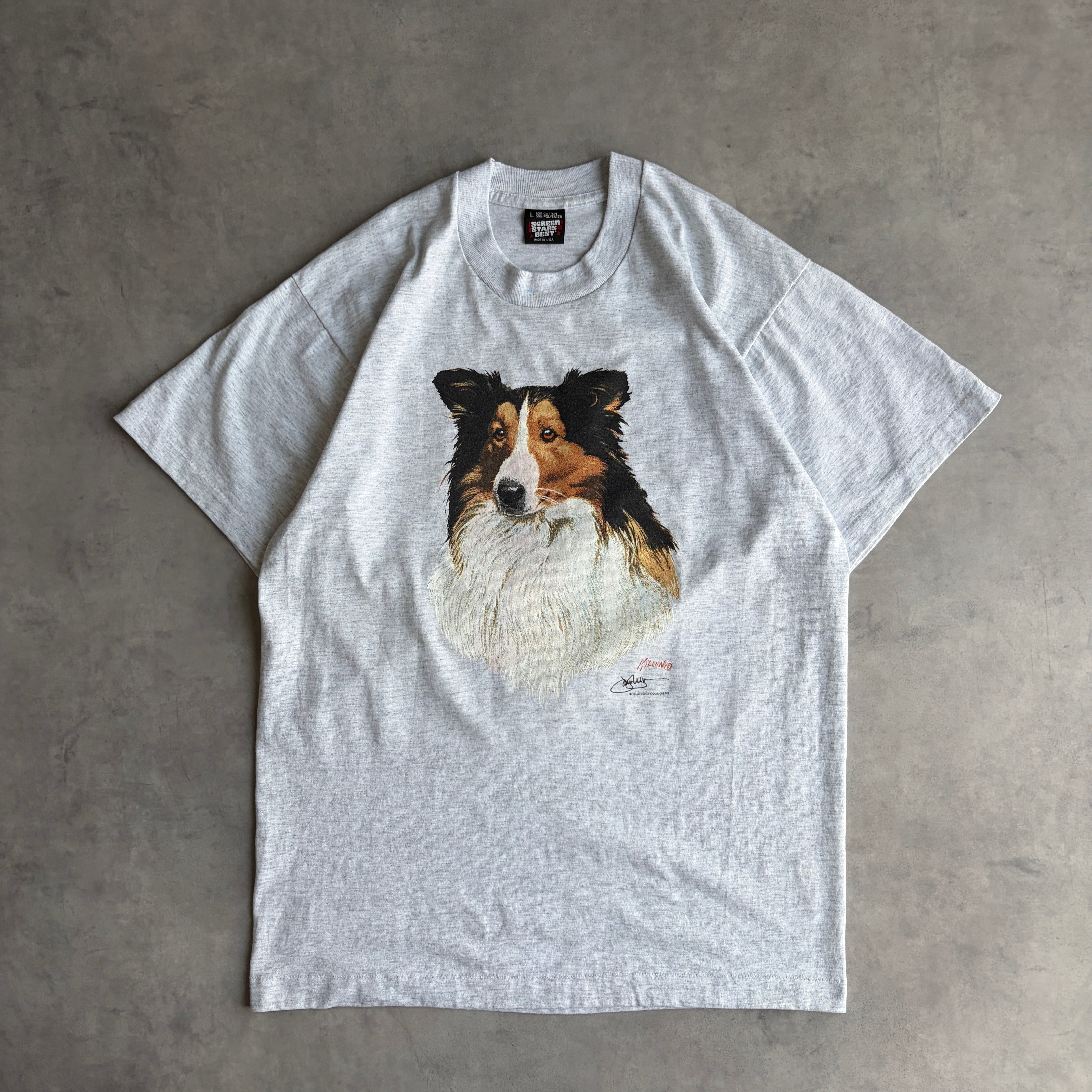 90s / FRUIT OF THE LOOM / Dog Art Print T-Shirt / Made in USA