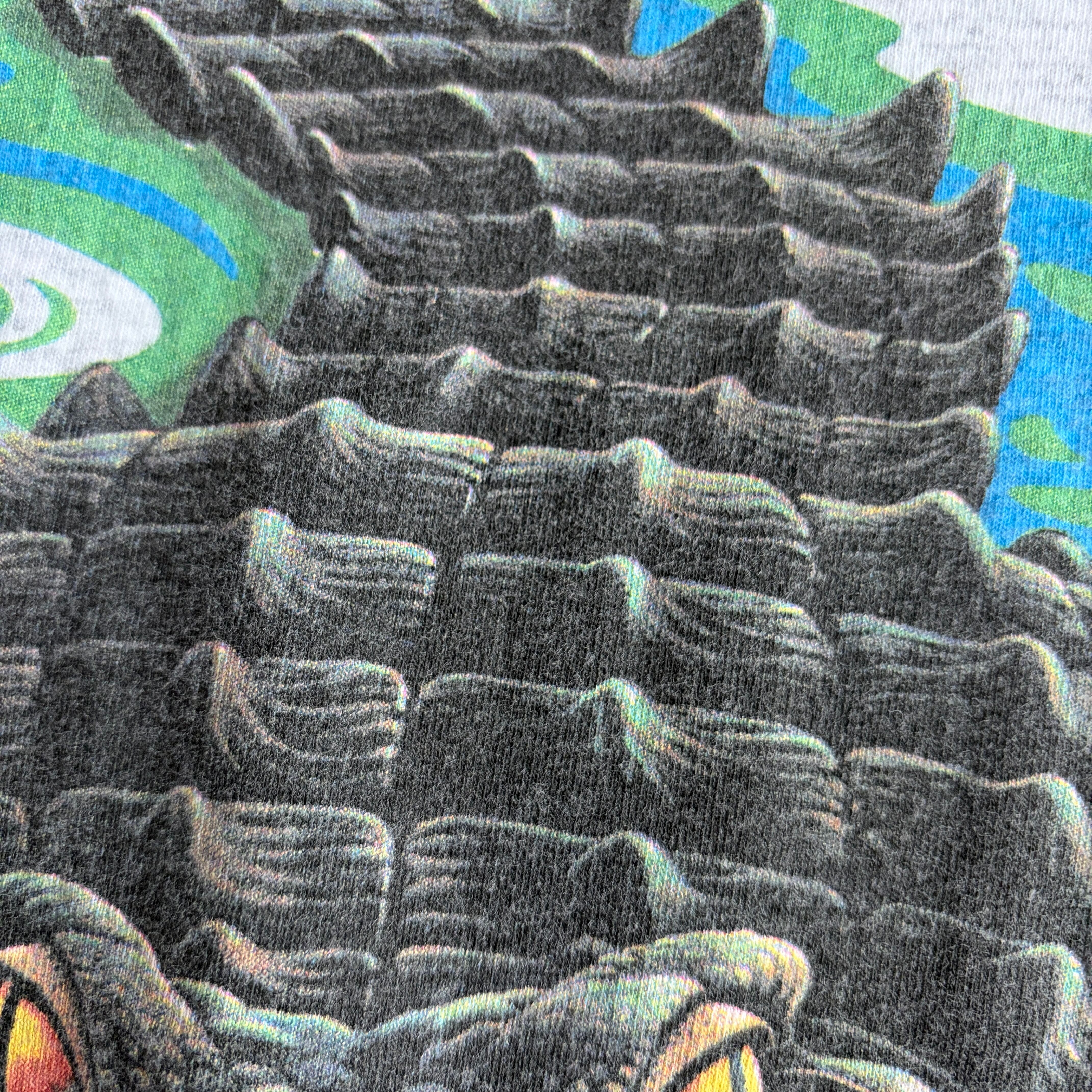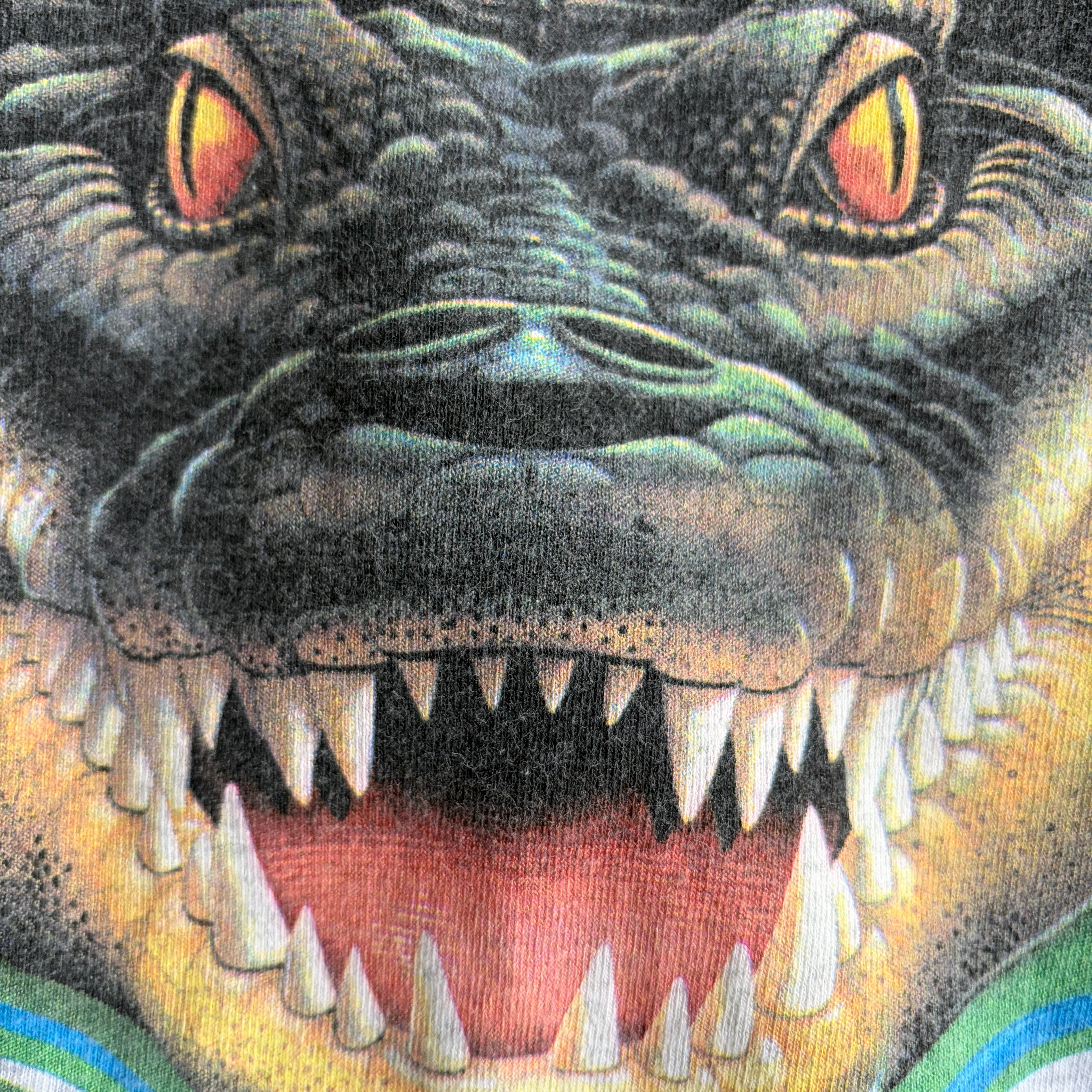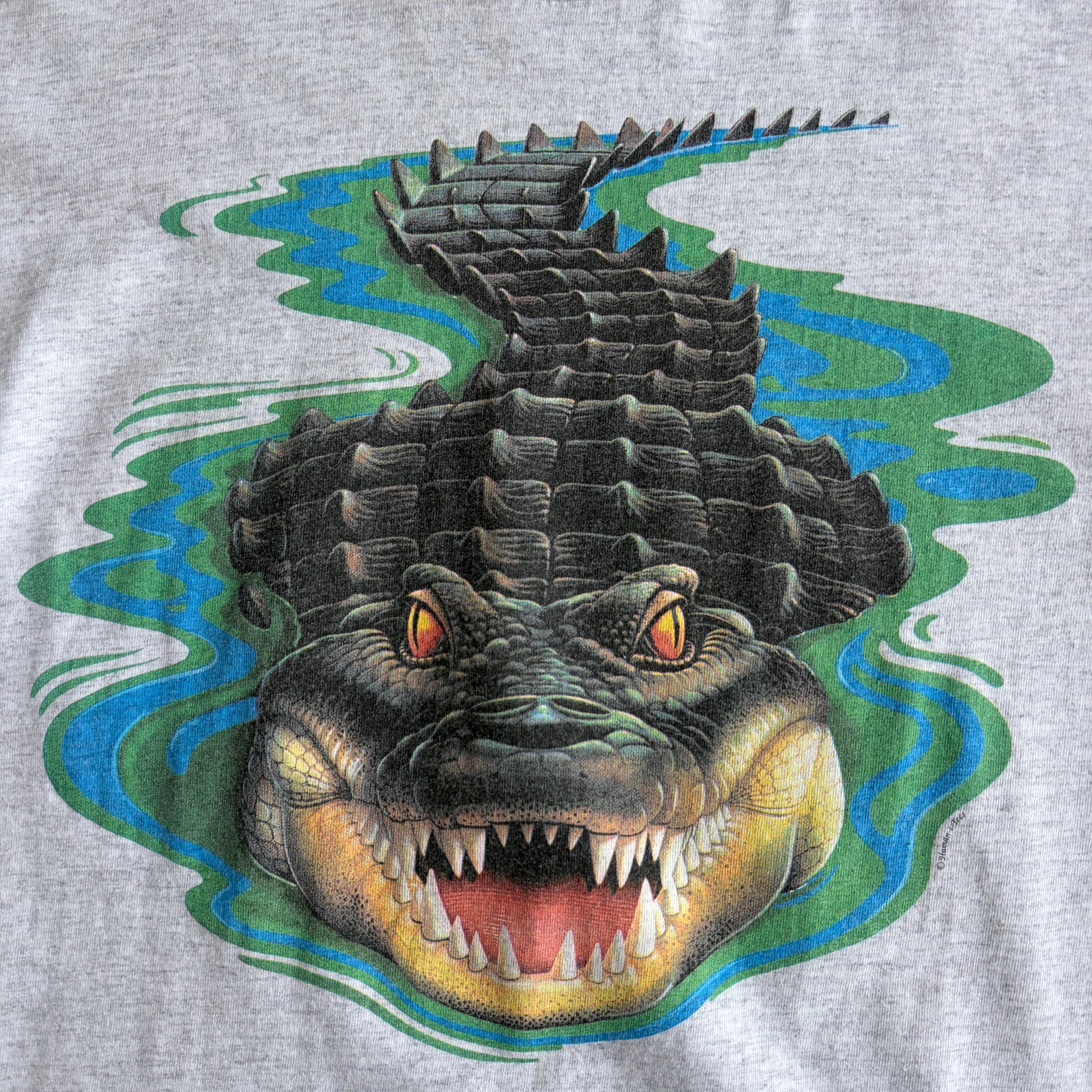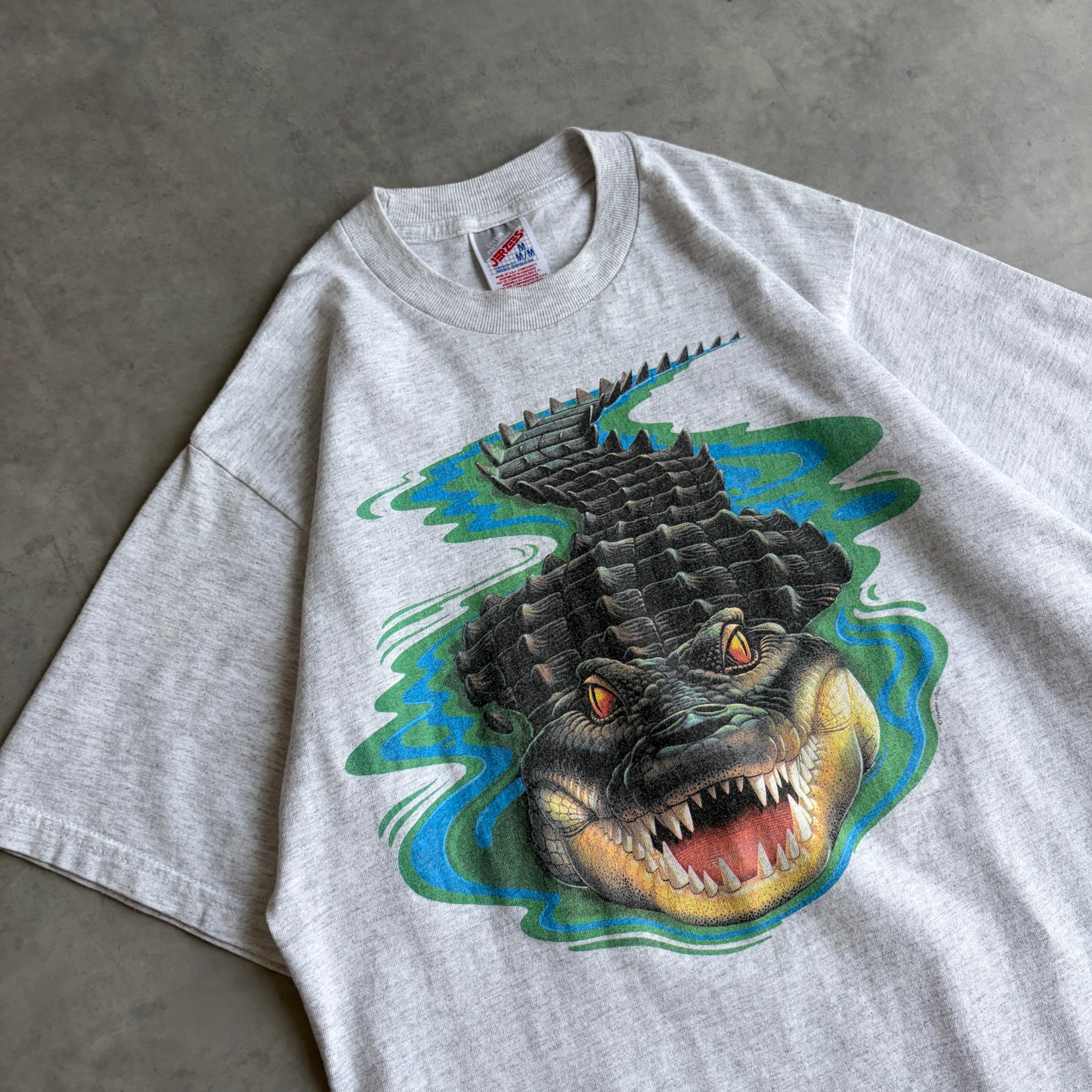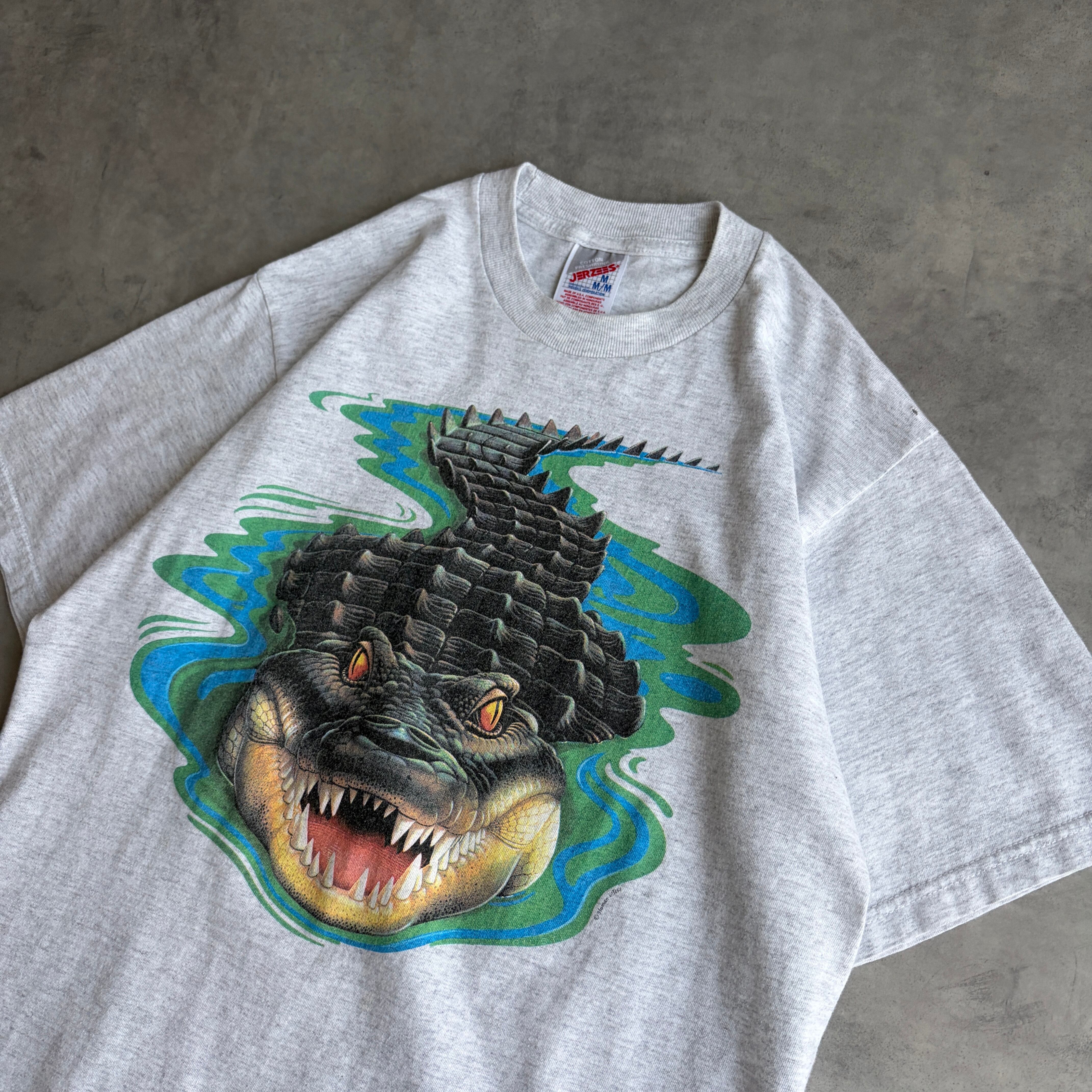 90s〜00s/JERZEES/ジャージーズ/半袖Tシャツ/アニマルプリント/ワニ/ビッグプリント/インパクト/杢グレー/jmaple