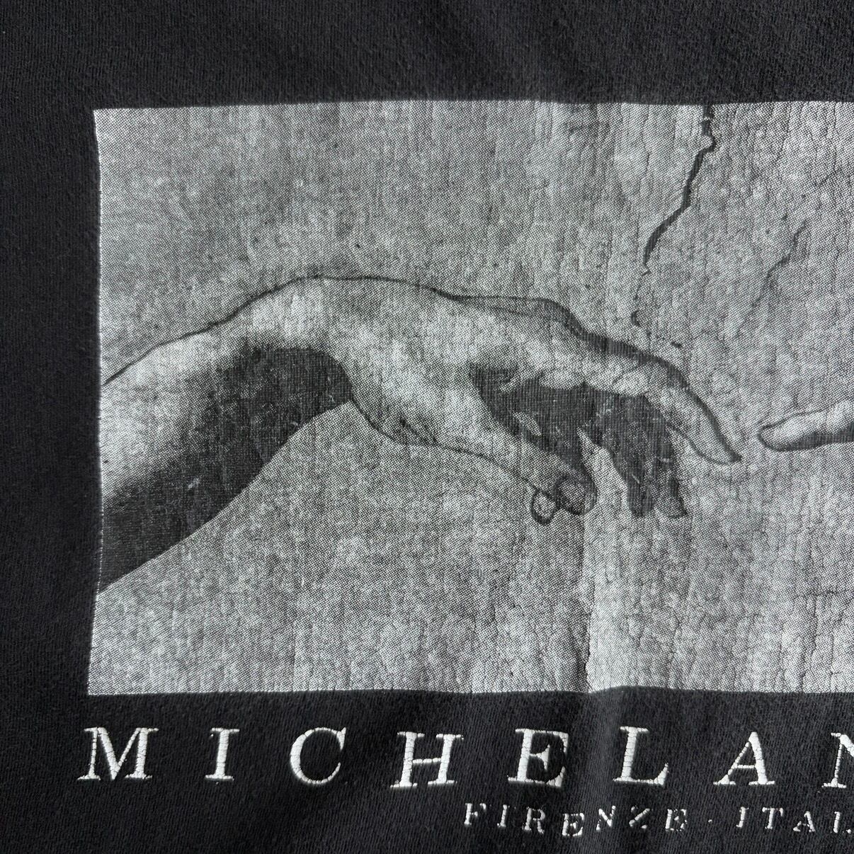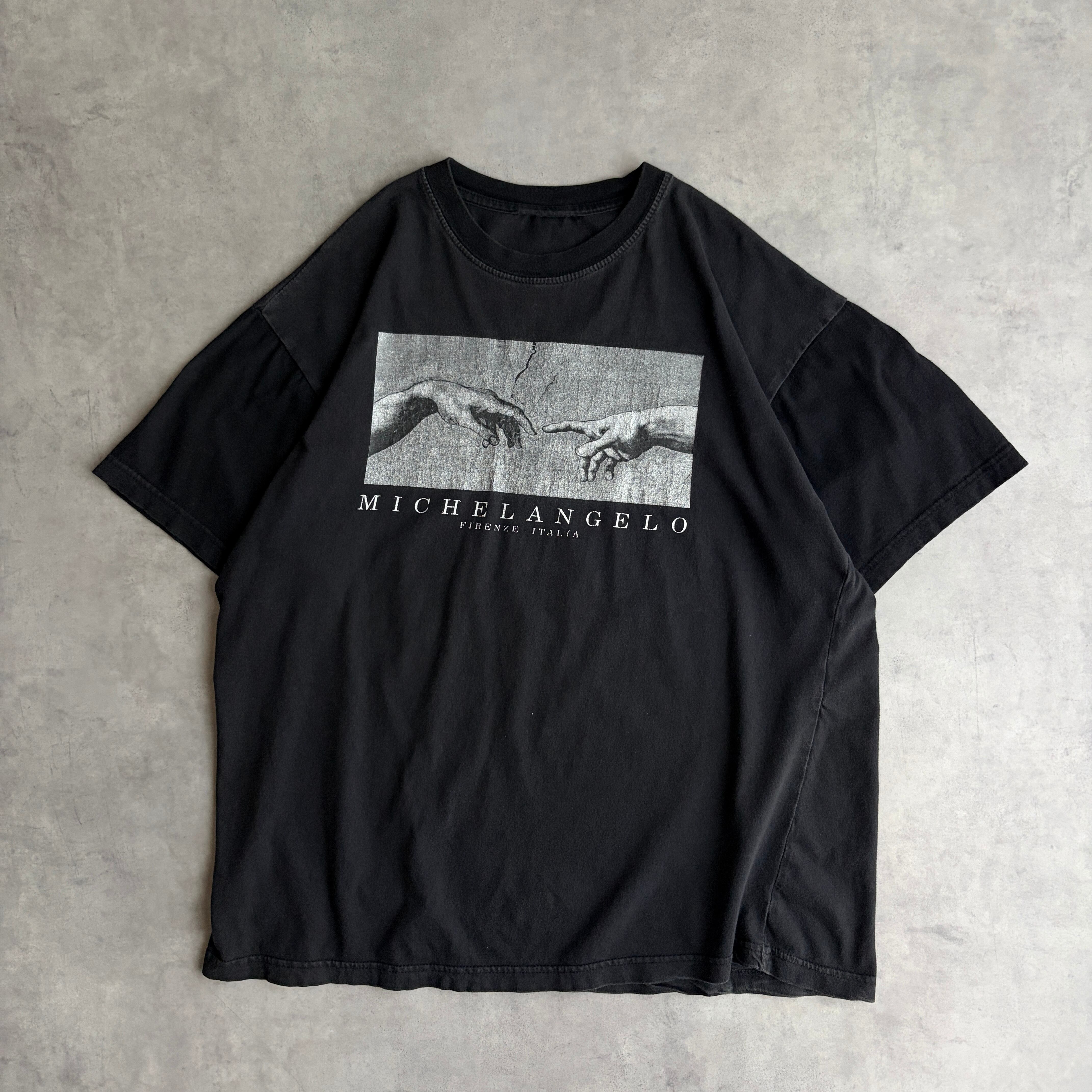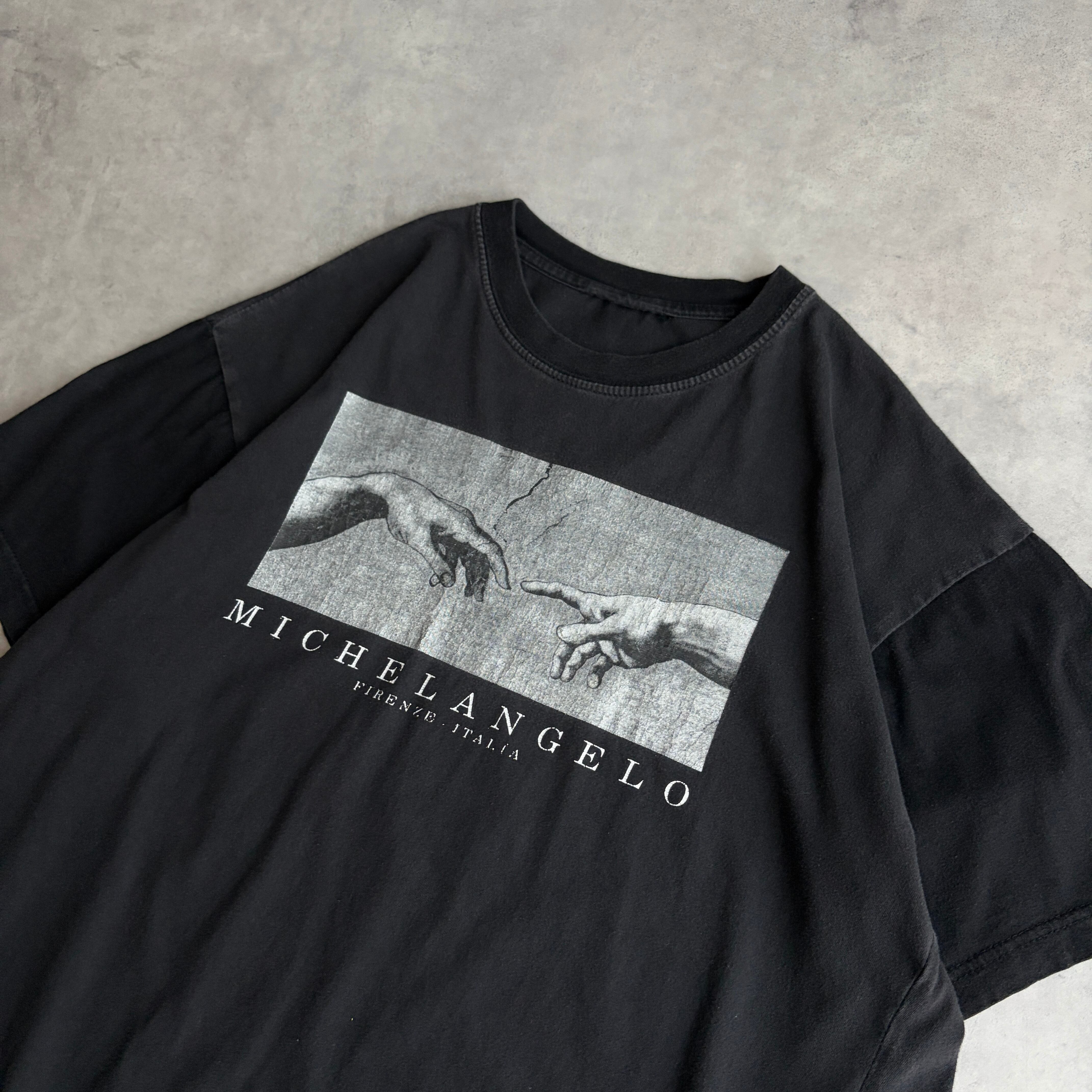 00s〜/半袖Tシャツ/アートプリント/ミケランジェロ/創世記/アダム/フェード/ツートーン/ブラック/黒/jmaple
