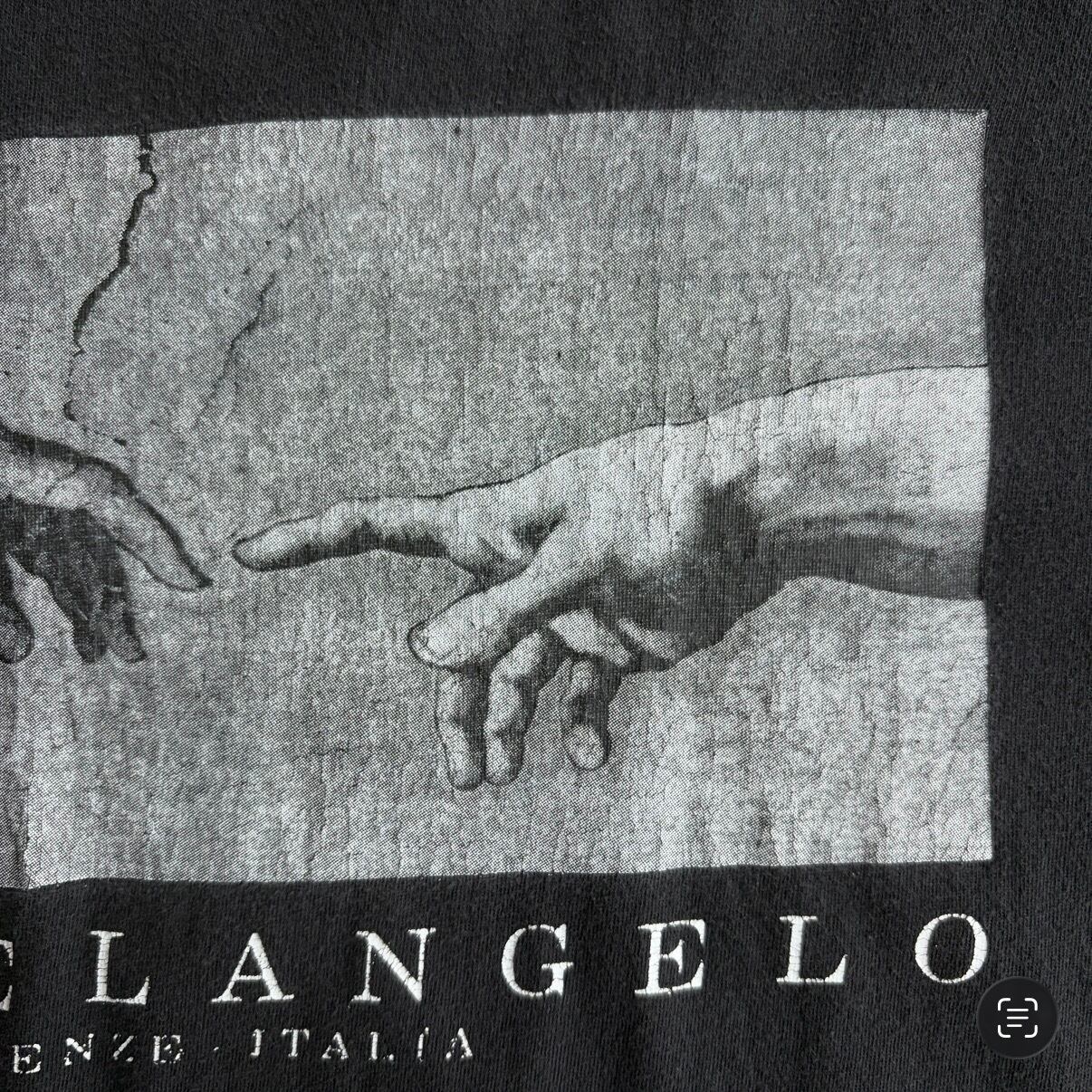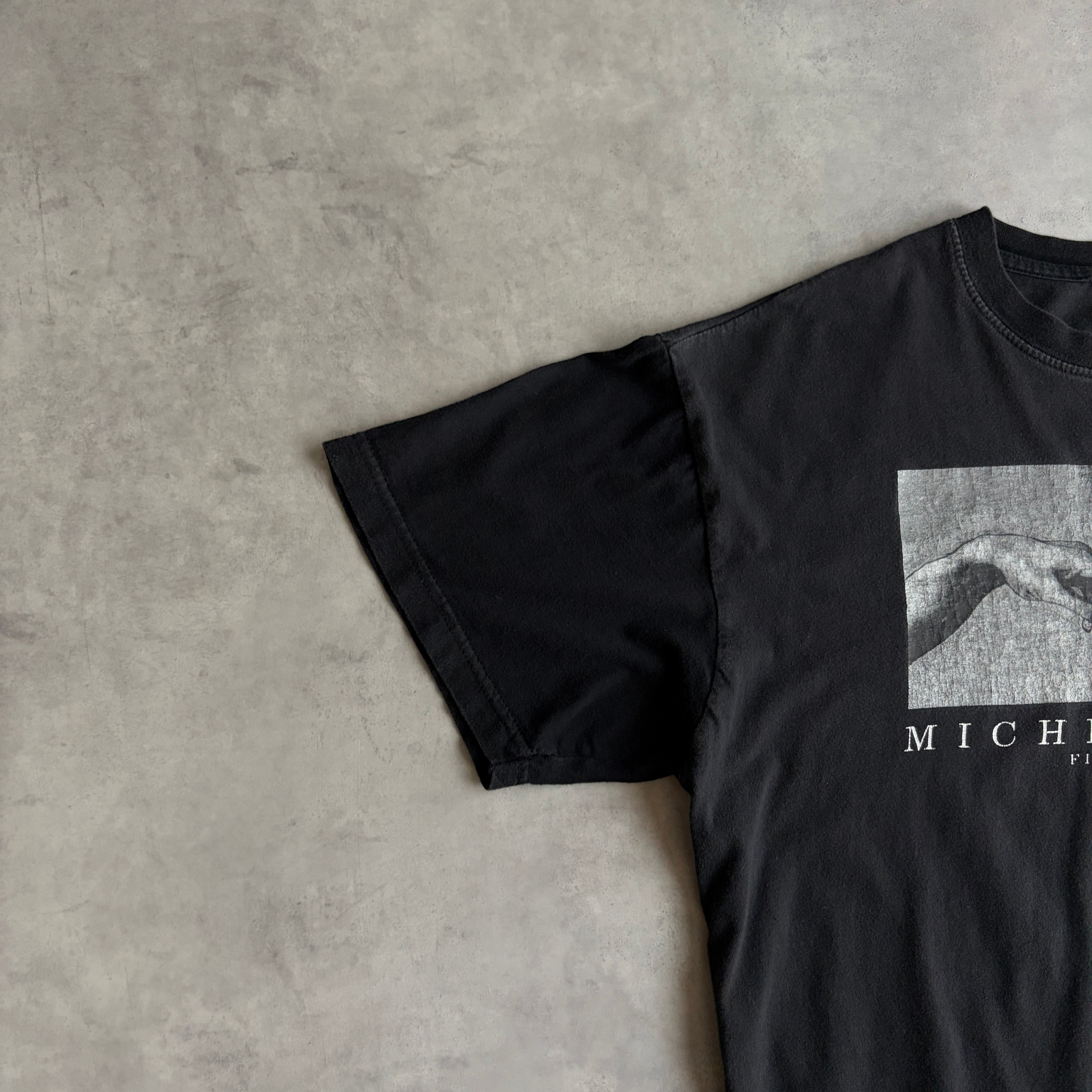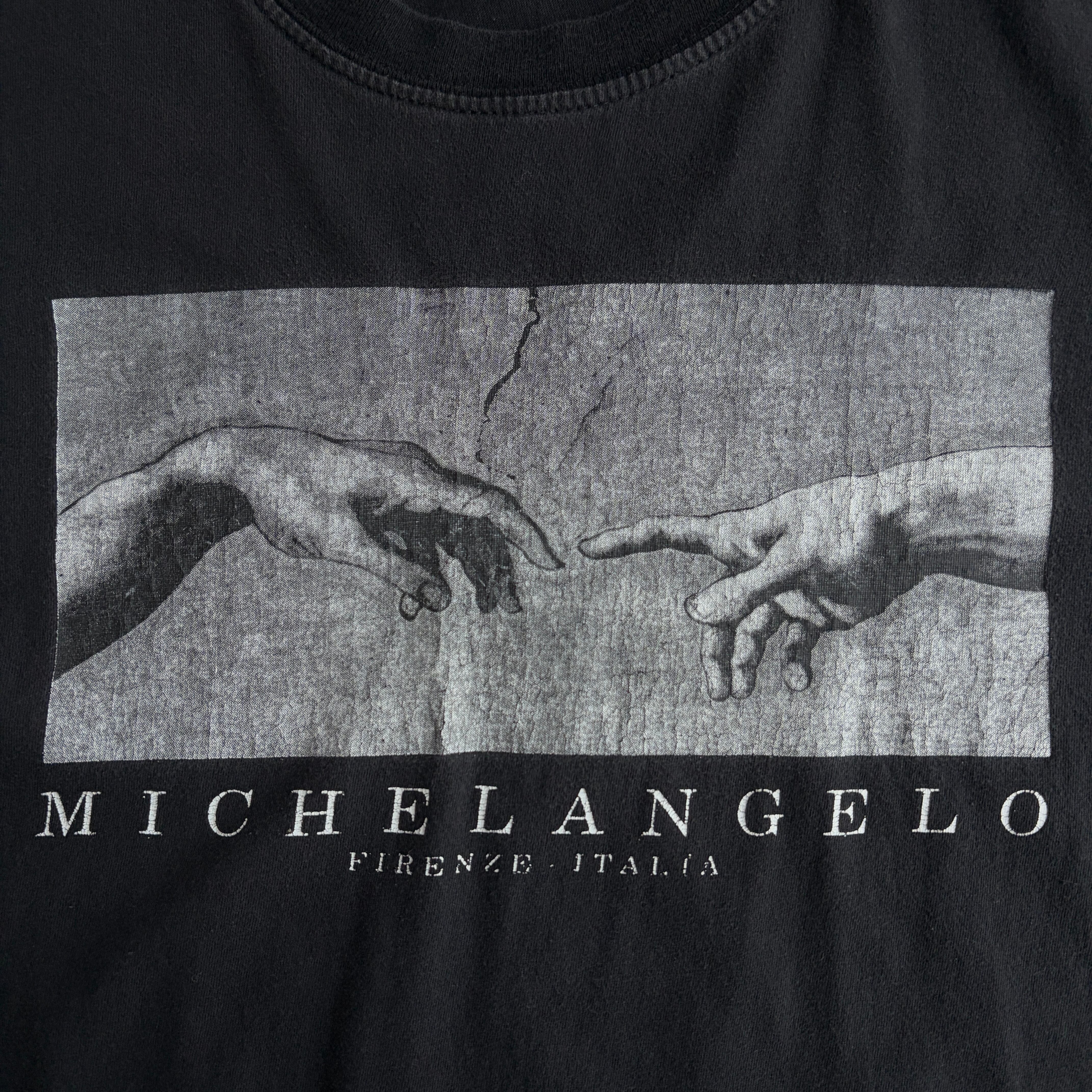 00s〜/半袖Tシャツ/アートプリント/ミケランジェロ/創世記/アダム/フェード/ツートーン/ブラック/黒/jmaple