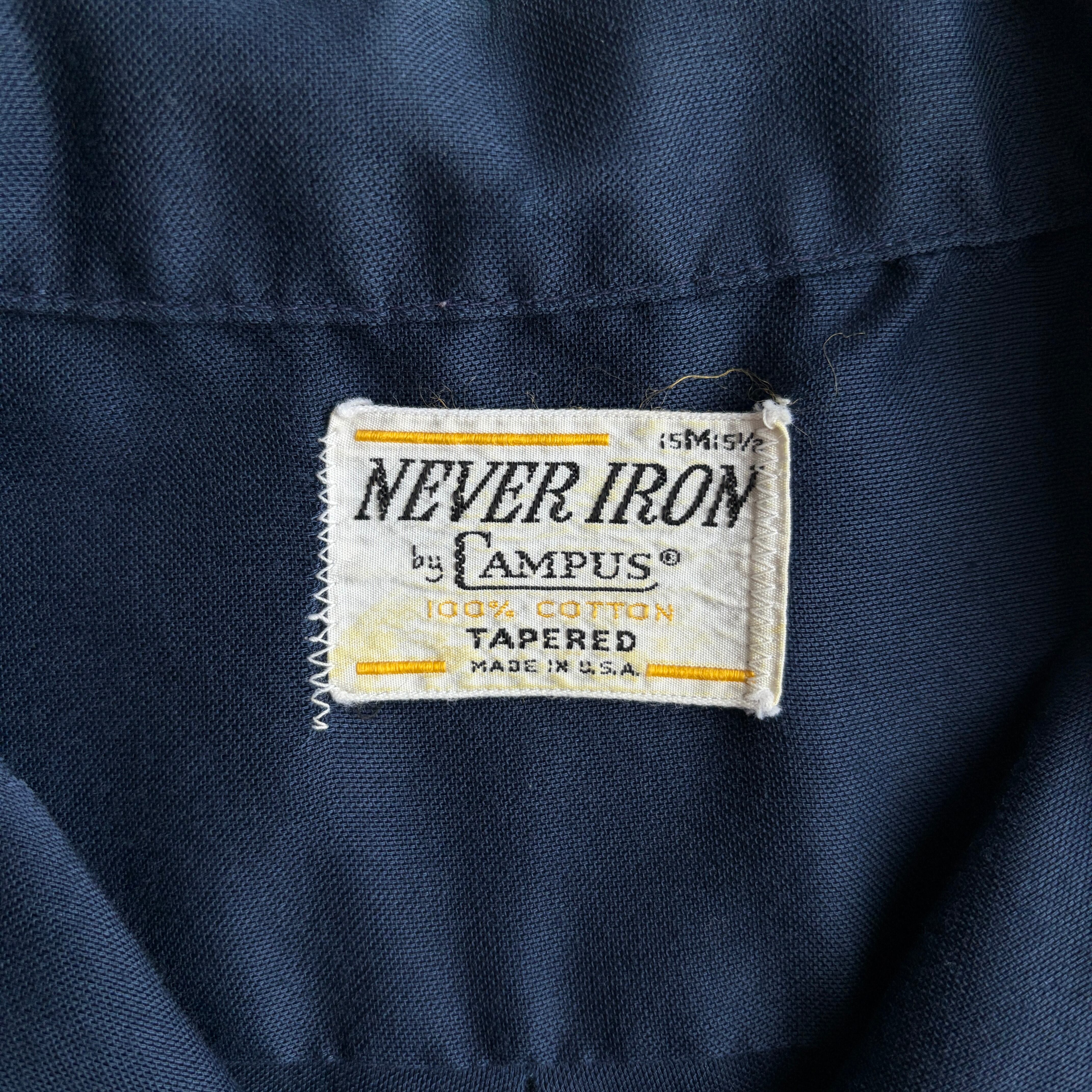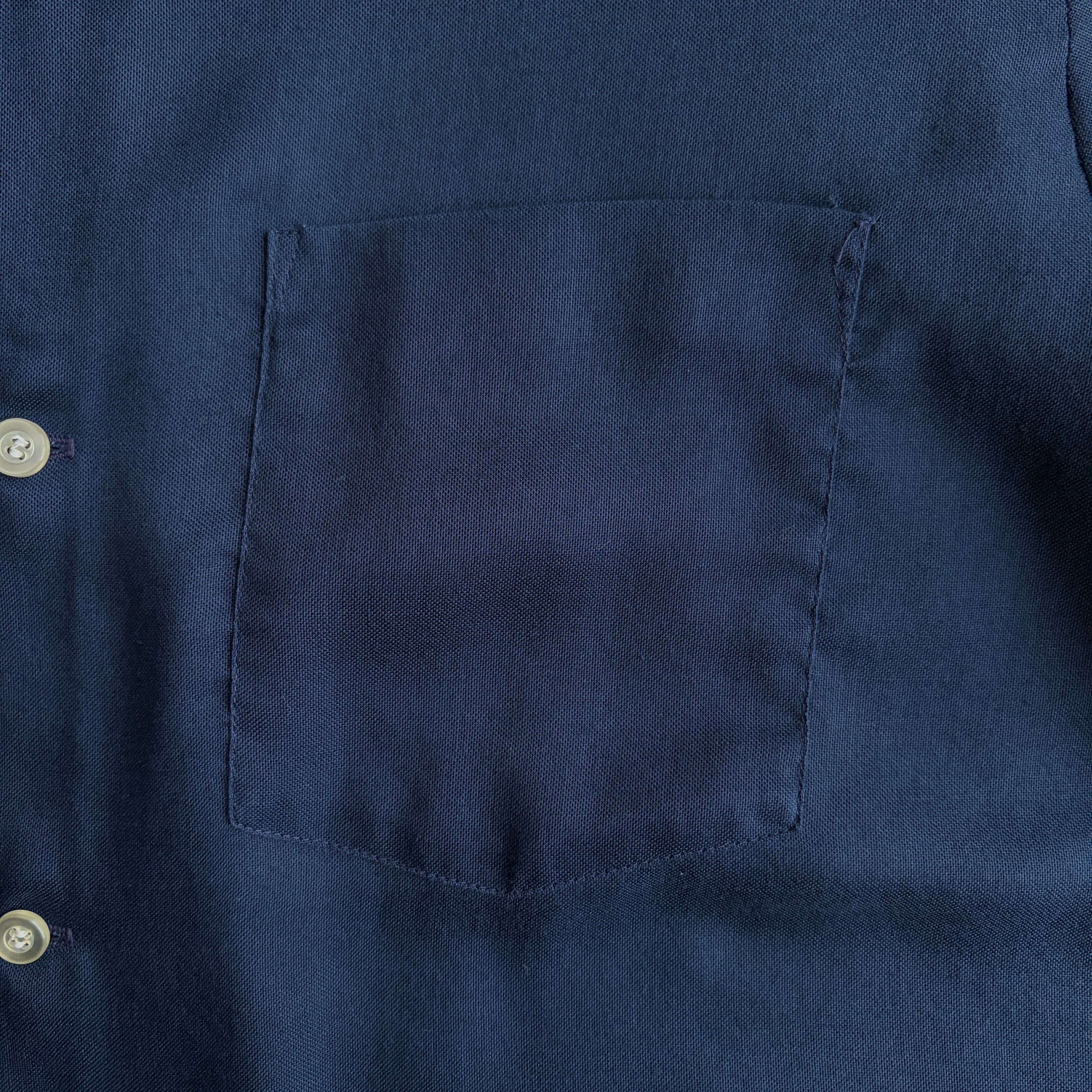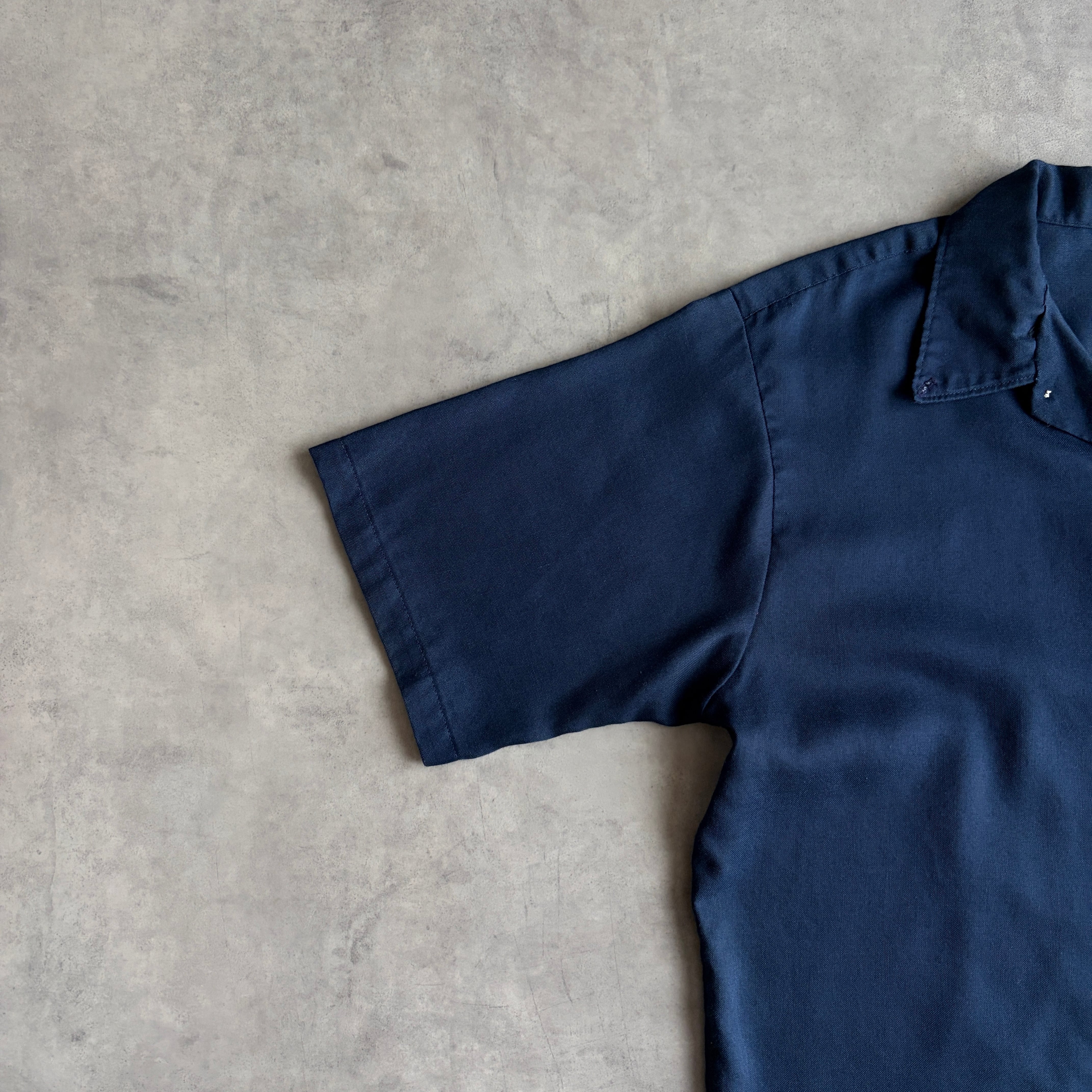 60s〜70s/CAMPUS/キャンパス/半袖シャツ/USA製/アメリカ製/ブロード生地/オープンカラー/開襟/BD/ボタンダウン/三点留め/無地/ネイビー/紺/jmaple