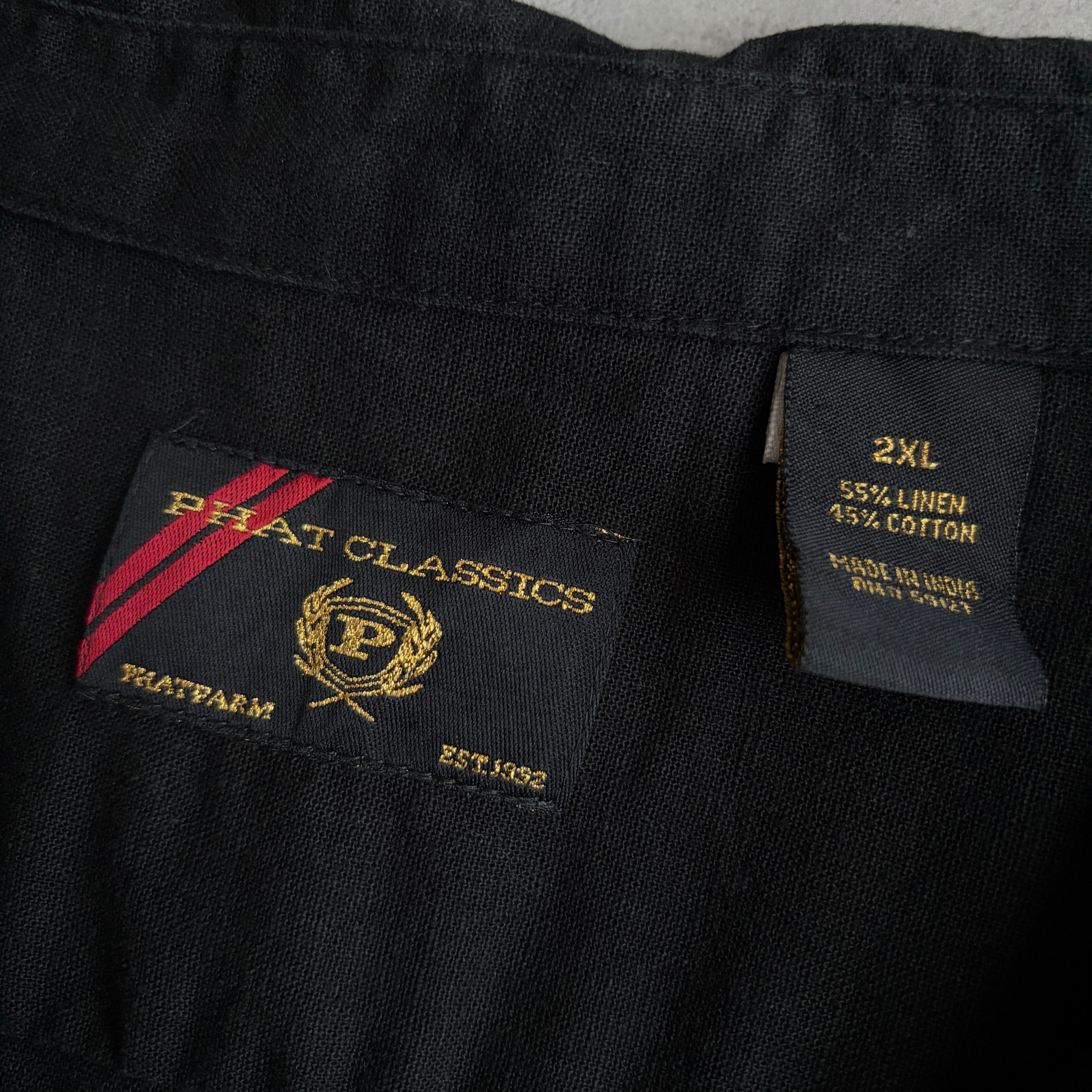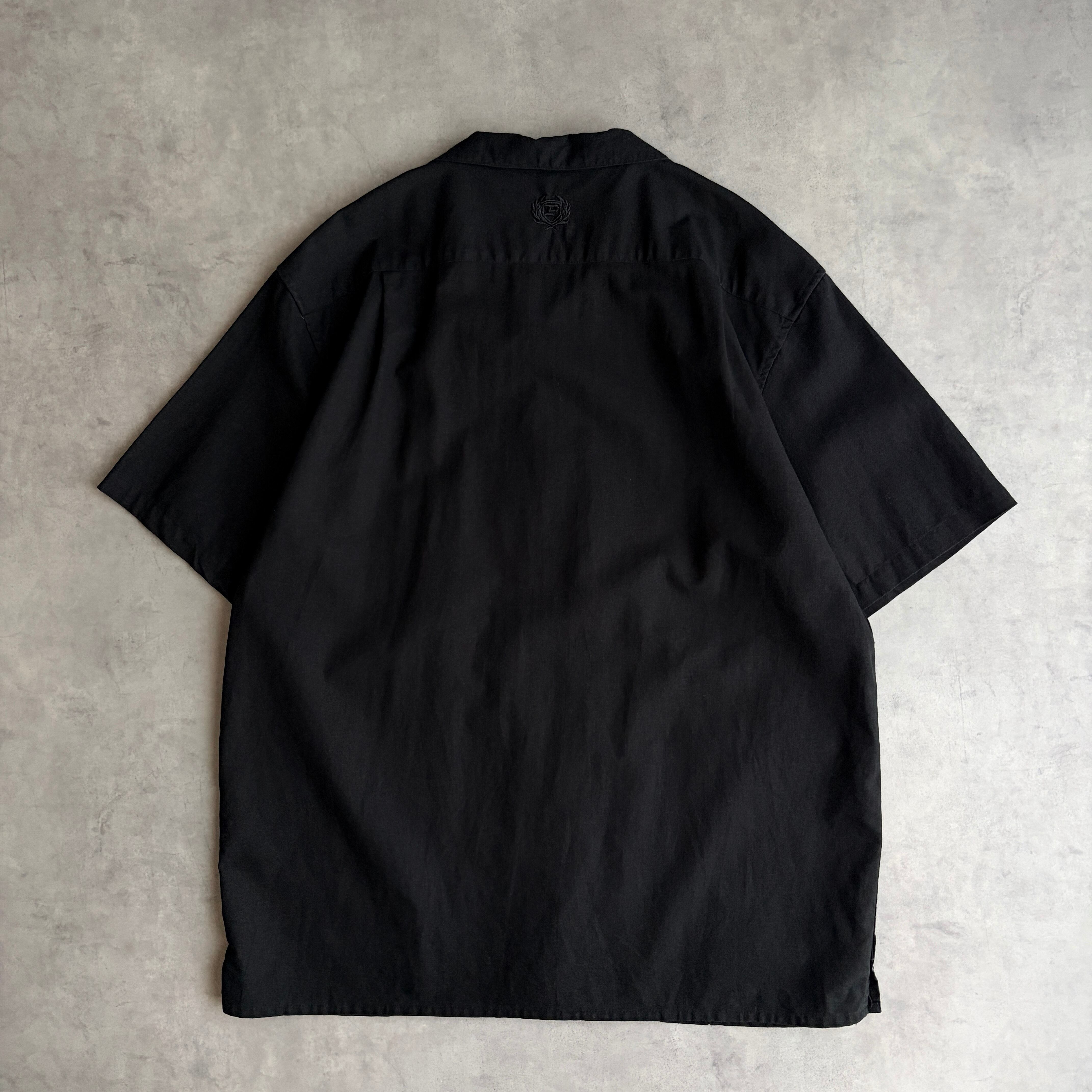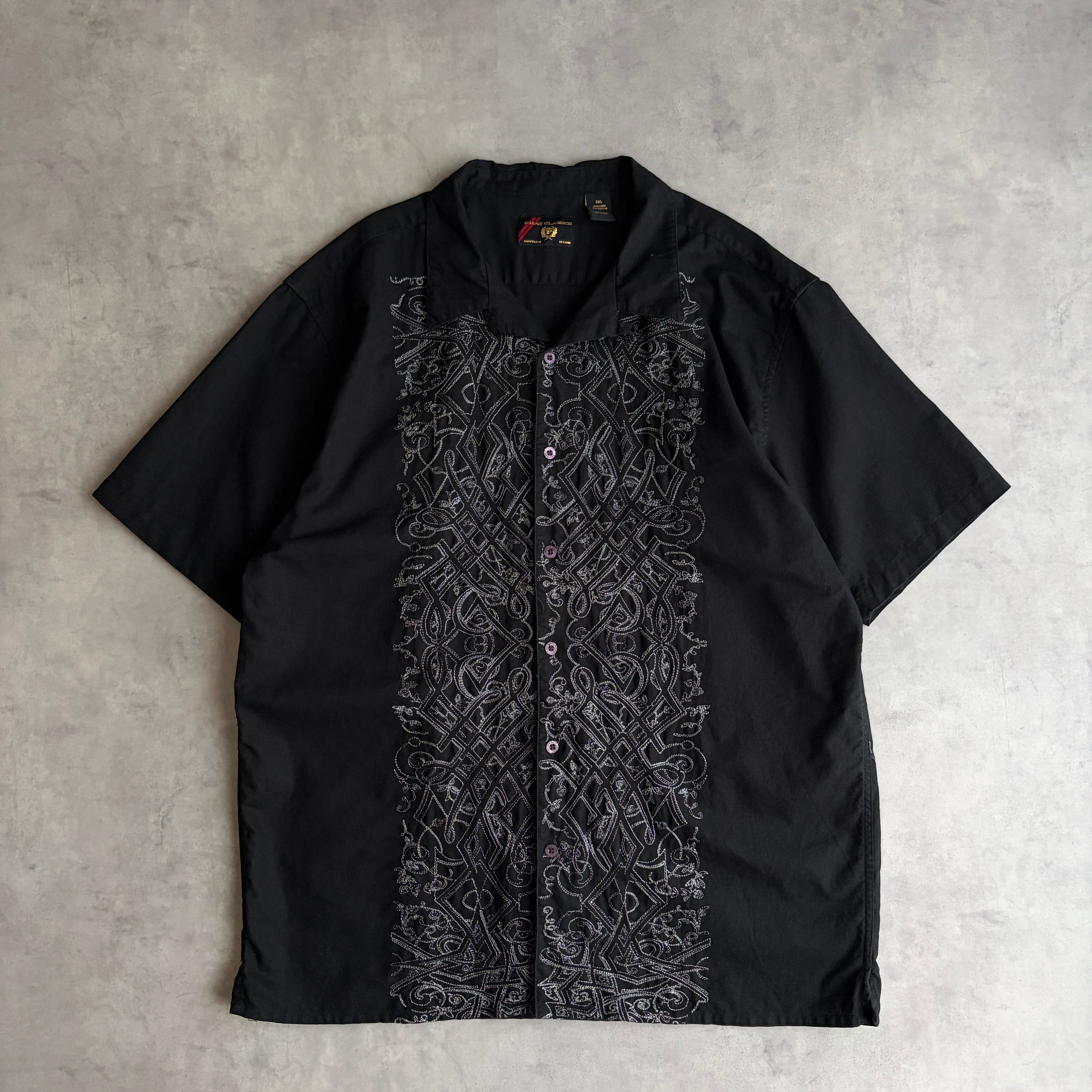90s/PHAT CLASSICS/半袖シャツ/開襟/オープンカラー/リネン混/キューバシャツ/グァジャベーラ/刺繍柄/サイドスリット/ボックスシルエット/ブラック/黒/jmaple