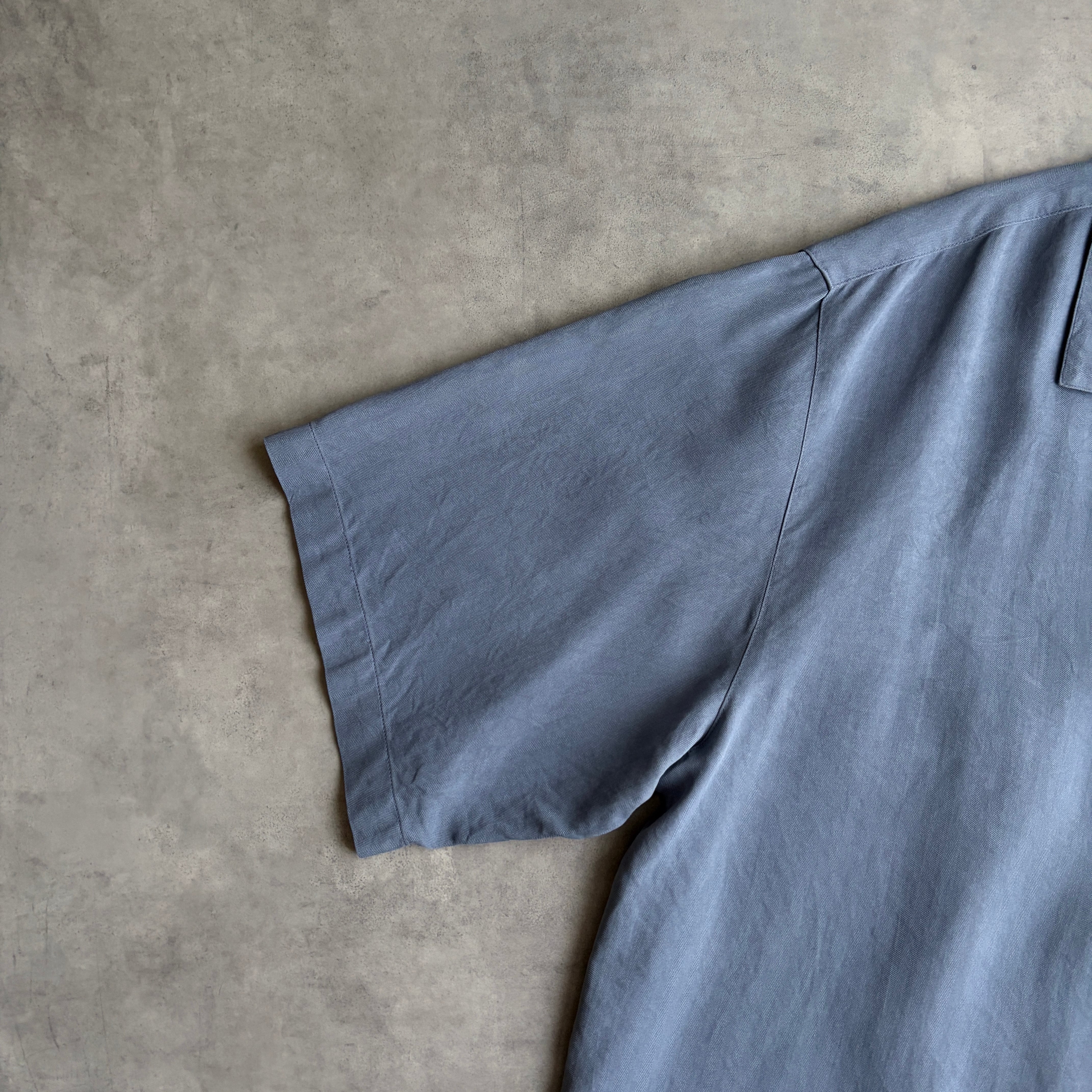 オープンカラーとヘリンボーン生地でシンプルすぎない生地感のアイテムです。