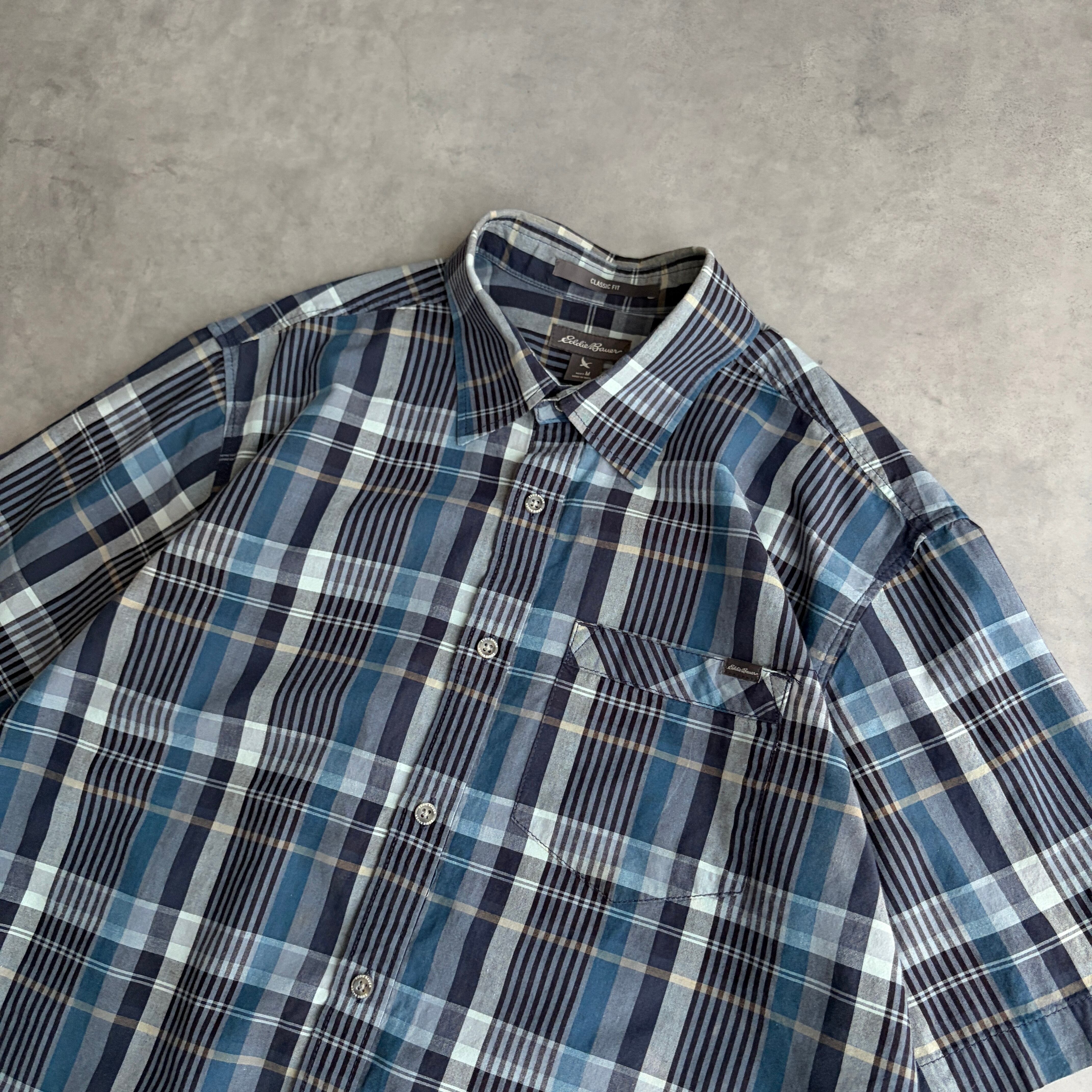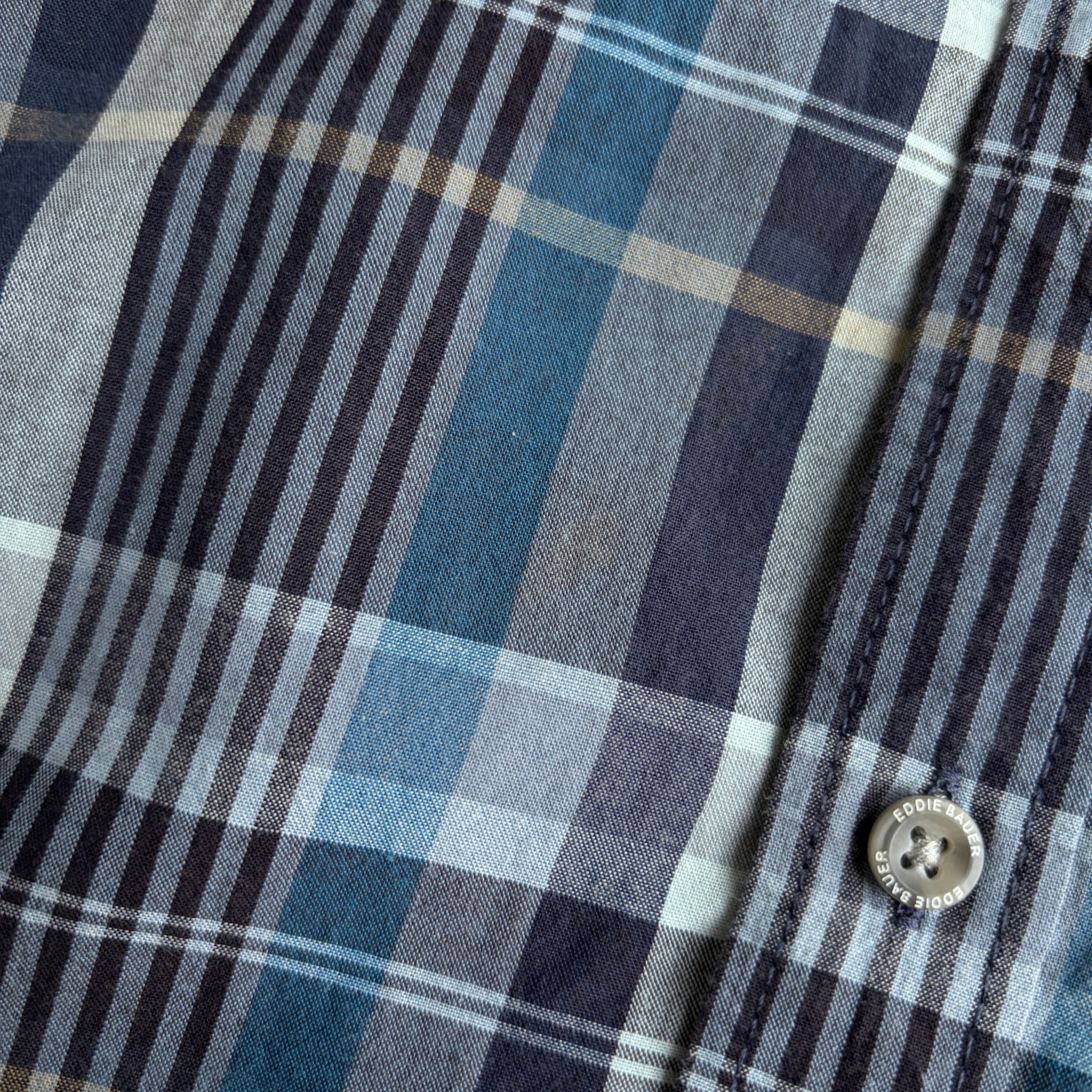 Eddie Bauer/エディーバウアー/半袖シャツ/レギュラーカラー/ブロード生地/マドラスチェック/格子柄/ネイビー系/jmaple