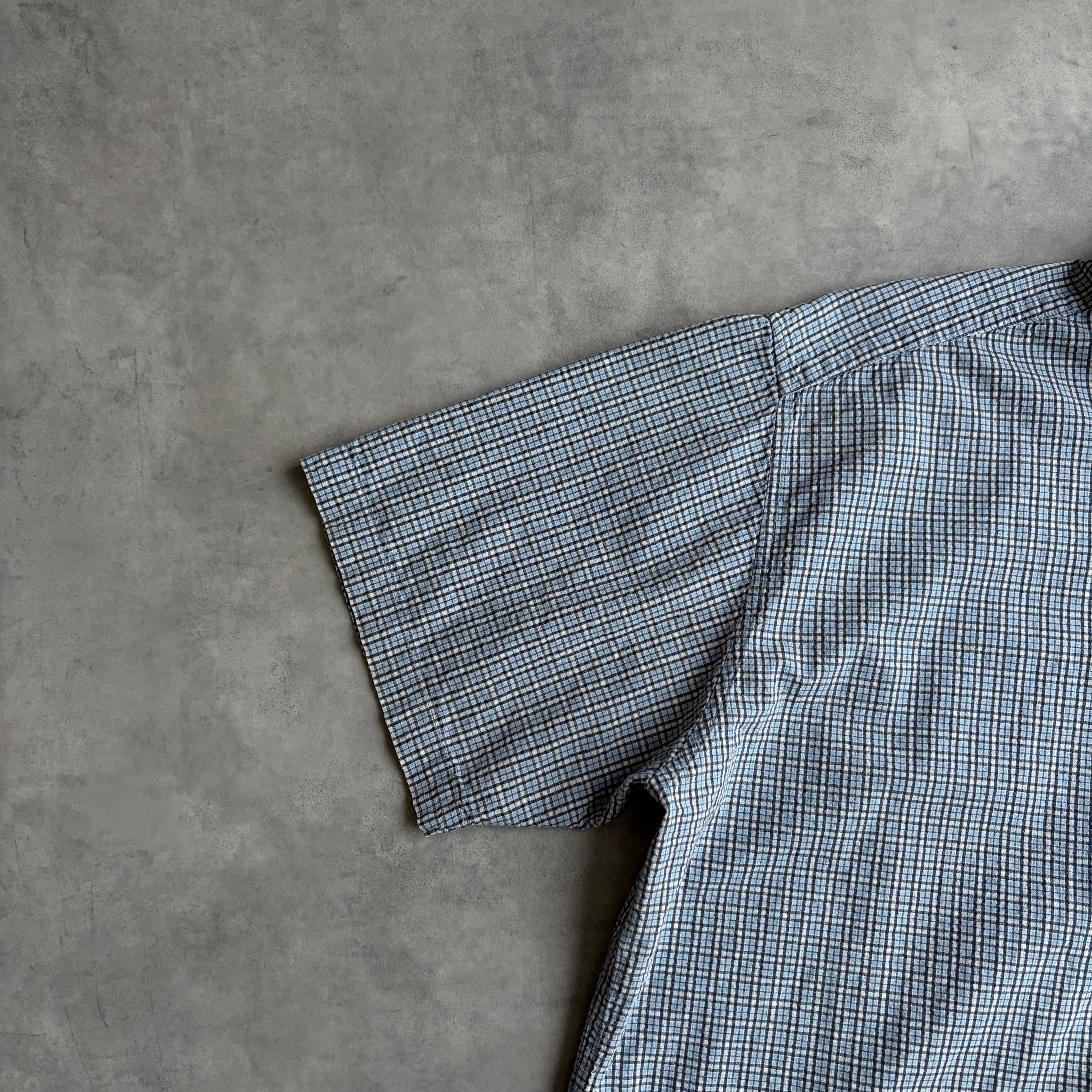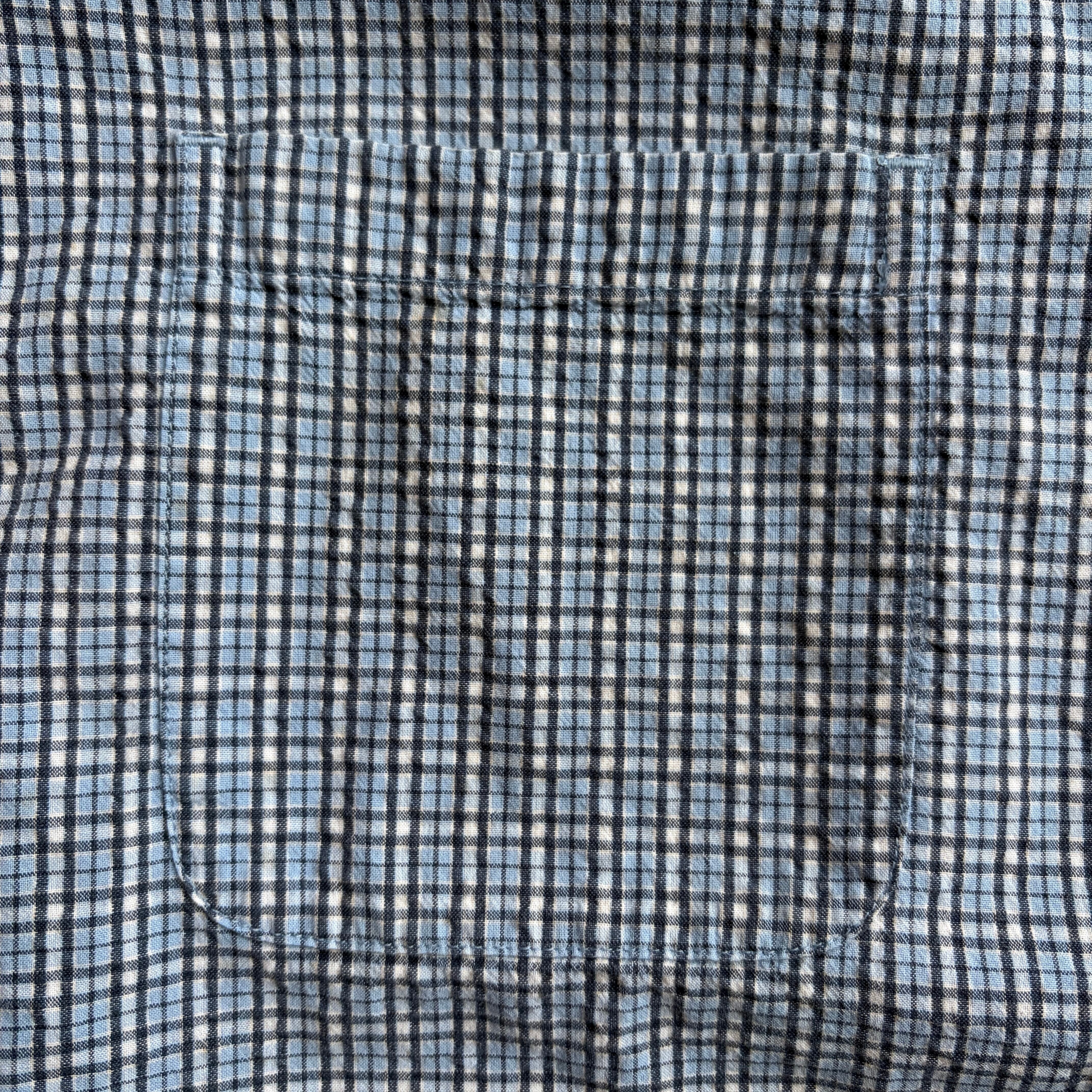 控えめな凹凸のシアサッカー生地、ライトブルーベースのギンガムチェックで爽やかなアイテム、。