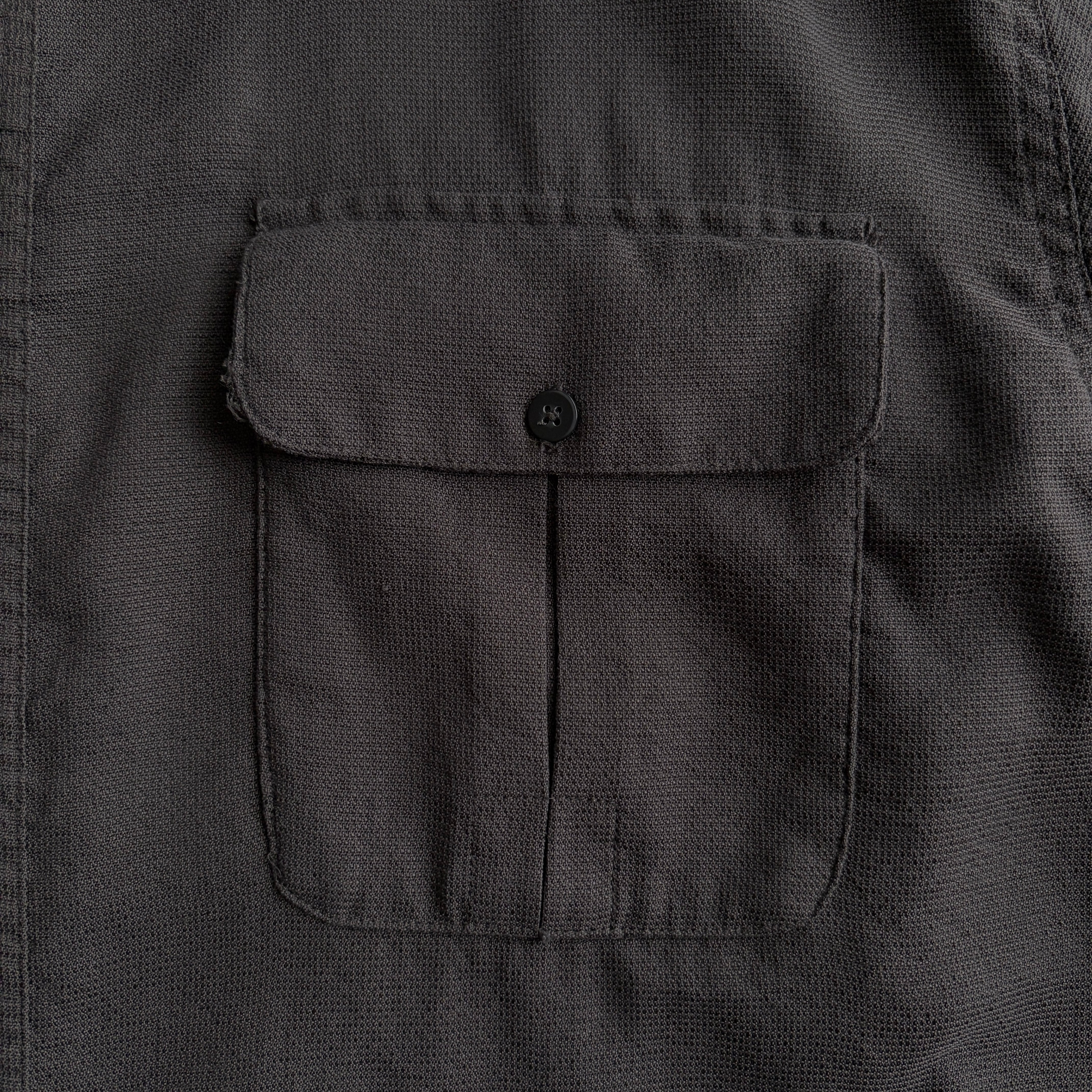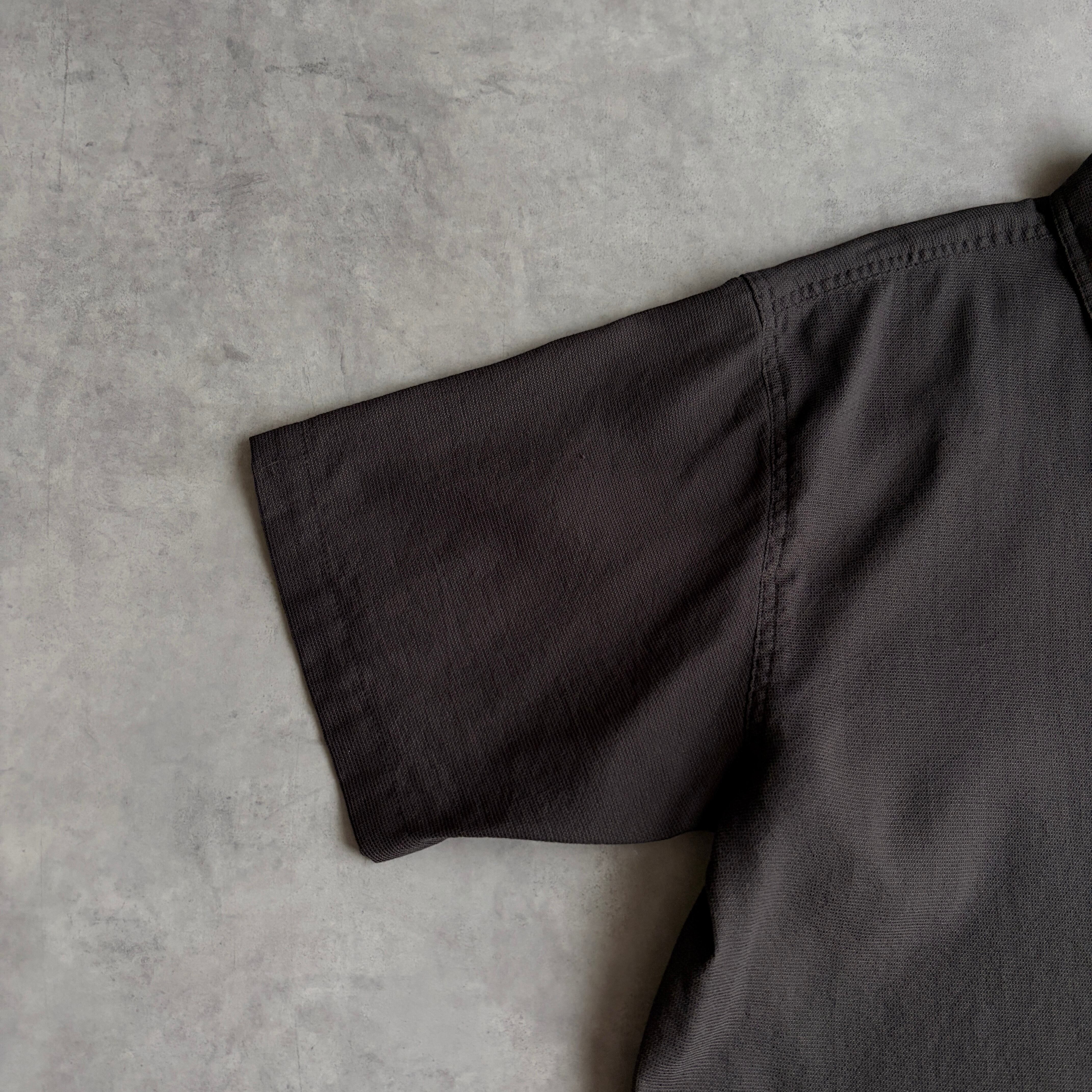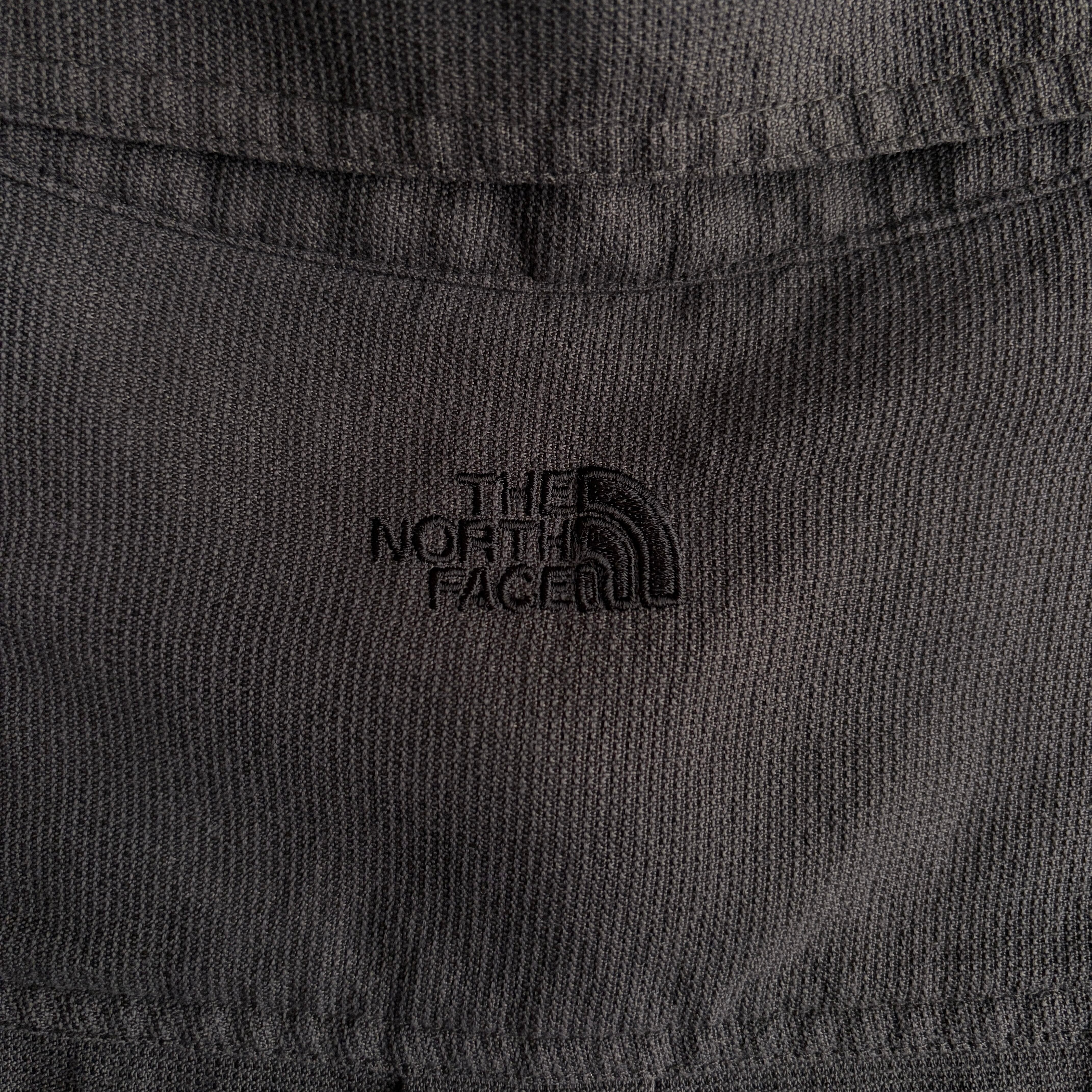 90s〜00s/THE NORTH FACE/ノースフェイス/半袖シャツ/ナイロン生地/レギュラーカラー/ロゴ刺繍/フラップポケット/ジップ/ワッフル風/墨黒/スミクロ/jmaple