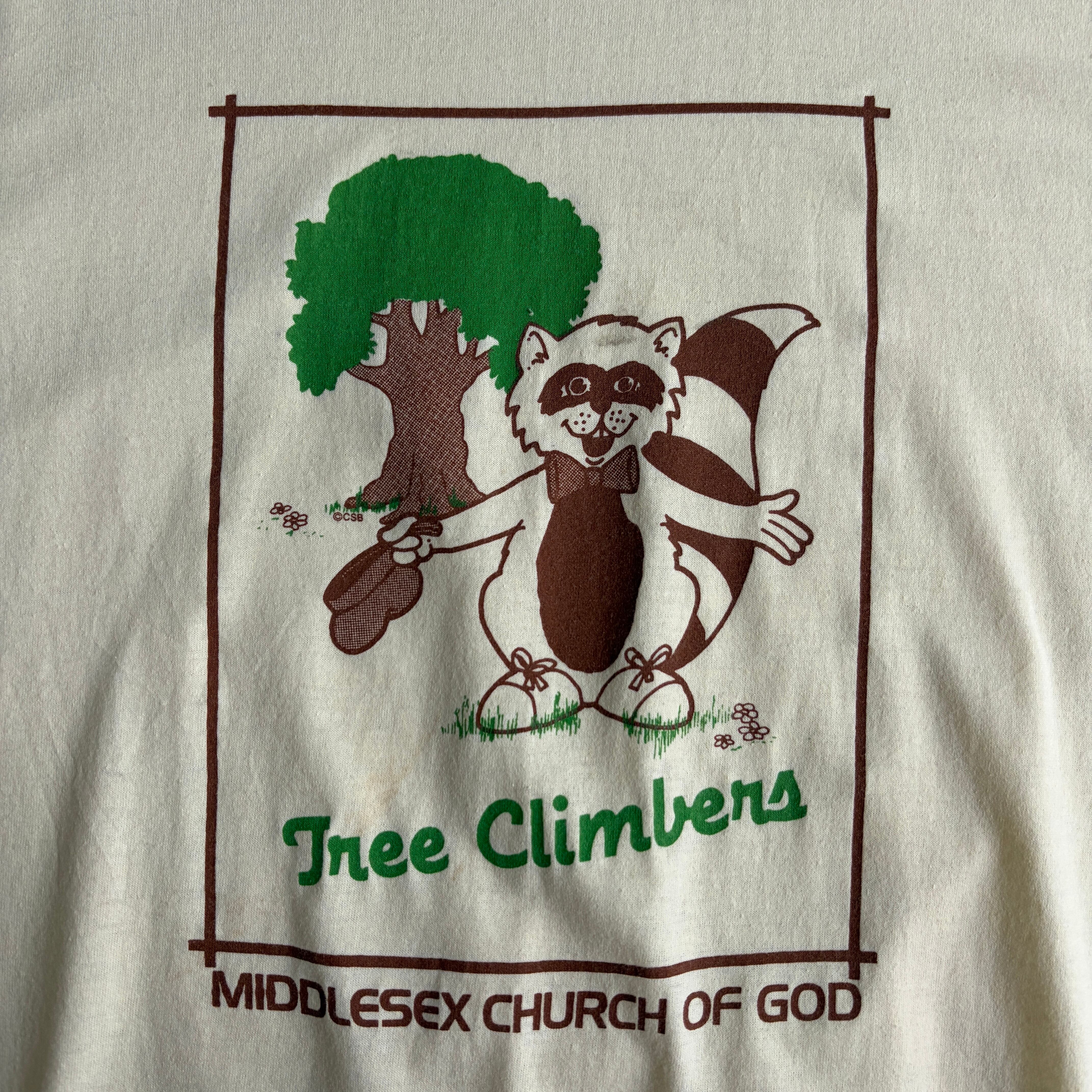 80s〜90s/Hanes/ヘインズ/半袖Tシャツ/USA製/アメリカ製/シングルステッチ/アニマルプリント/アライグマ/動物/グッズ/プロモーション/オフホワイト/jmaple