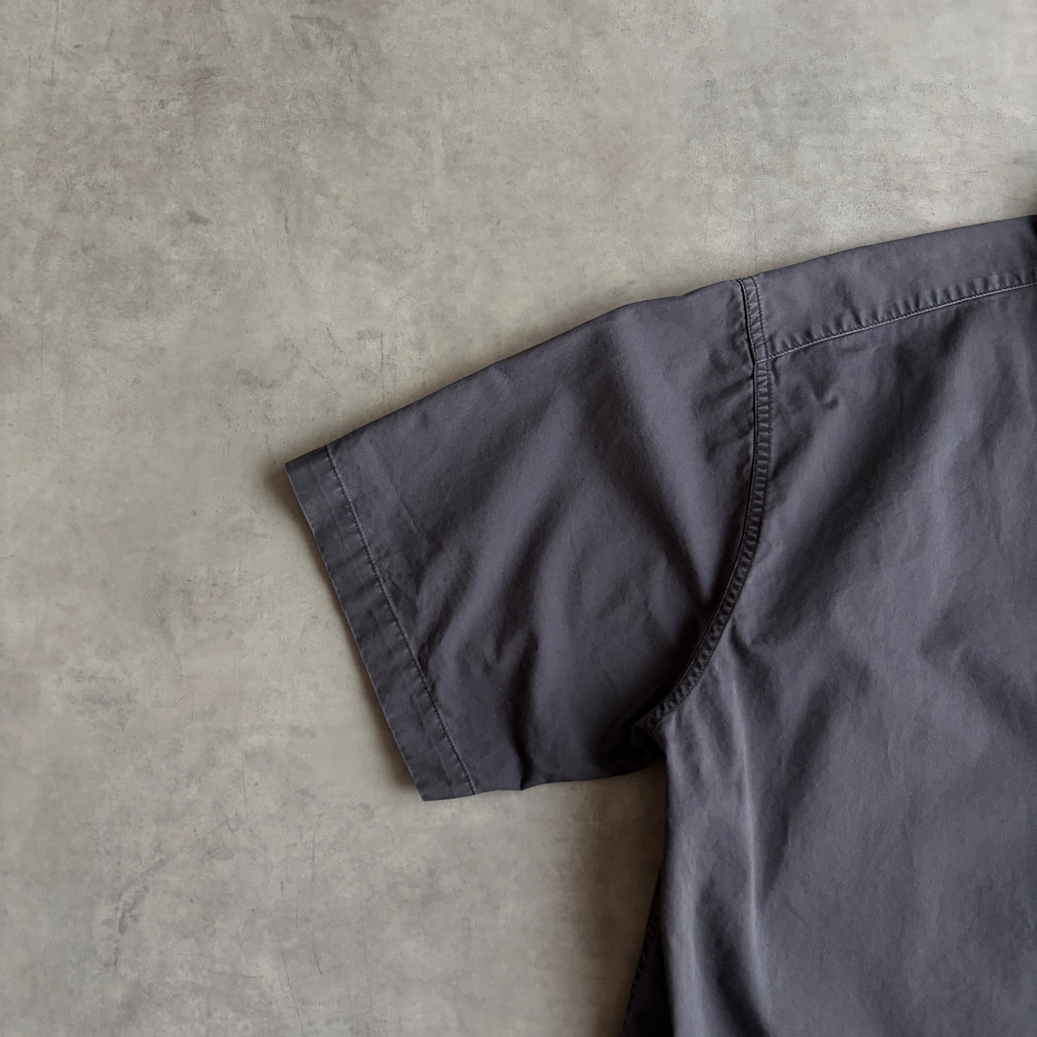 墨黒の様なチャコールグレーの無地にしっかりとしつつも夏に着れる薄手のツイル生地。