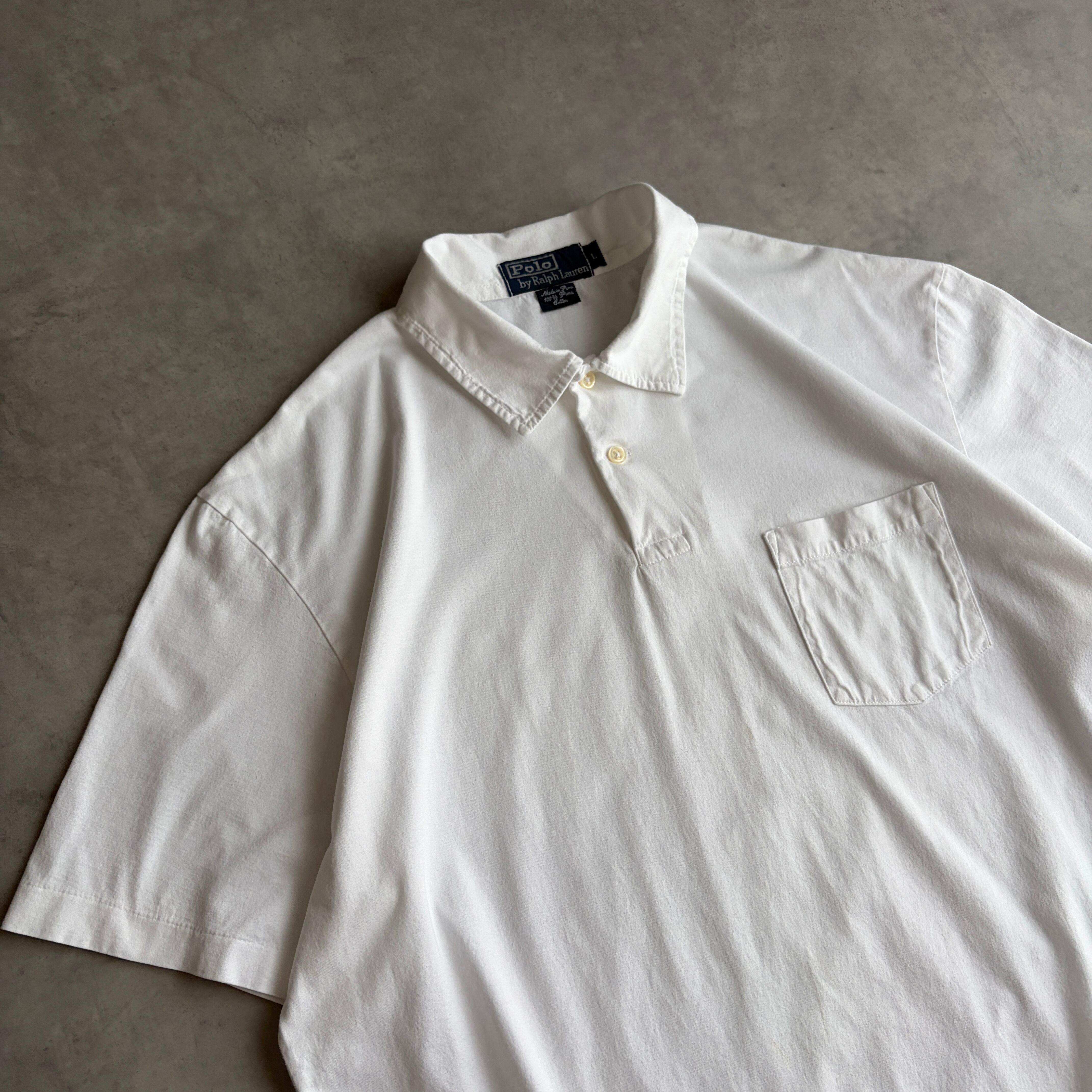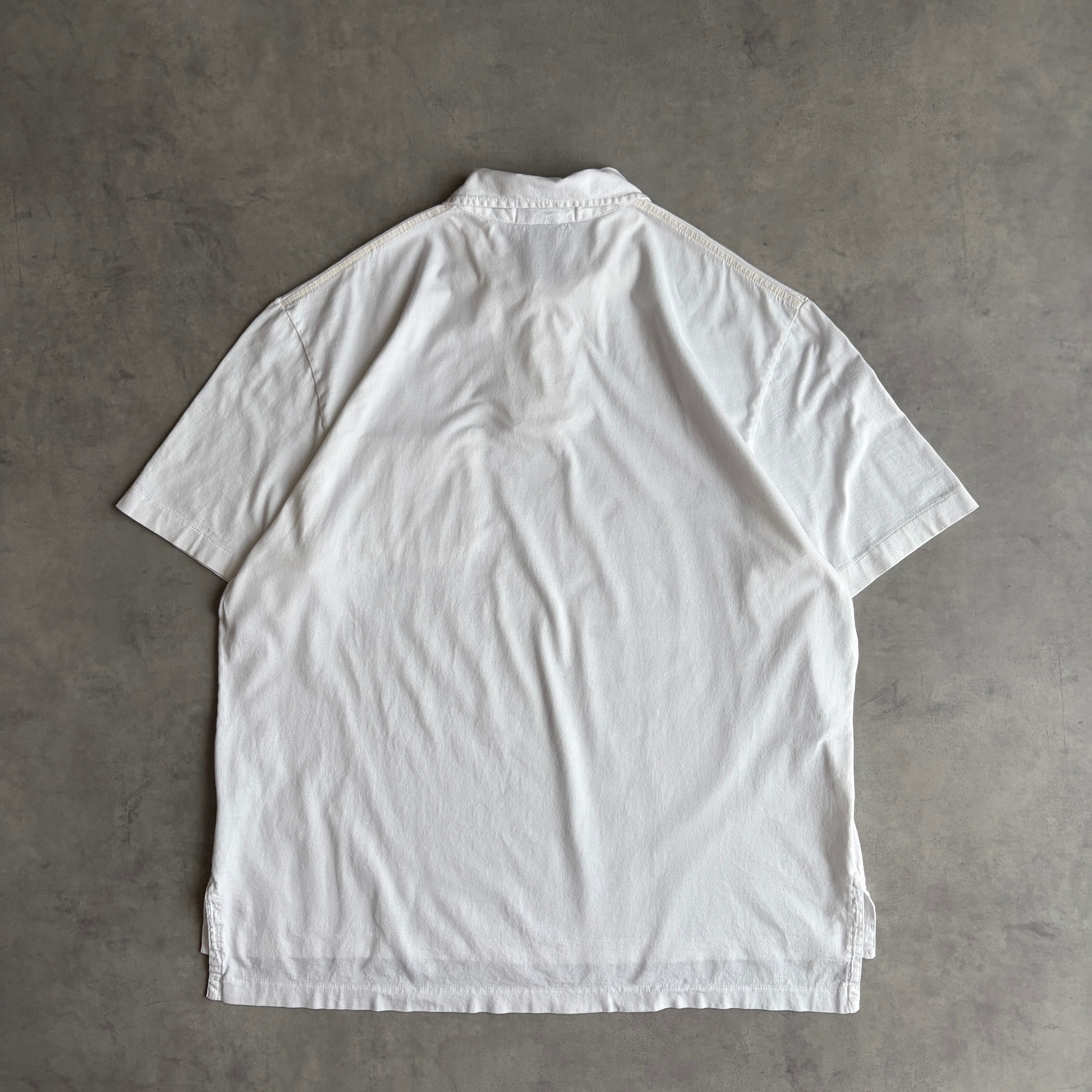 90s/Polo by Ralph Lauren/ポロバイラルフローレン/半袖ポロシャツ/カットソー生地/プルオーバー/裾ポニー/ワンポイント/ロゴ刺繍/サイドスリット/開襟/オープンカラー/ホワイト/jmaple