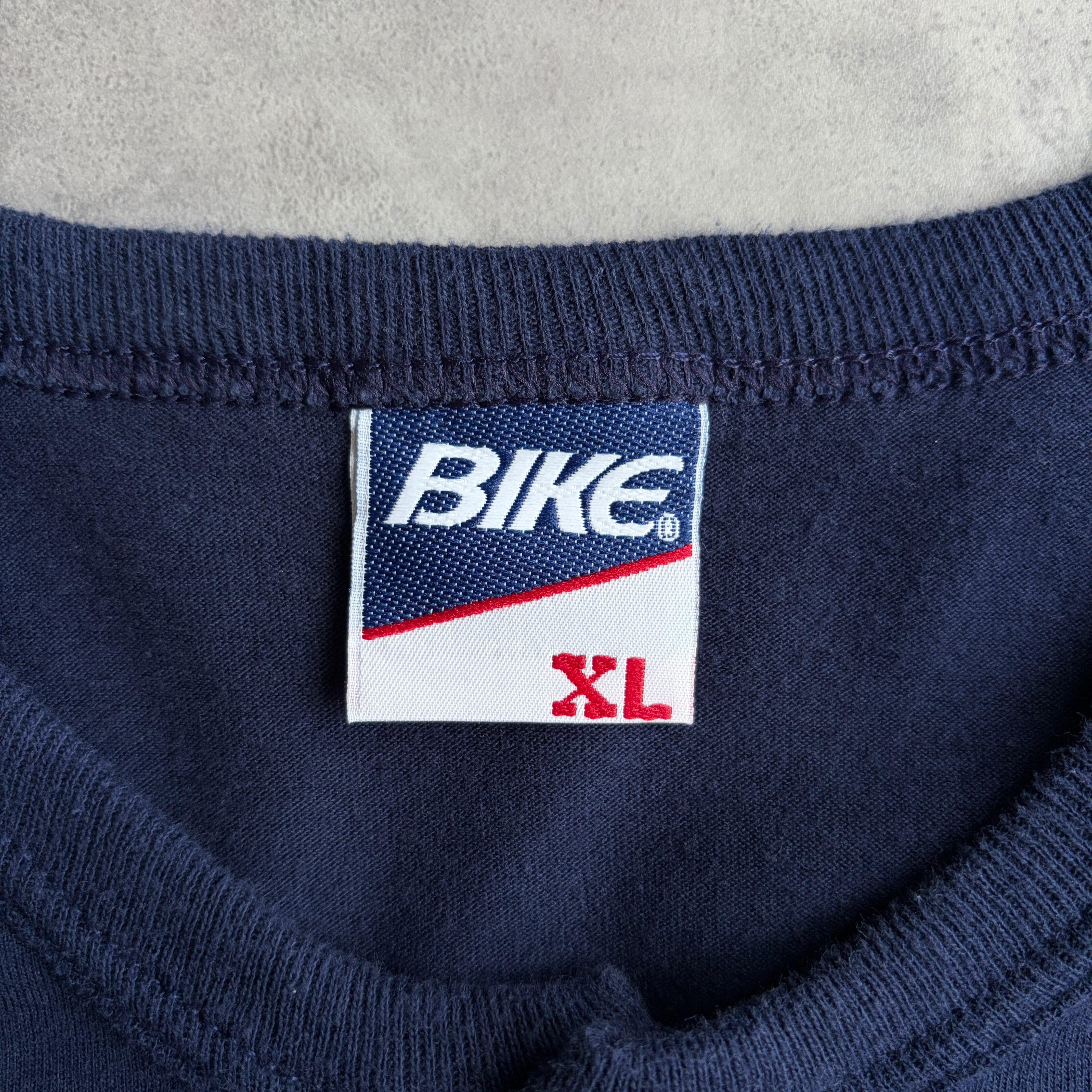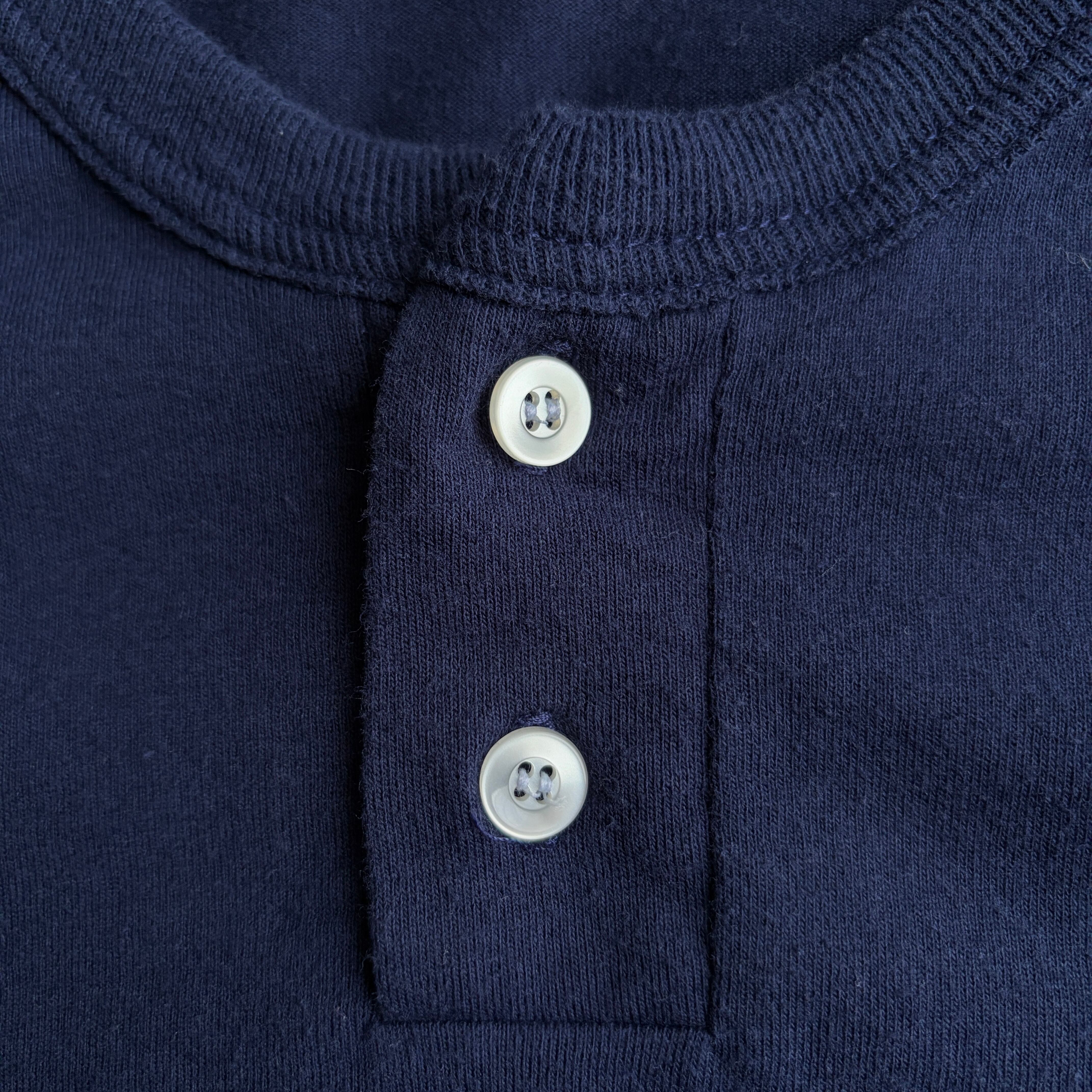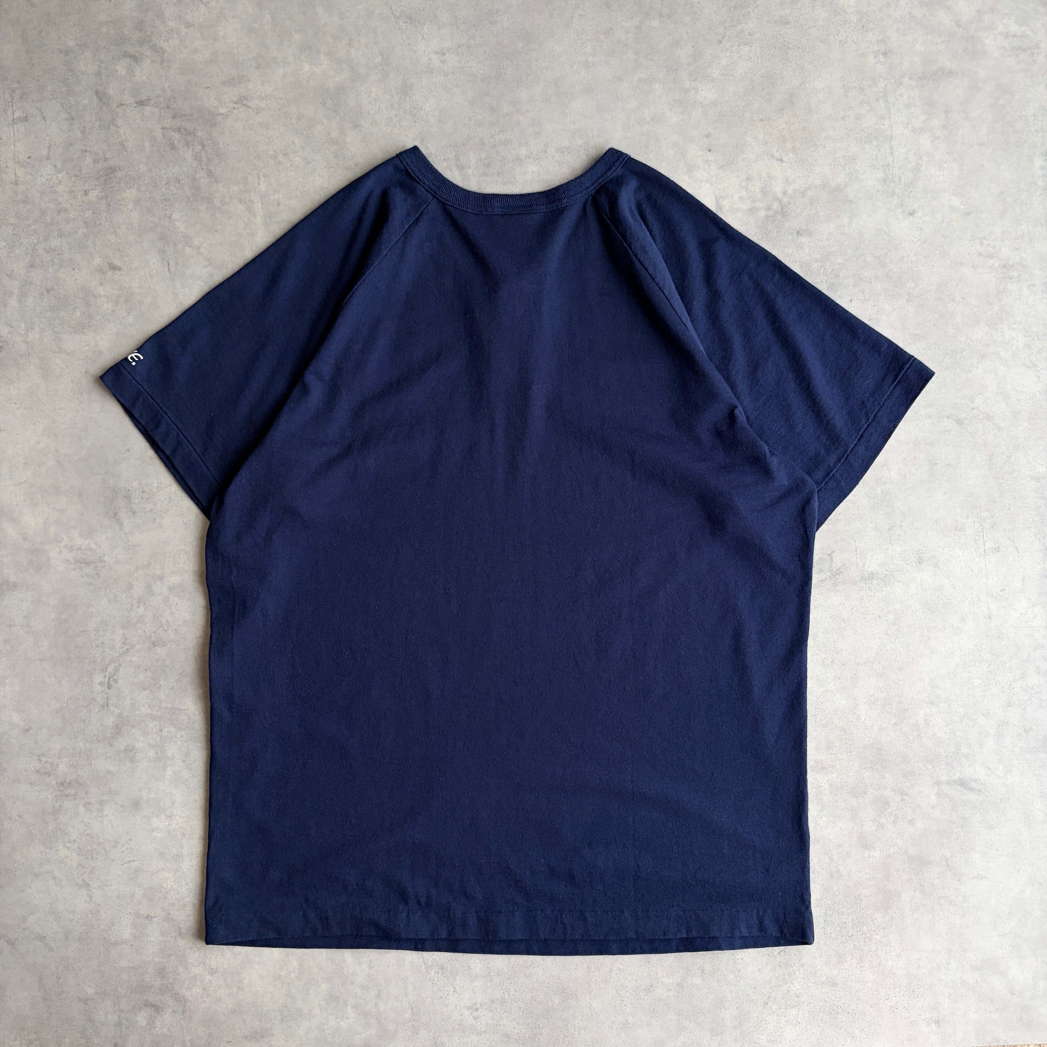 90s/BIKE/半袖Tシャツ/ヘンリーネック/シングルステッチ/ラグランスリーブ/袖ロゴプリント/無地/ソリッド/ノームコア/ワンポイント/ネイビー/紺/jmaple