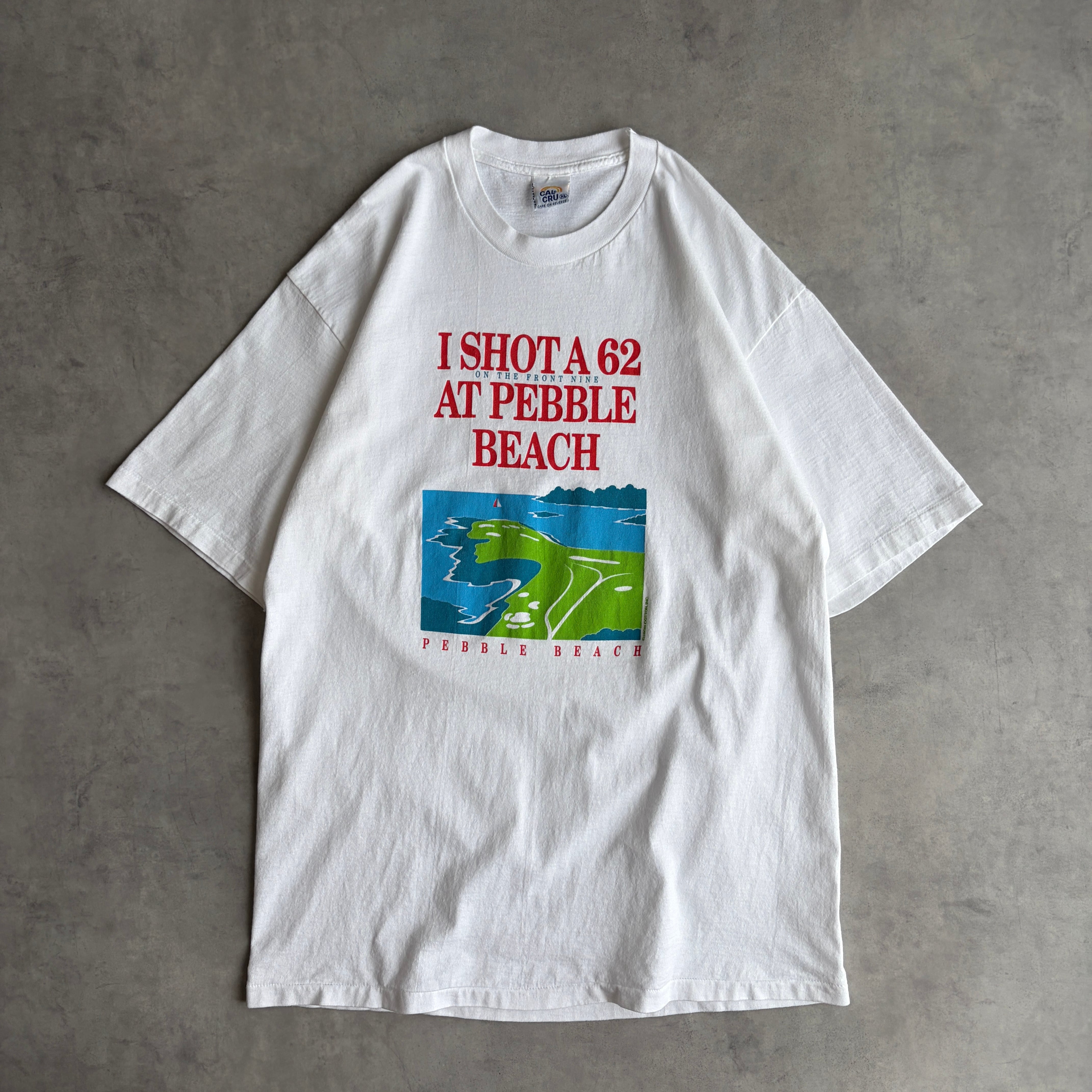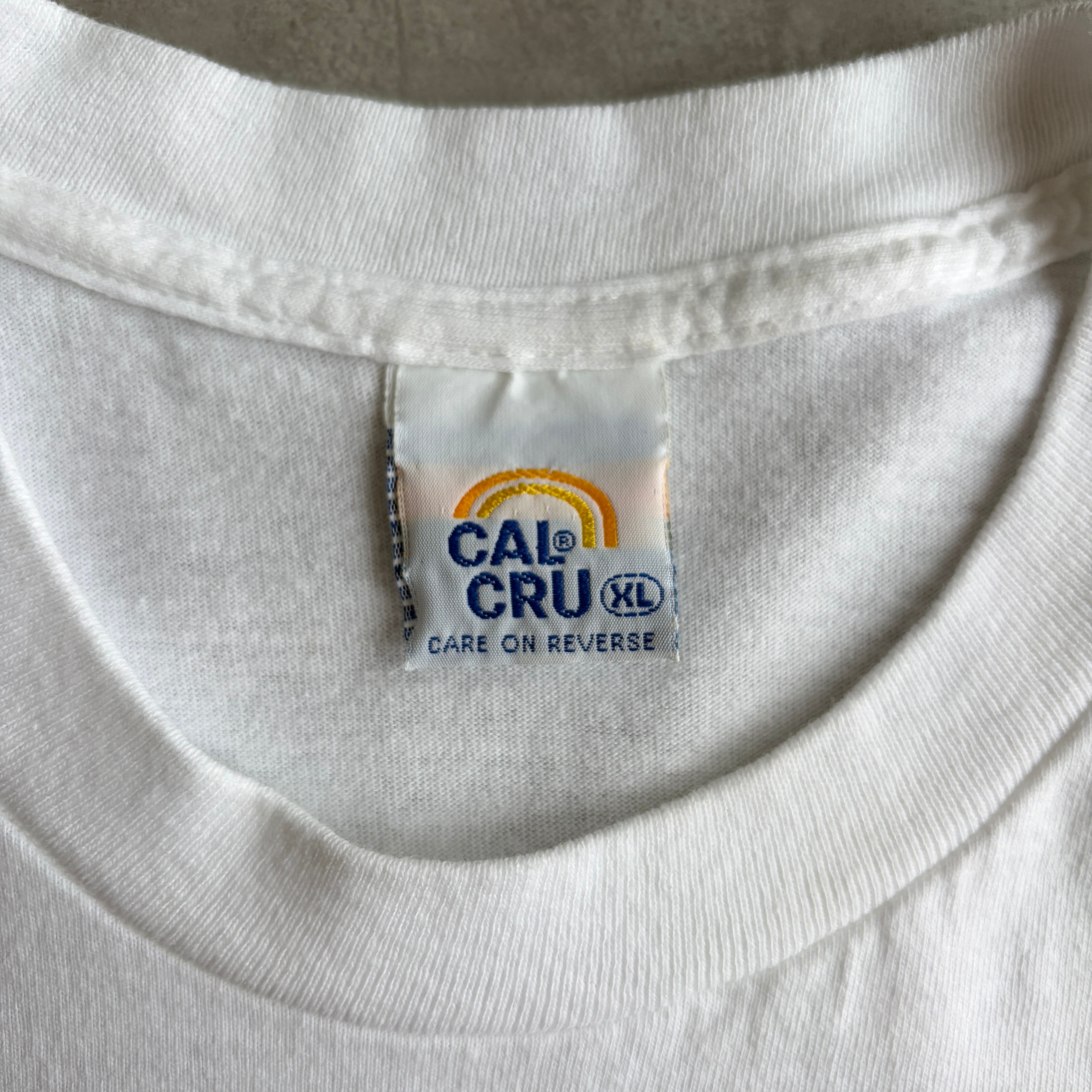90s/CAL CRU/半袖Tシャツ/USA製/シングルステッチ/メッセージ/ゴルフ場/ジョークプリント/風景/ホワイト/jmaple