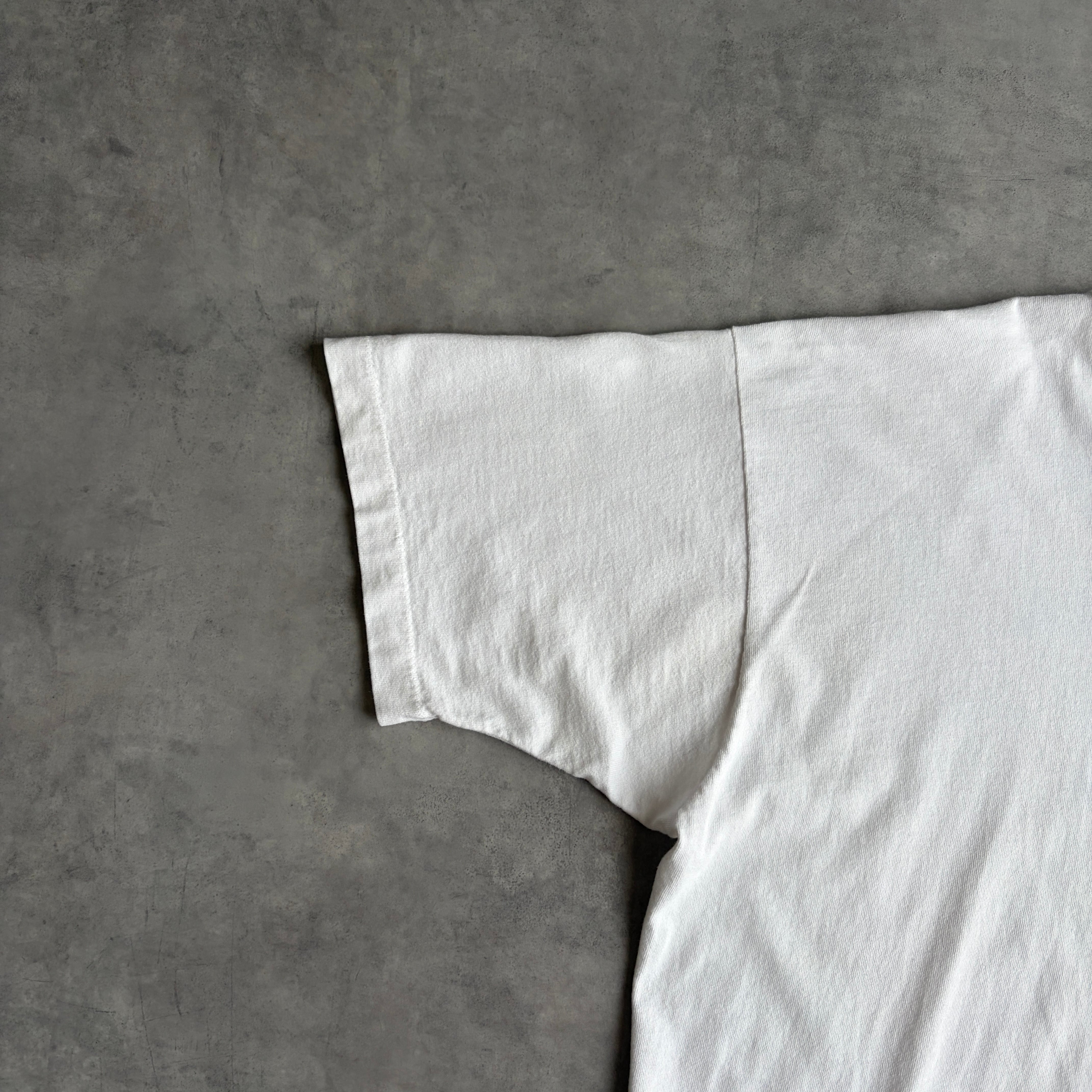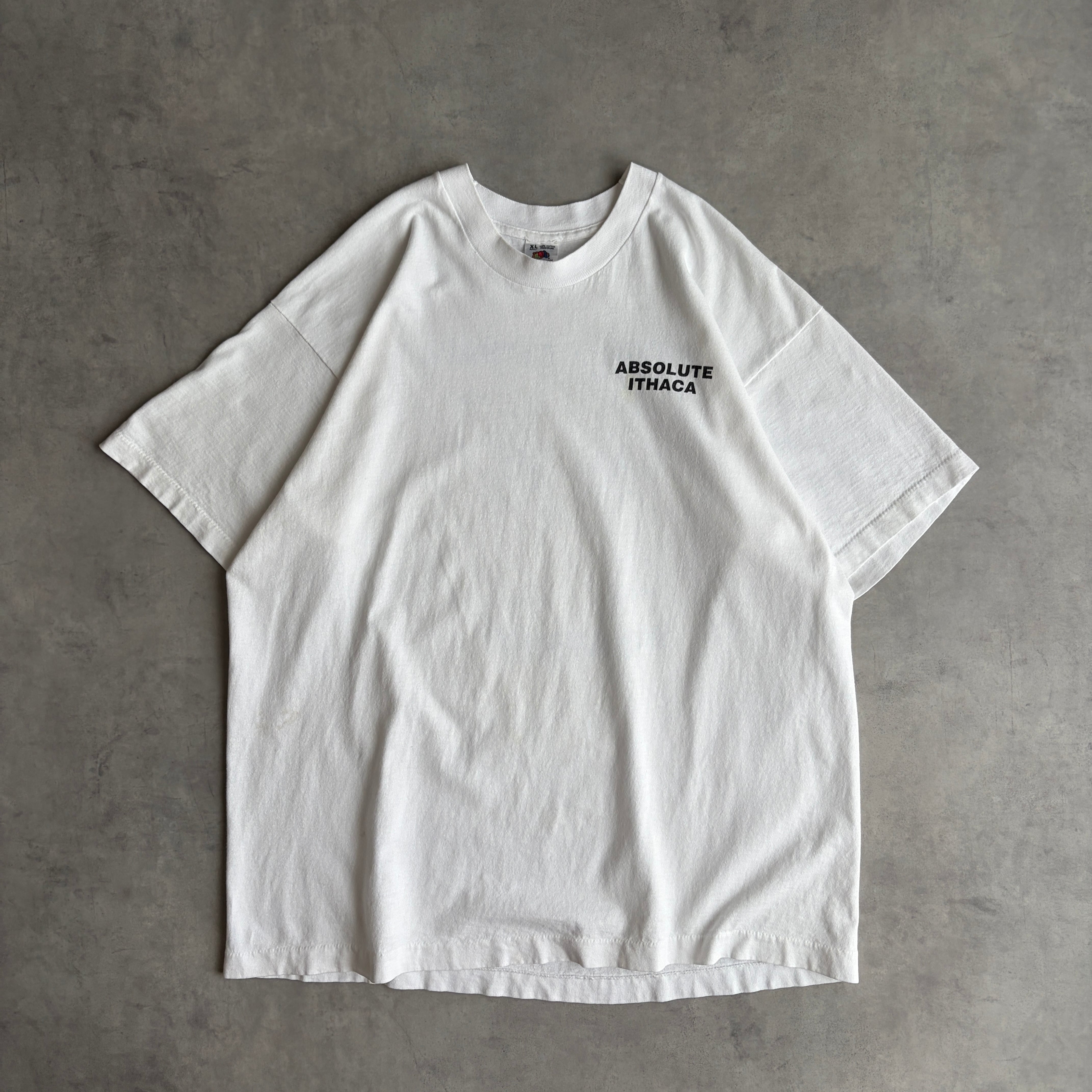 90s/FRUIT OF THE LOOM/フルーツオブザルーム/半袖Tシャツ/USA製/シングルステッチ/スーベニア/ローカルジョーク/パロディ/背面プリント/ホワイト/jmaple