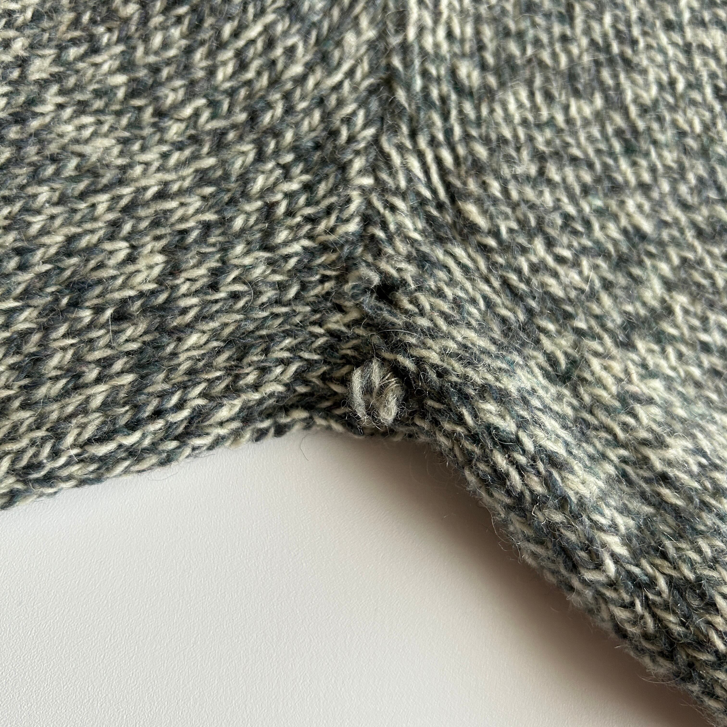 人気の高まっているメランジ柄でグレーブルーの配色がいいですね。