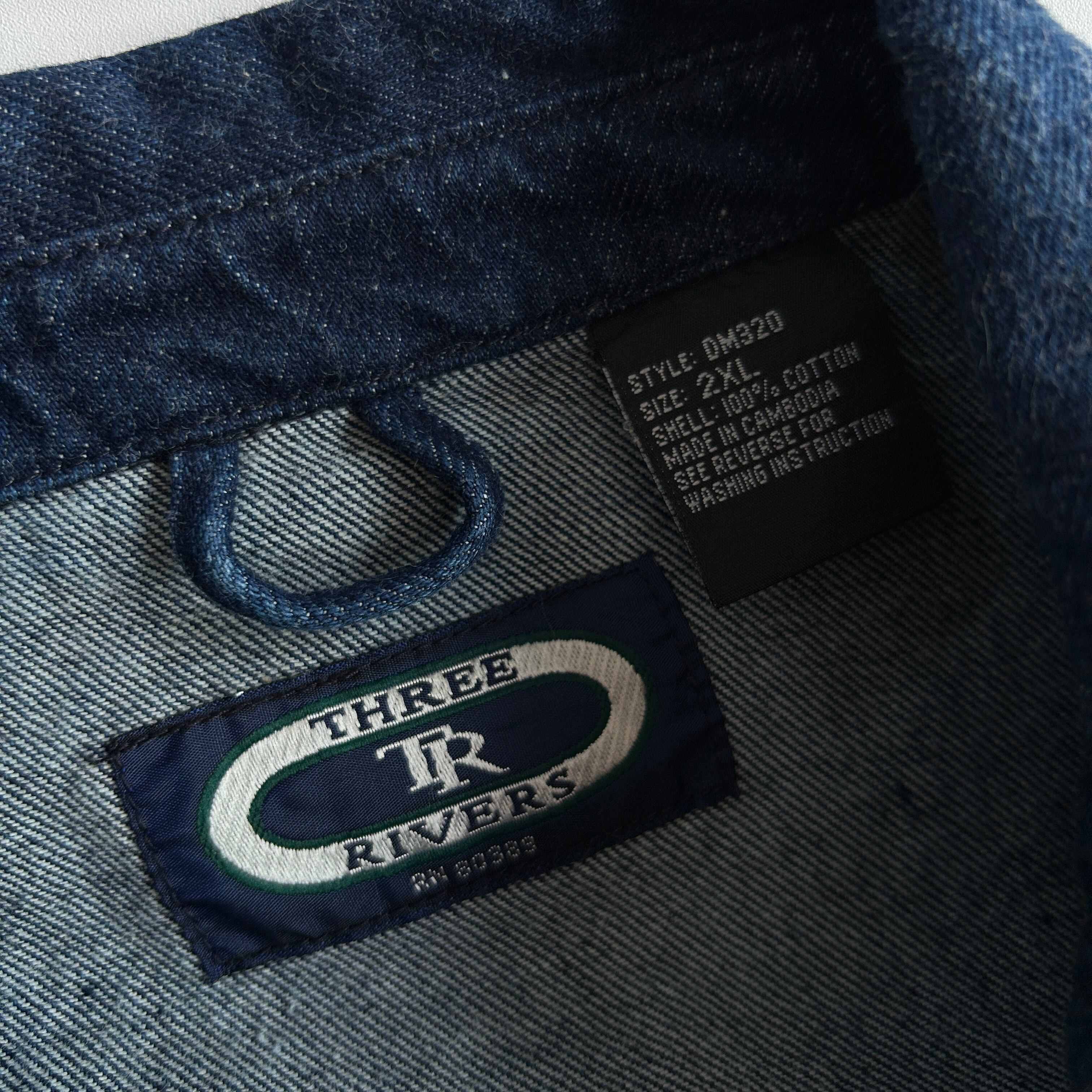 身幅たっぷりの着丈短め、チンストがアクセントになっており、まだまだ色落ちのないインディゴブルーでこれから長く使えて色落ちが楽しめる1着です。